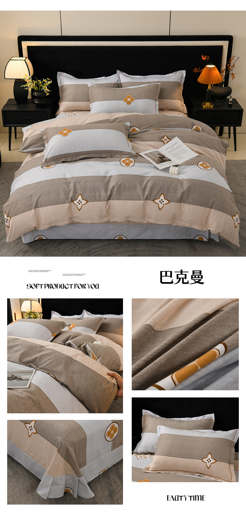 商品名称:润淳家居 2025新款百分百全棉磨毛四件套 巴克曼