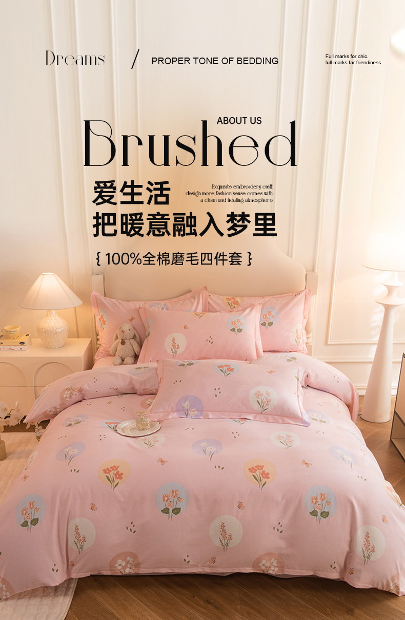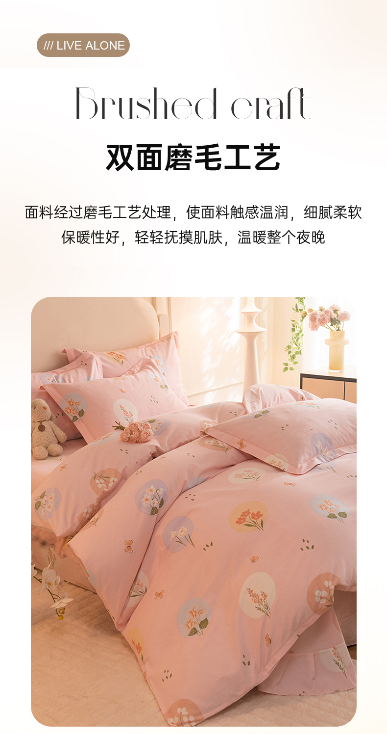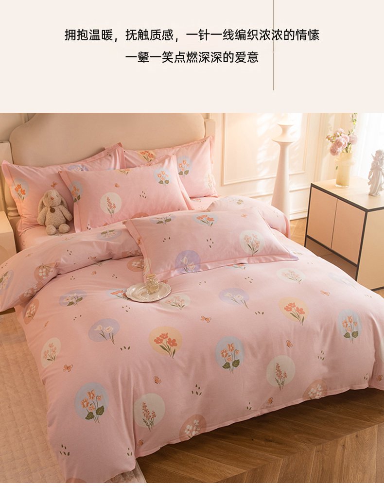 商品名称:磨毛世家家纺 2025新款生态四件套 向云端-粉