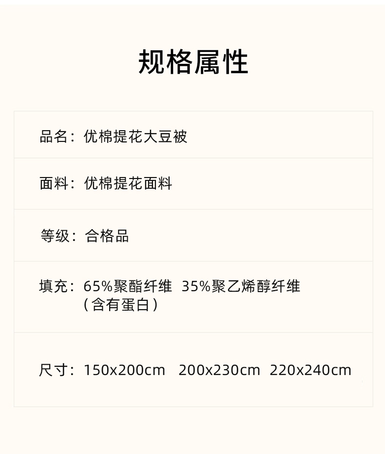200x230cm春秋被5斤 | ¥95.00 |