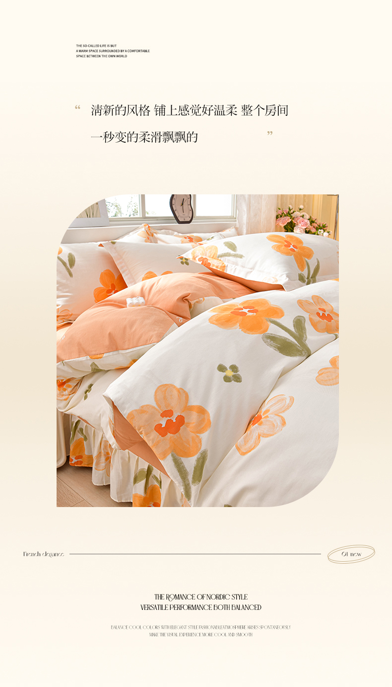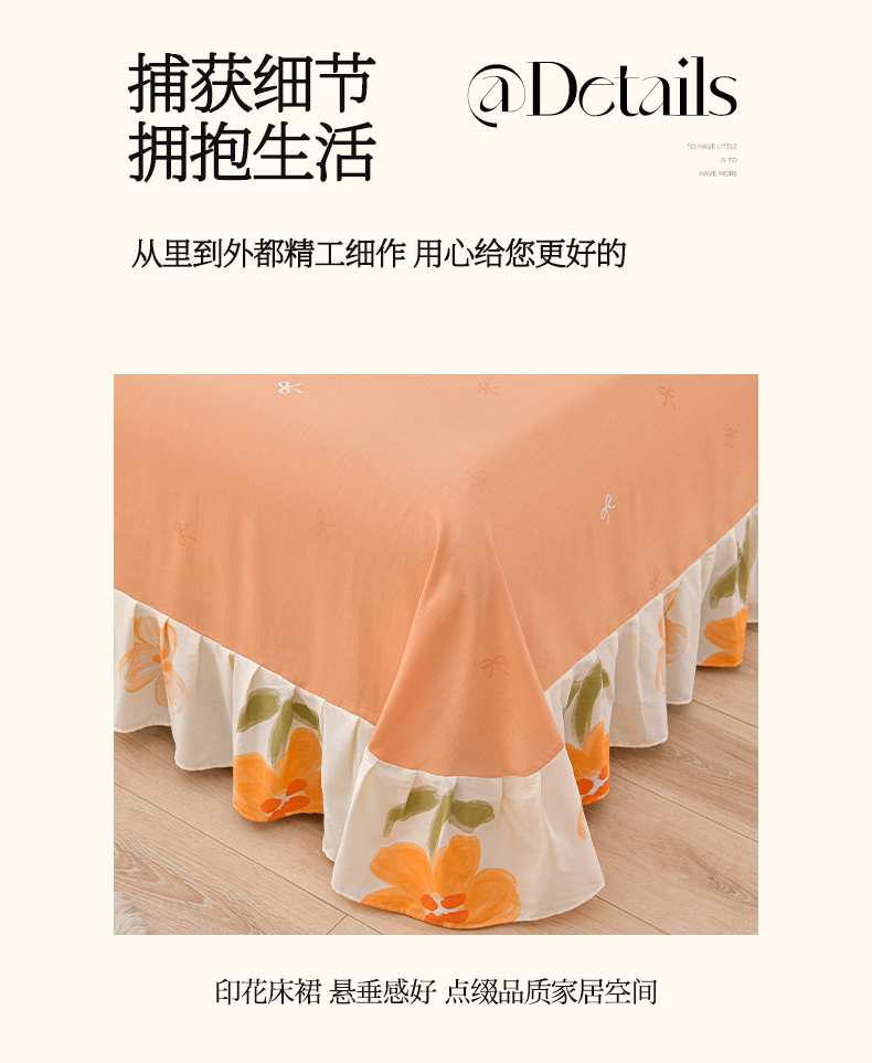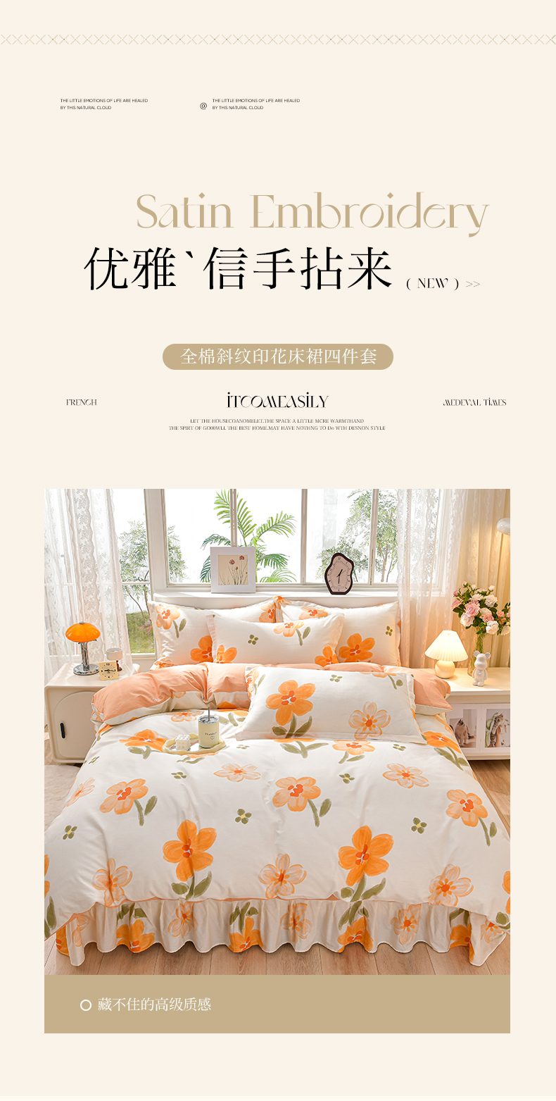 商品名称:绘萱家居 2025新款100%全棉床裙款斜纹印花四件套 情意绵绵