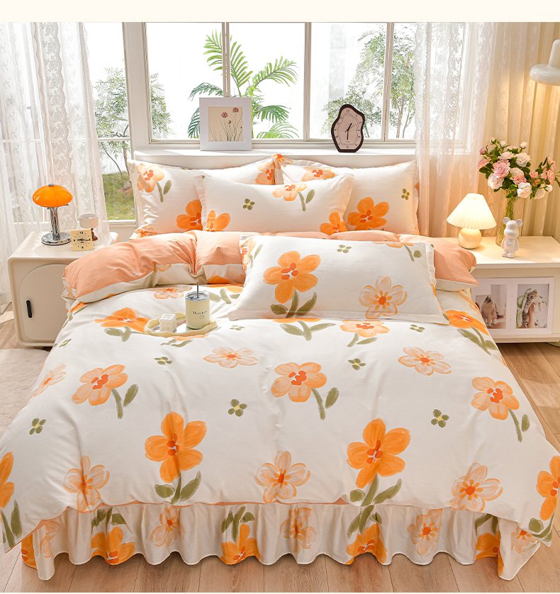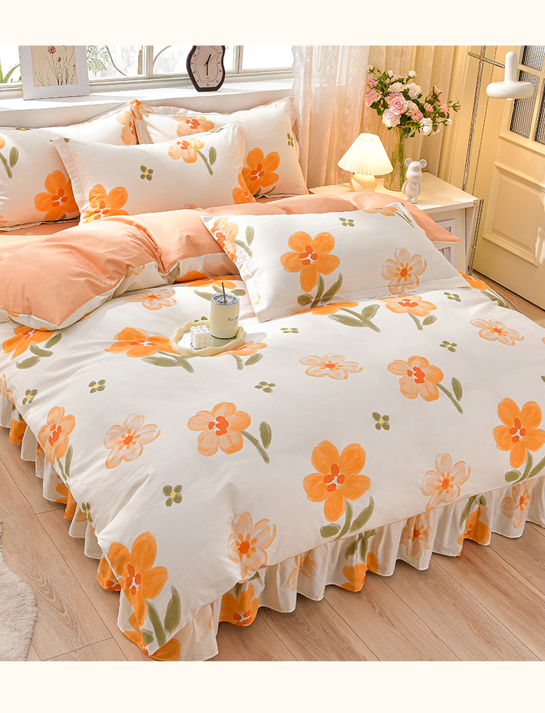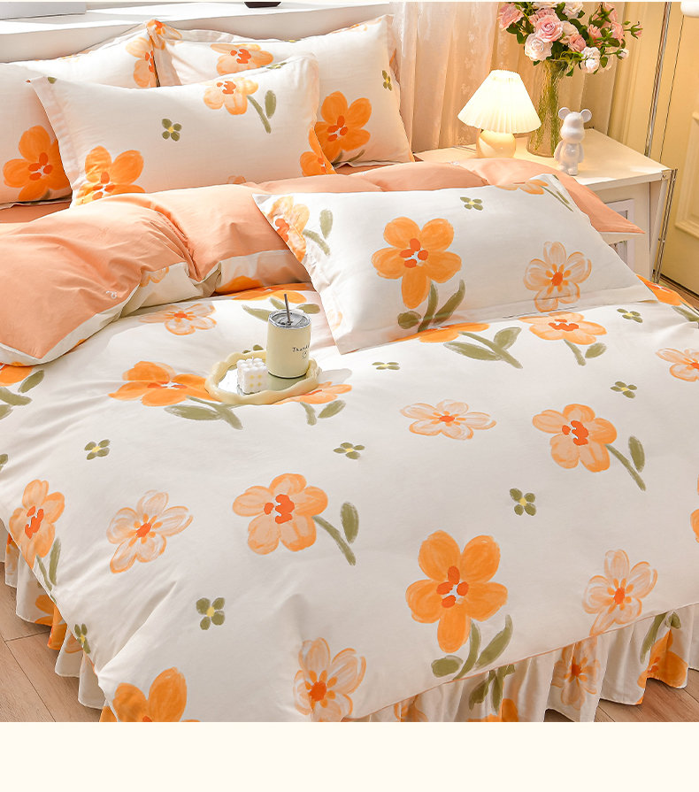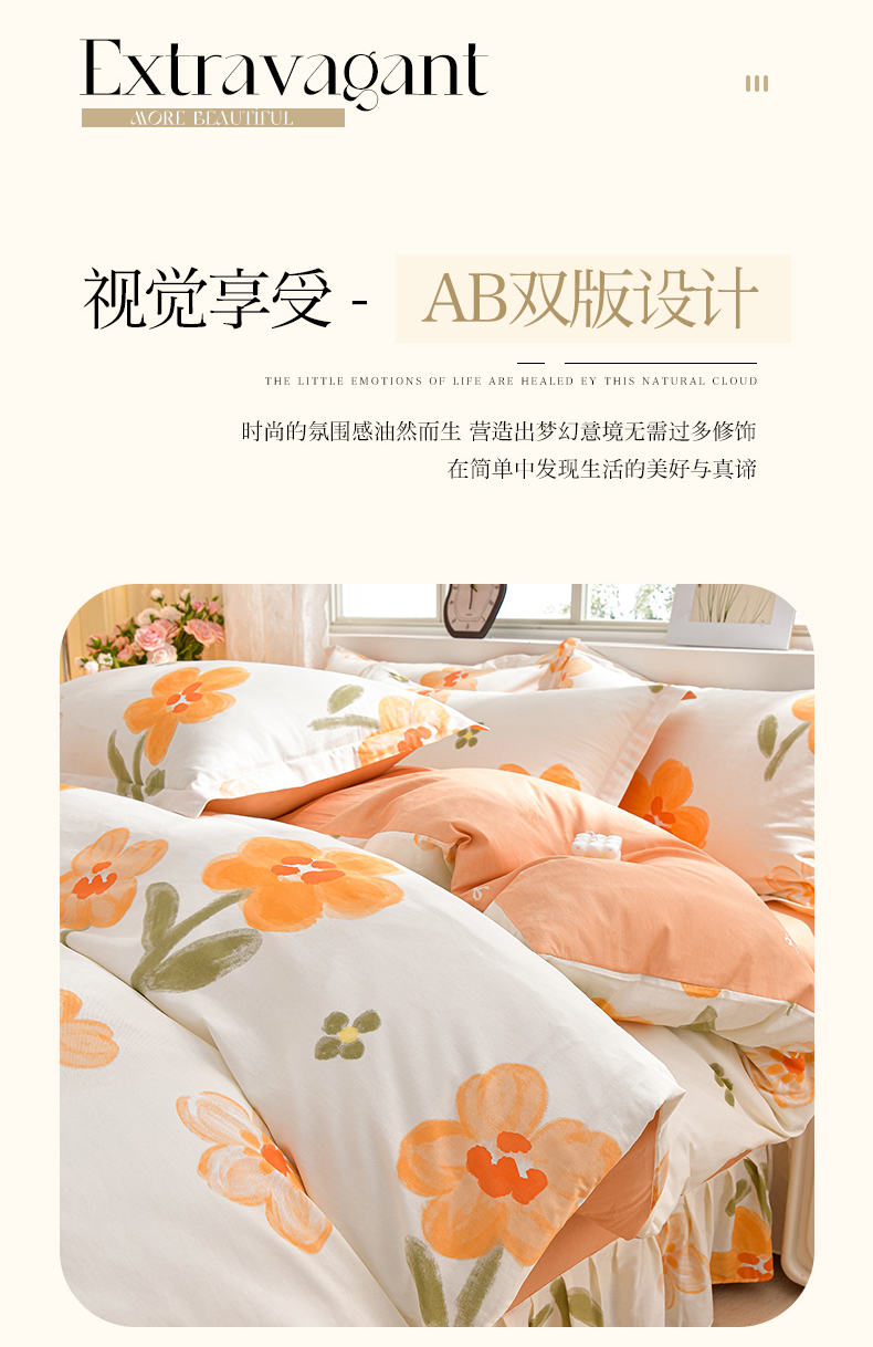 商品名称:绘萱家居 2025新款100%全棉床裙款斜纹印花四件套 情意绵绵