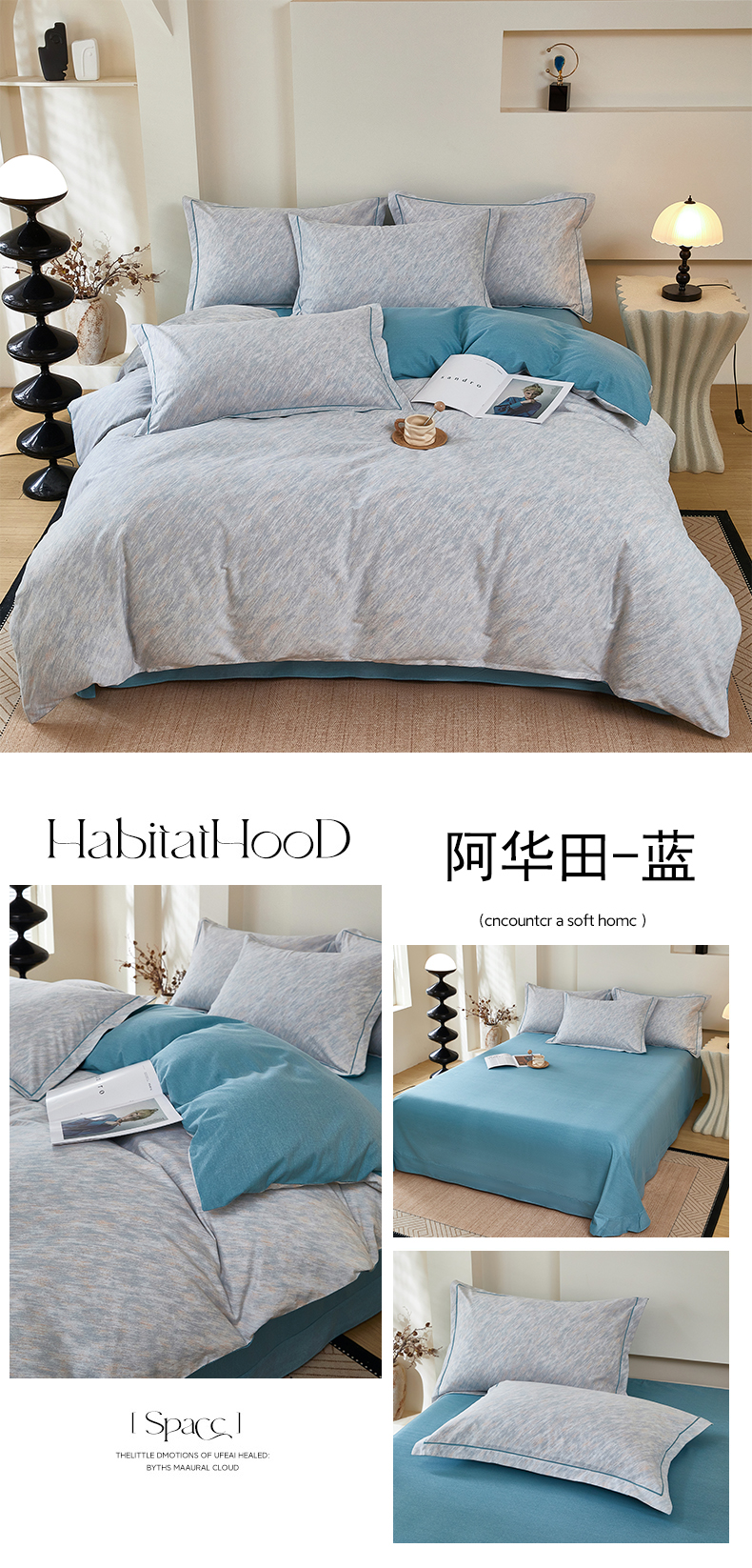 雲归梦 2025新款纯棉加厚磨毛多规格磨毛四件套阿华田-蓝