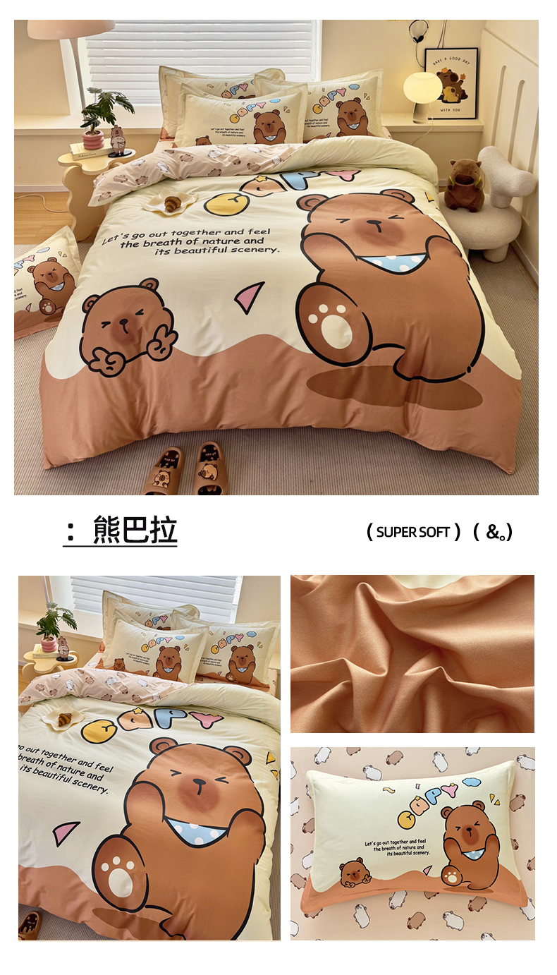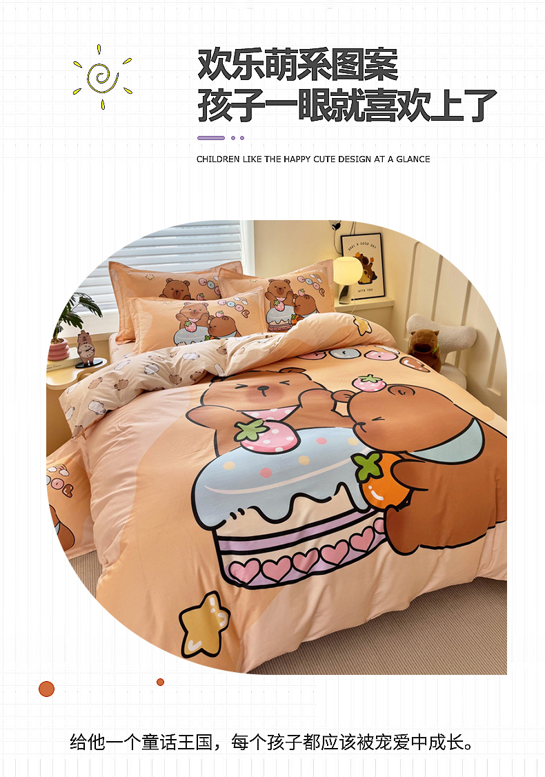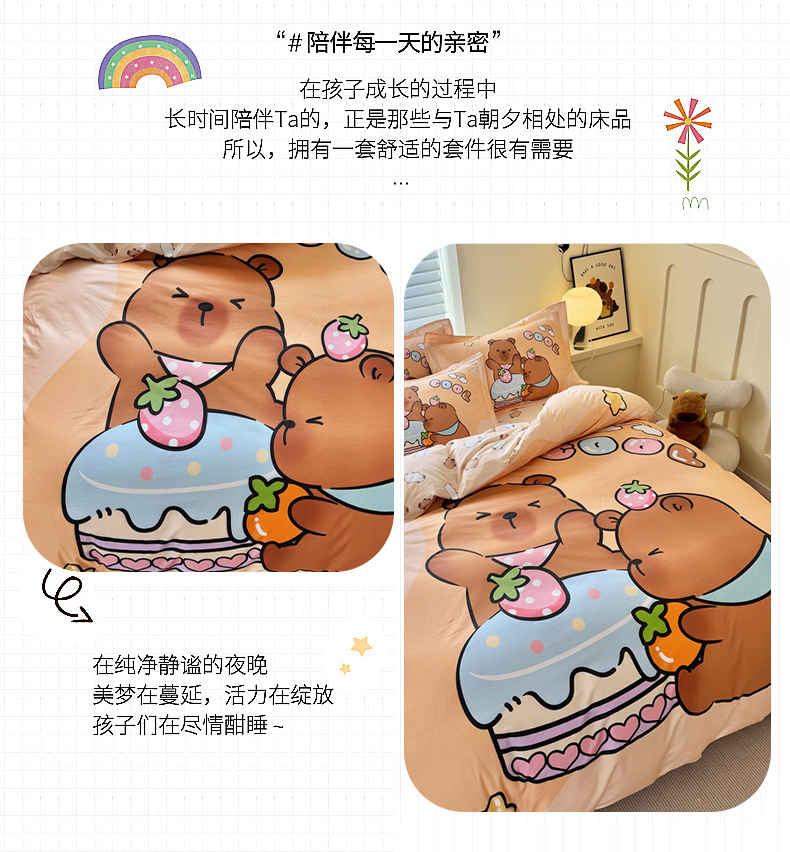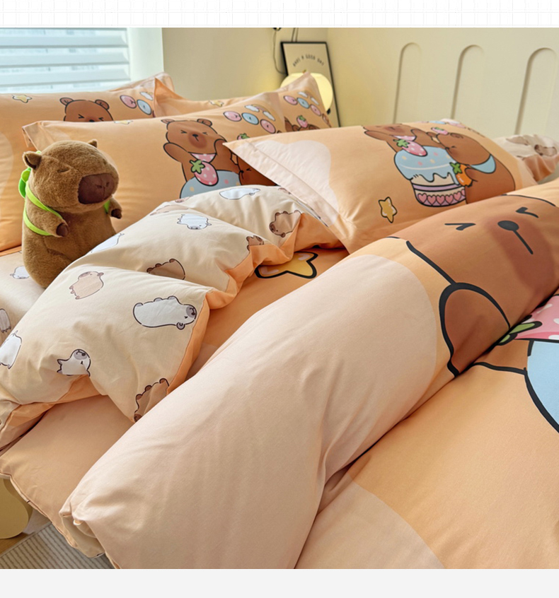 当前位置: 91家纺网 > 商品网购 > 床品套件 > 四件套 > 全棉普通四件套 > 蘭菲家纺 2025新款全棉大版卡皮巴拉系列四件套 豚世界