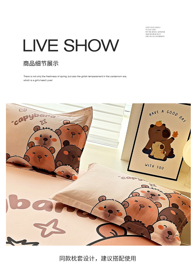 商品名称:蘭菲家纺 2025新款全棉大版卡皮巴拉系列单品床笠 豚一家