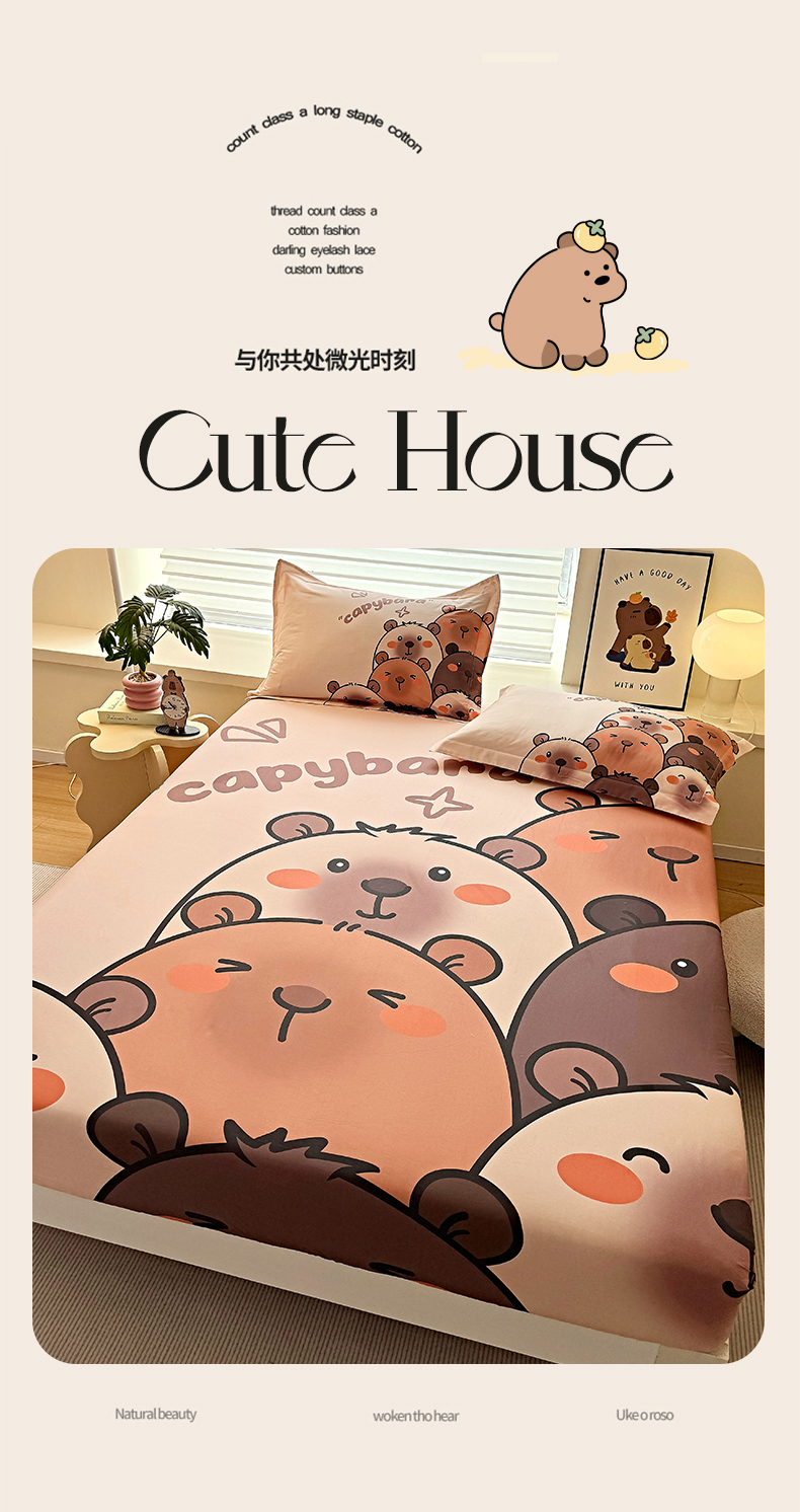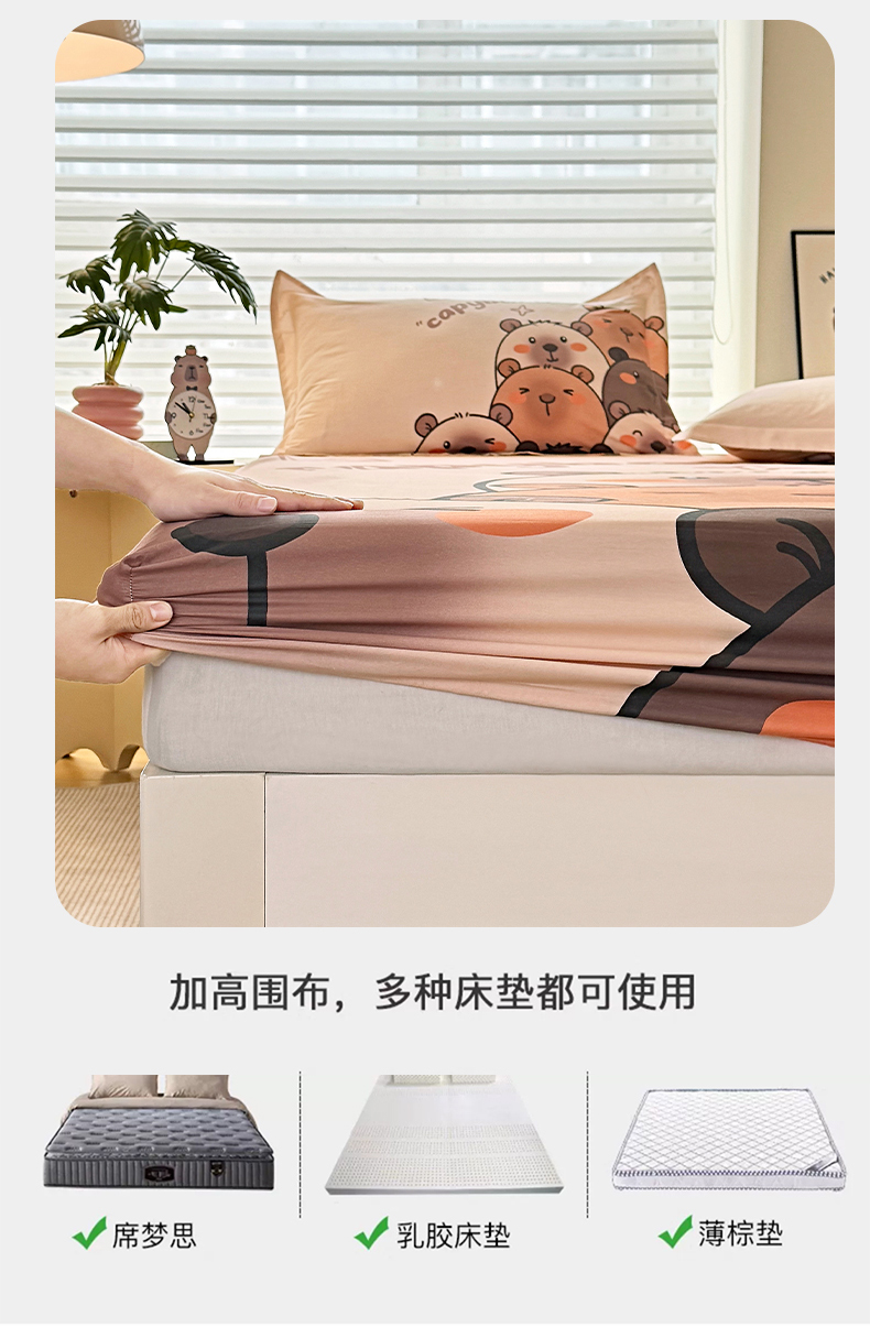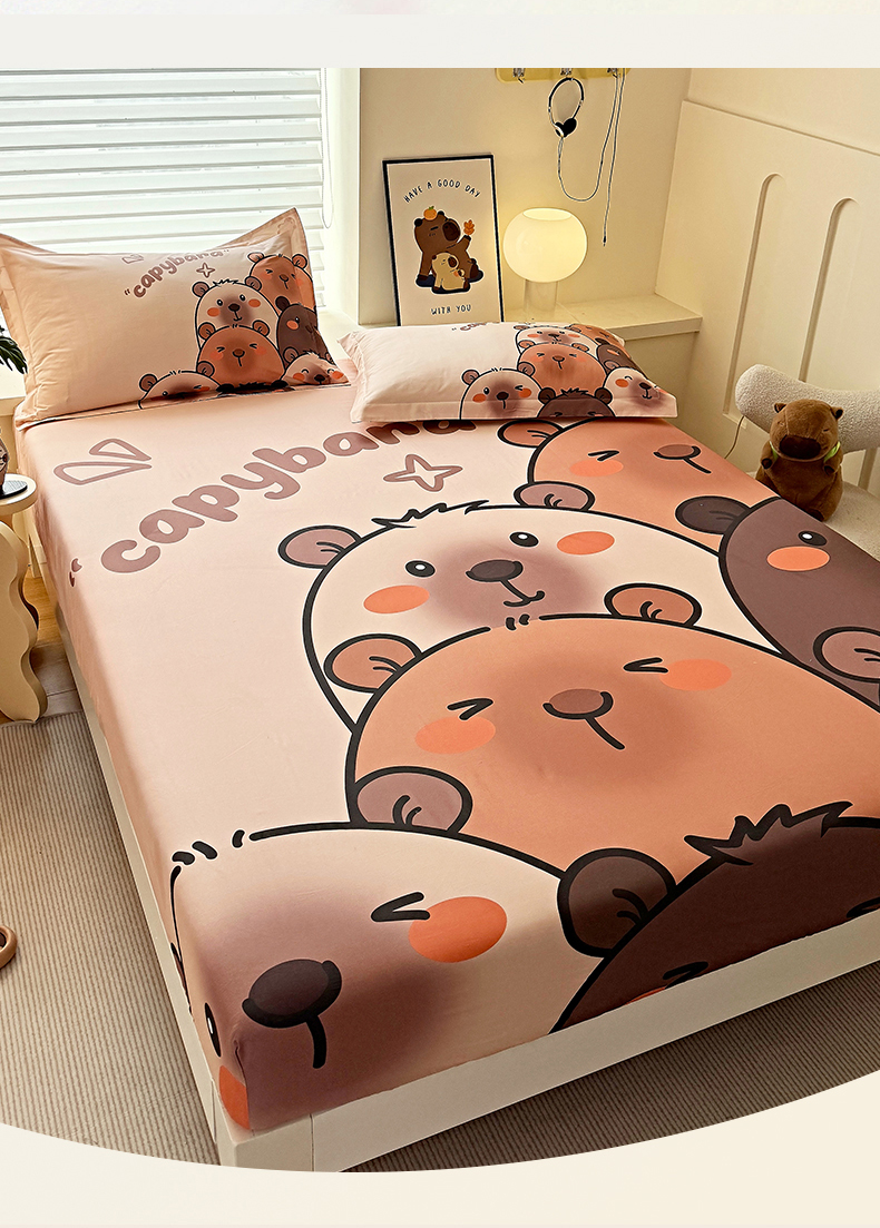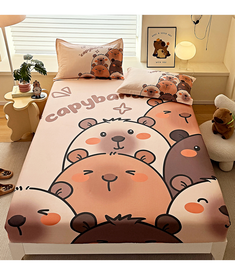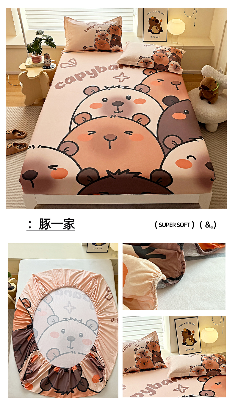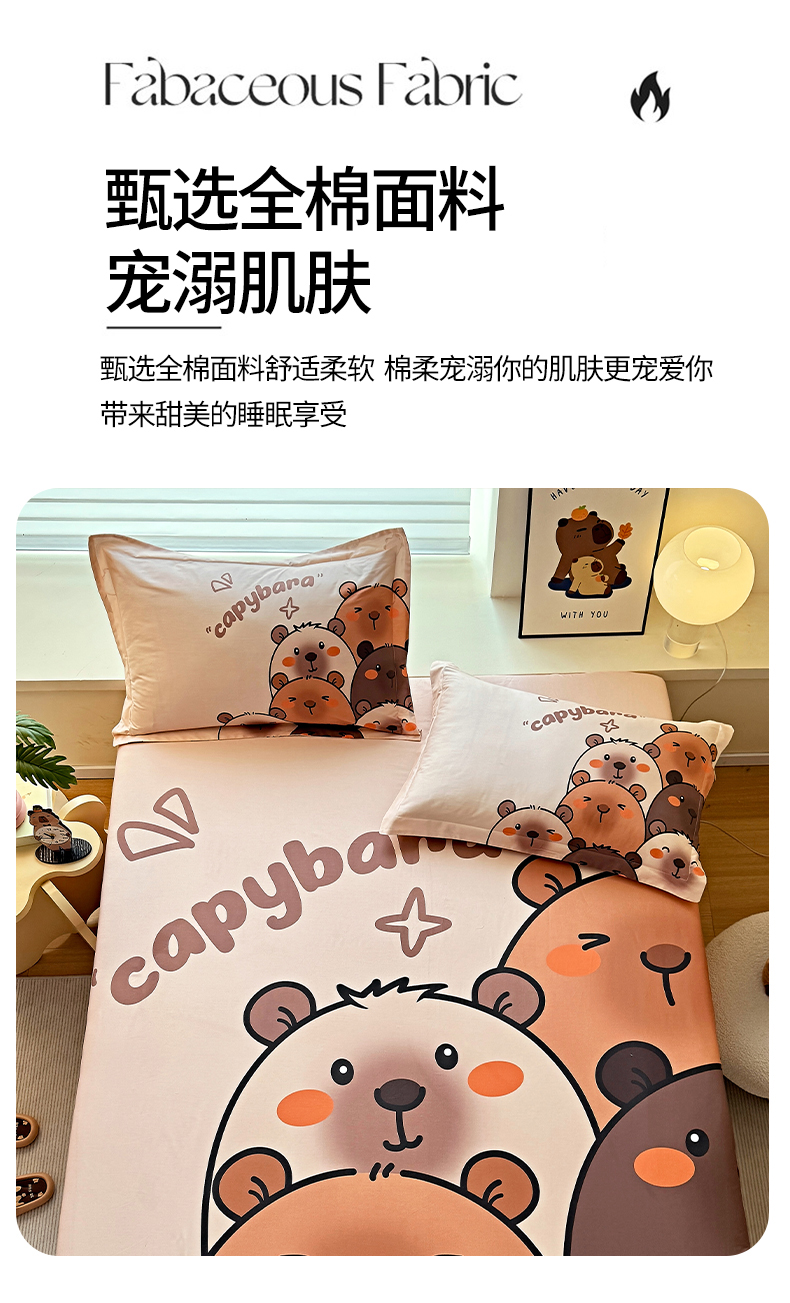 蘭菲家纺 2025新款全棉大版卡皮巴拉系列单品床笠 豚一家