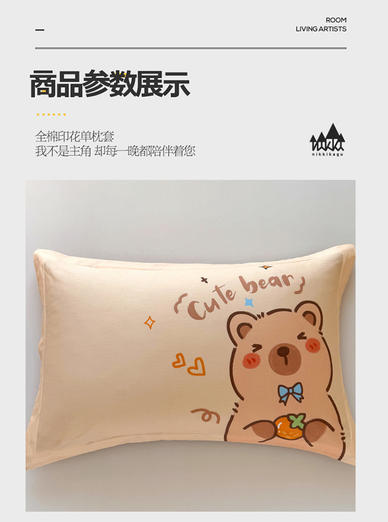 商品名称:蘭菲家纺 2025新款全棉大版卡皮巴拉系列单品枕套 大美豚