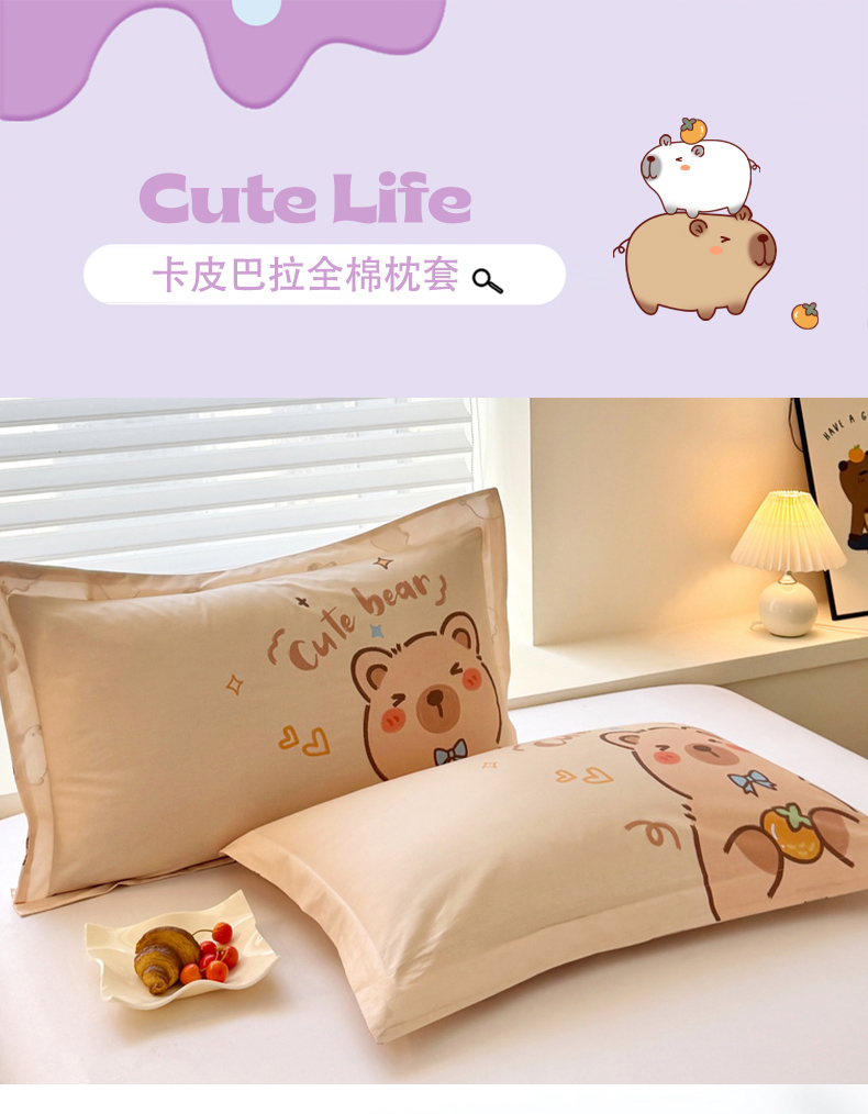 蘭菲家纺 2025新款全棉大版卡皮巴拉系列单品枕套 大美豚