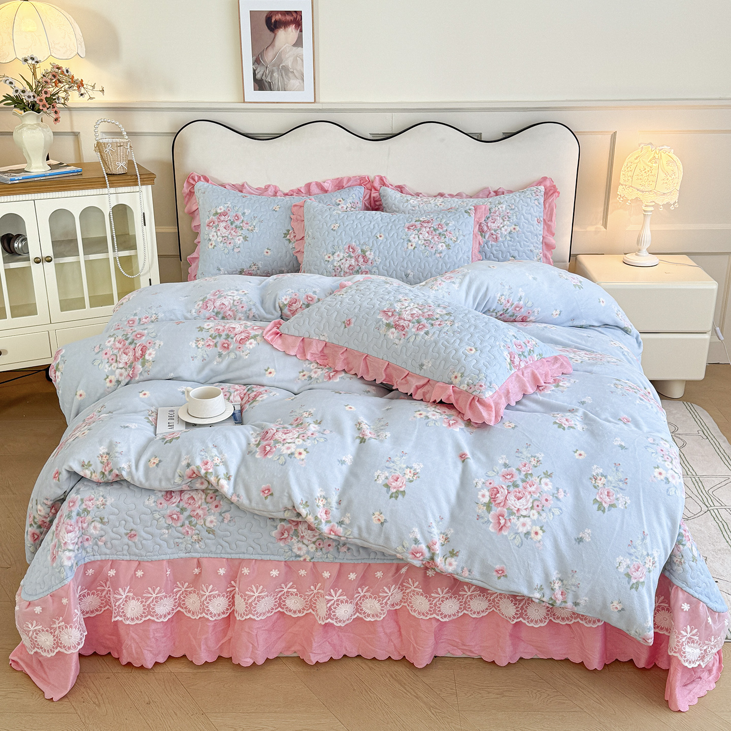 当前位置: 91家纺网 > 商品网购 > 床品套件 > 四件套 > 牛奶绒四件套 > 珍爱家纺 2025新款冬季加厚夹棉保暖牛奶绒蕾丝花边床盖床裙单件三件套双人四件套 花梦