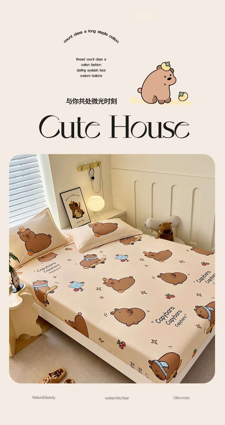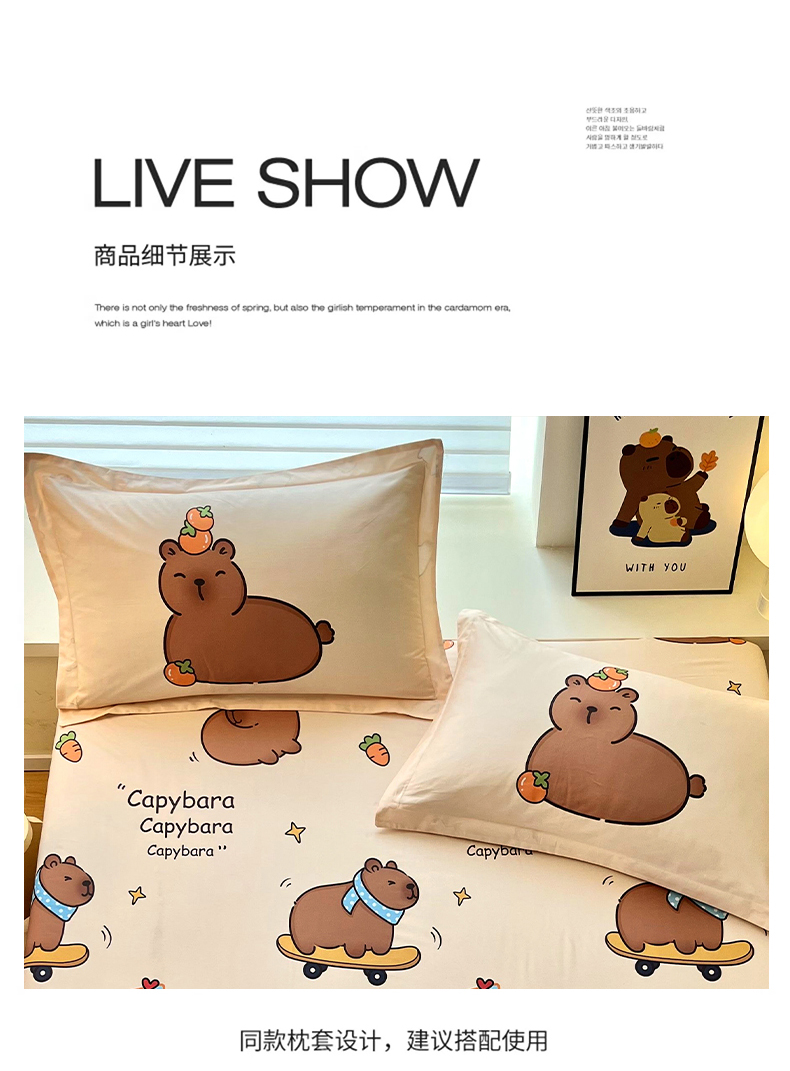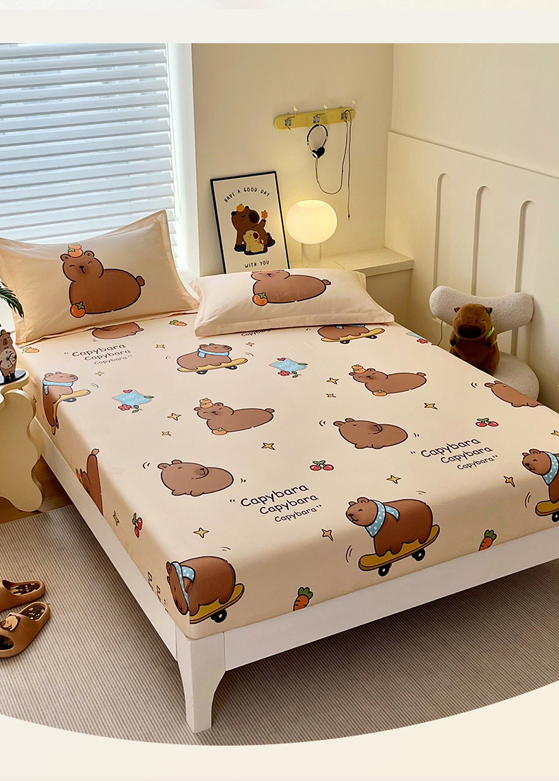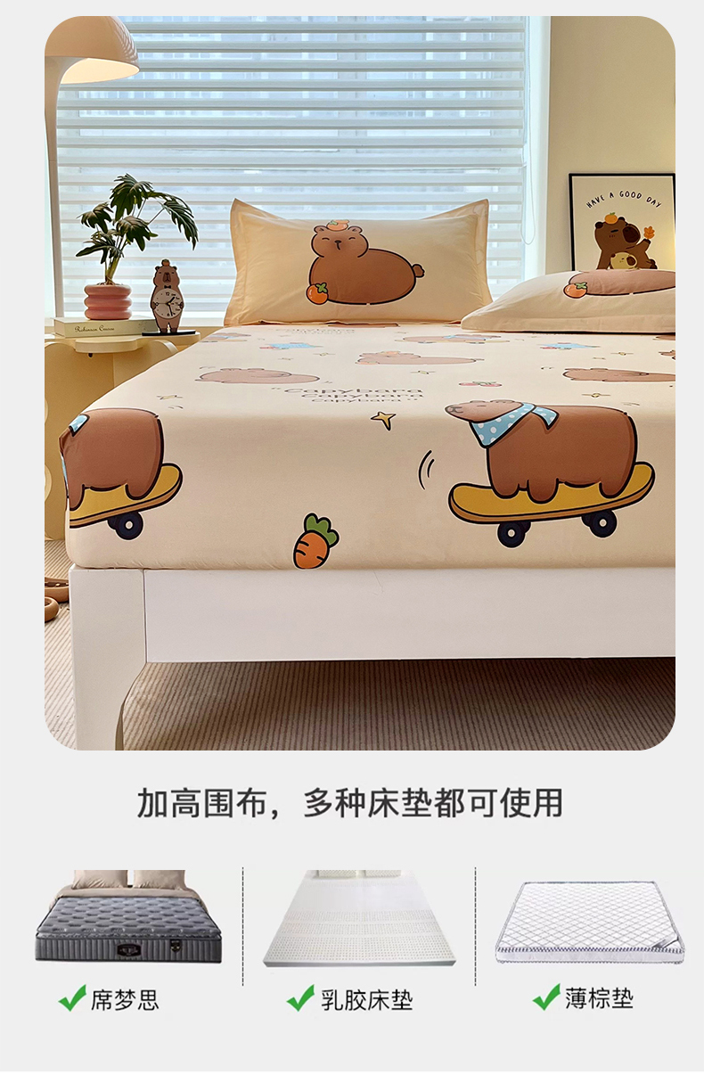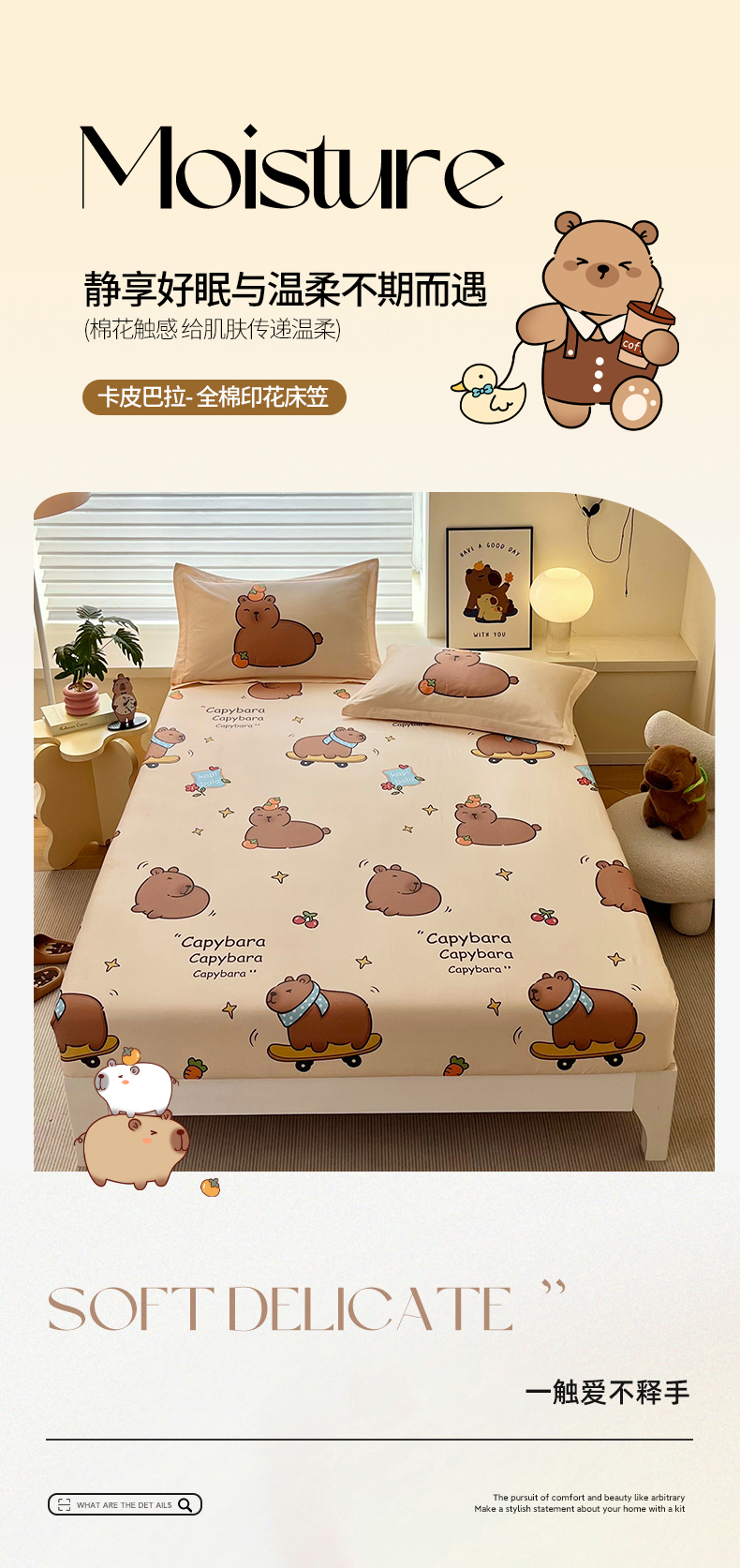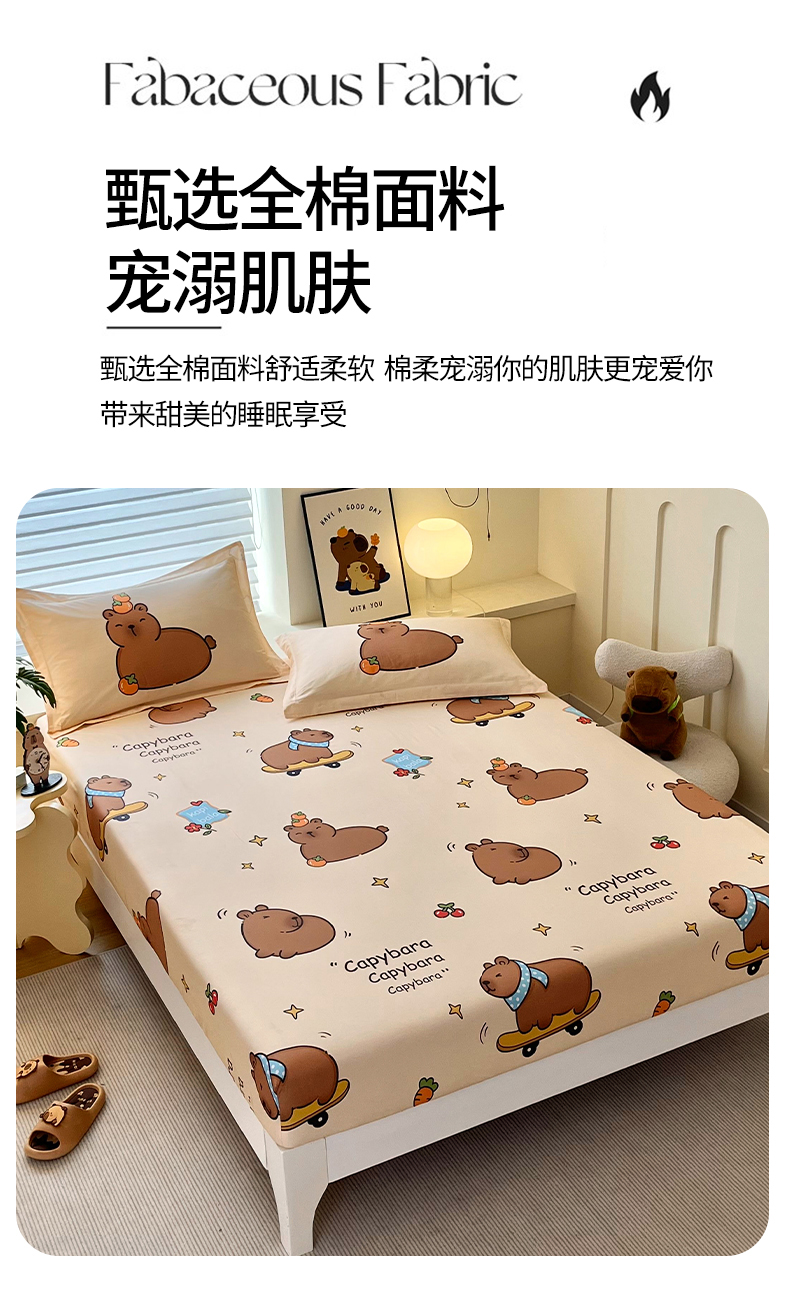 蘭菲家纺 2025新款全棉小版卡皮巴拉系列单品床笠 爱滑板