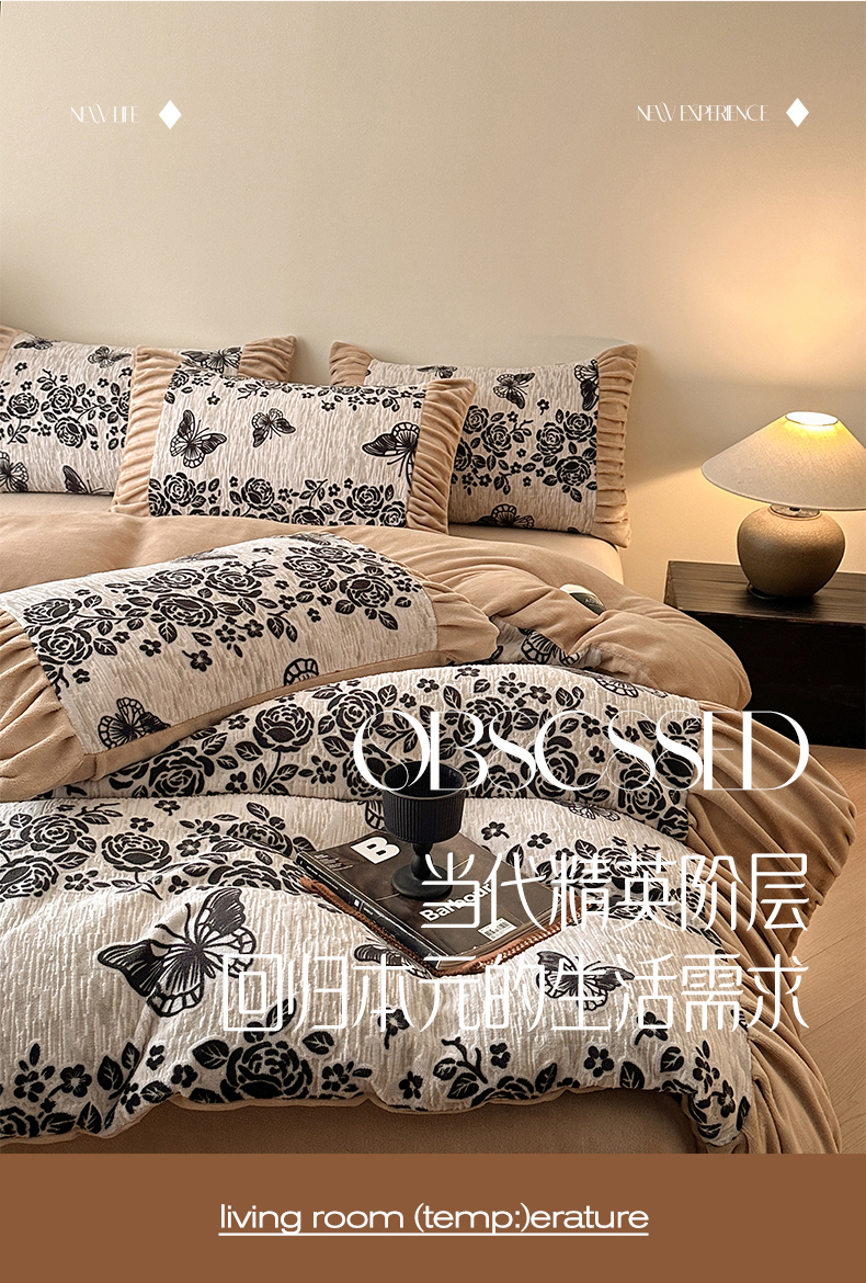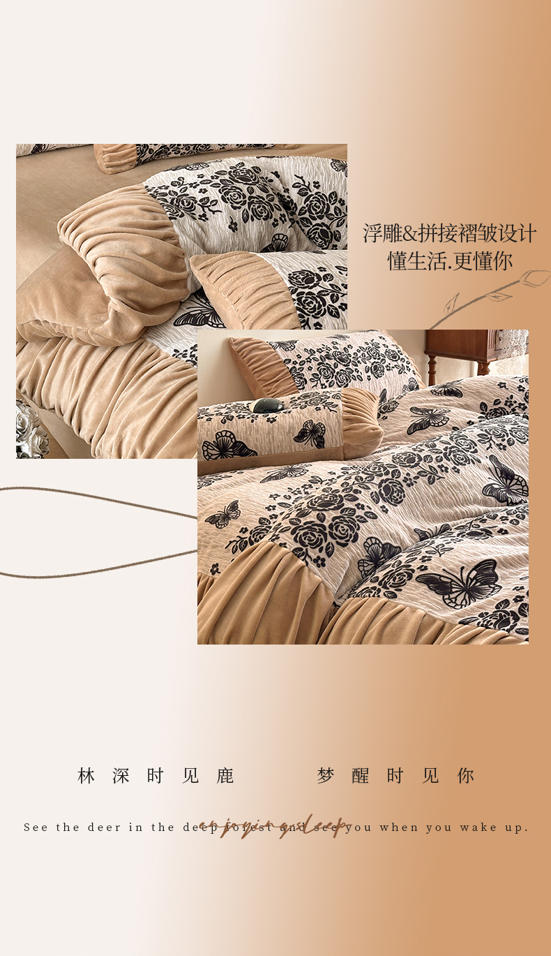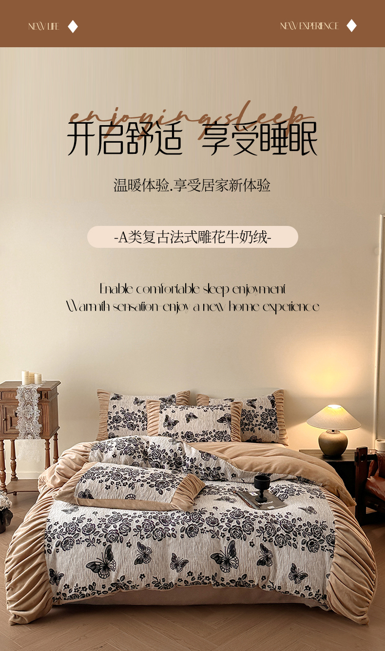 (总)羚羊语家纺 2025新款浮雕绒轻法式牛奶绒四件套雕花绒复古ins风立体着色烂花牛奶绒提花床单三件套-香榭落叶,香榭落叶-花烬影,香榭落叶-小夜曲,香榭落叶-塞纳吻,香榭落叶-巴洛克,香榭落叶-浮梦绘,香榭落叶-洛丽纱