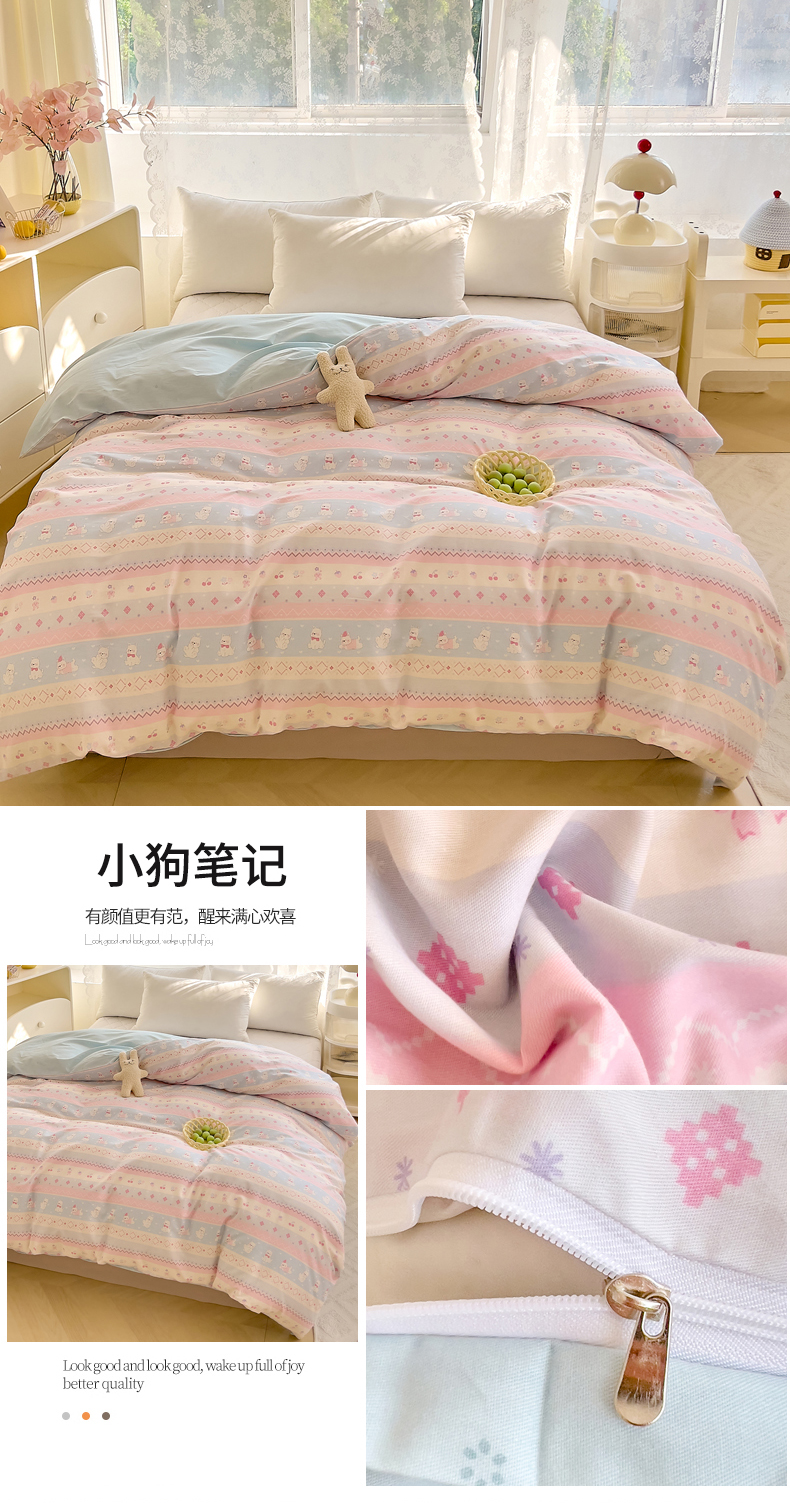 (总)DoDo 兜兜 2025新款卡通全棉纯棉小清新三四件套系列 (可定做尺寸),星星仔,爱豆熊,豹纹小熊,多彩笑脸,粉粉猫,狗狗家族,假日小狗,萝莉兔,蘑菇小狗,围裙小熊,小狗笔记