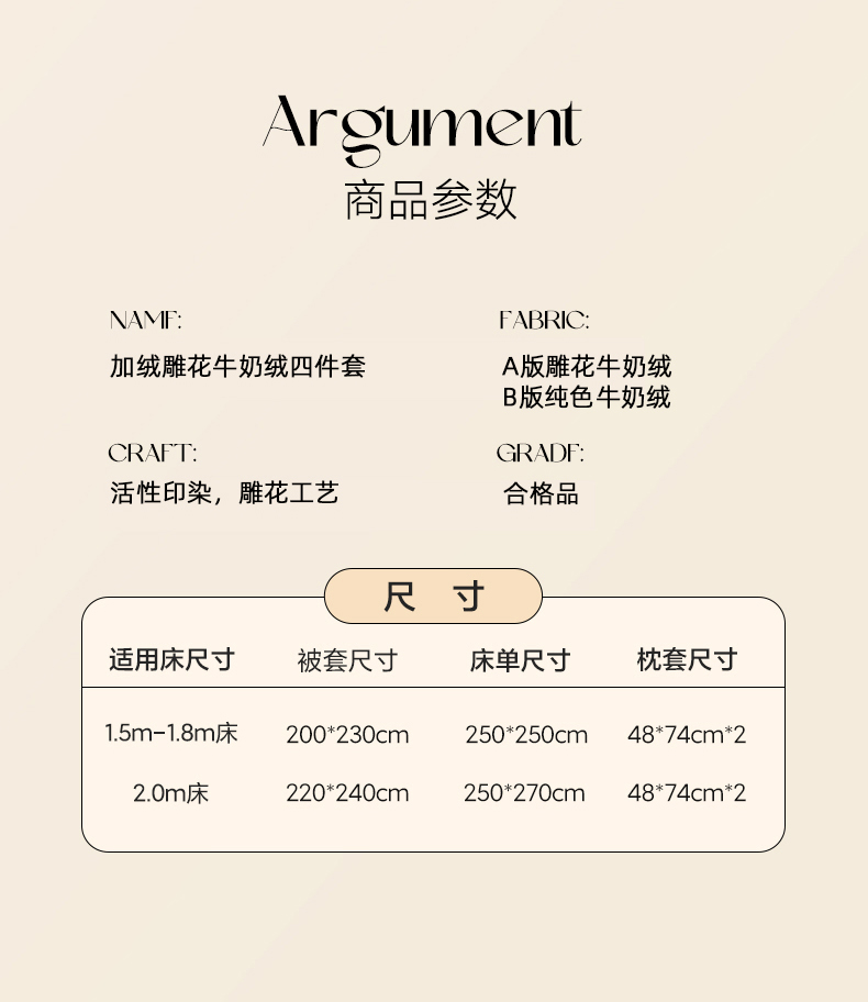 商品名称:(总)贝诗梦 2025新款高克重230克5D雕花牛奶绒四件套