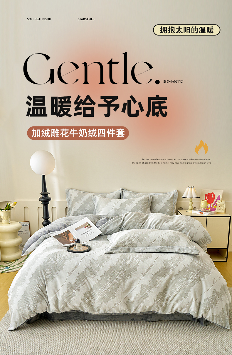 (总)贝诗梦 2025新款高克重230克5D雕花牛奶绒四件套