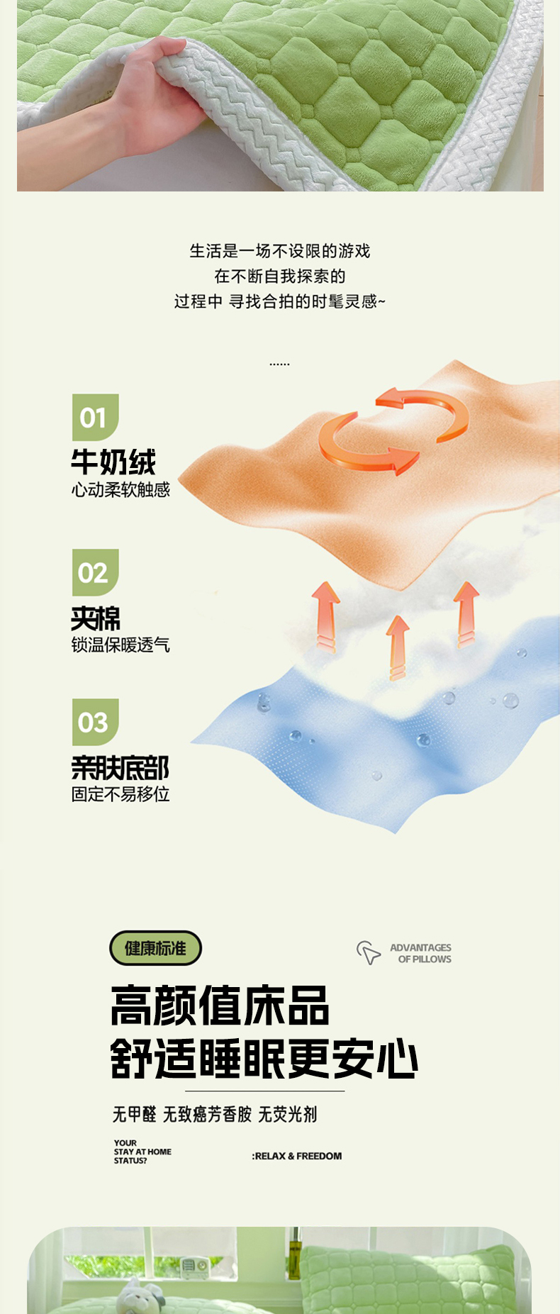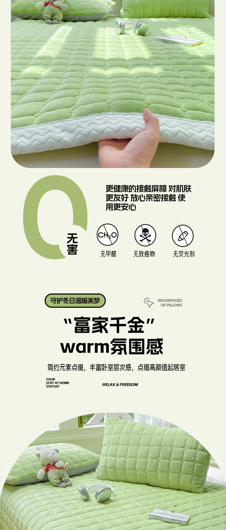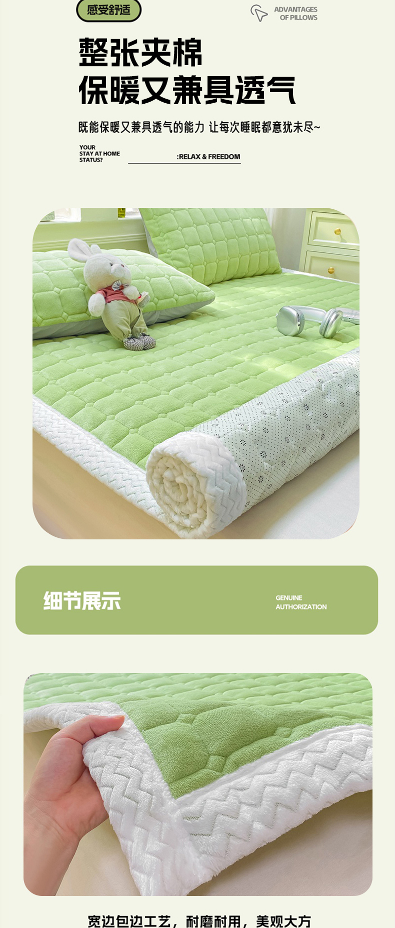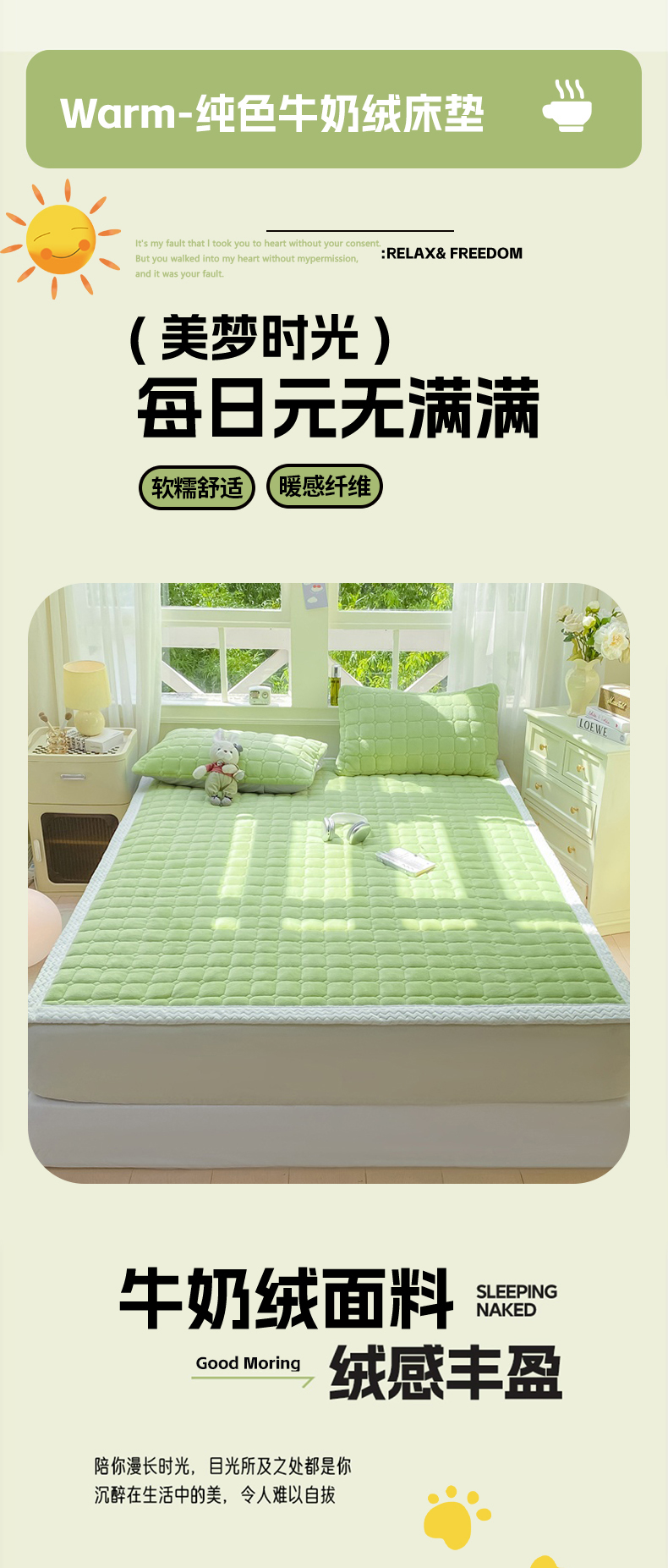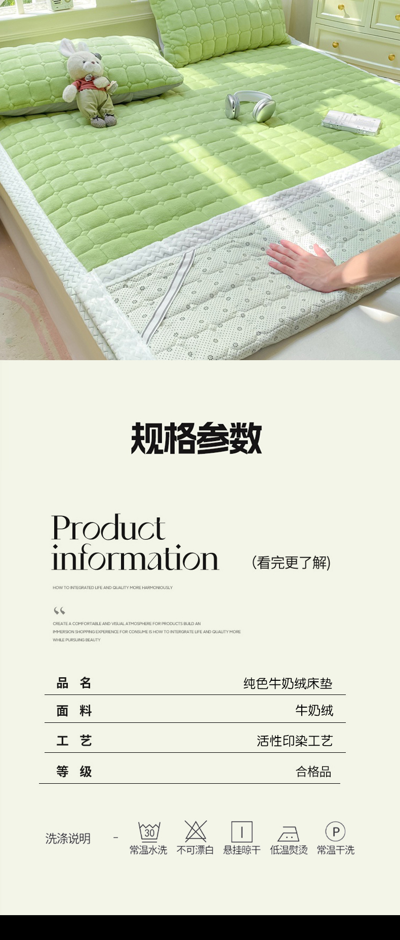 当前位置: 91家纺网 > 商品网购 > 床垫/床褥 > 普通床垫 > 2025年新款纯色牛奶绒夹棉床垫-风格一 豆绿
