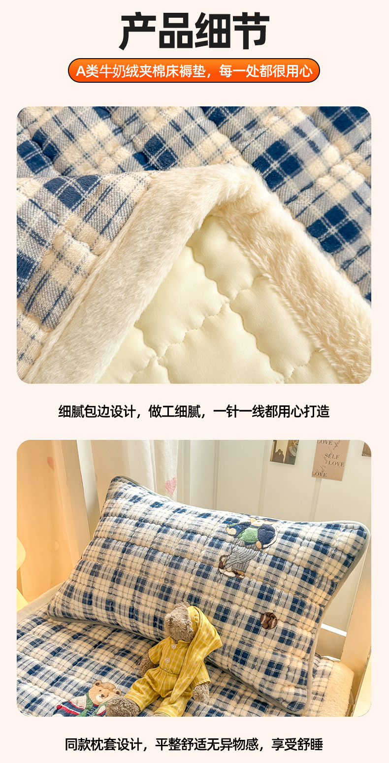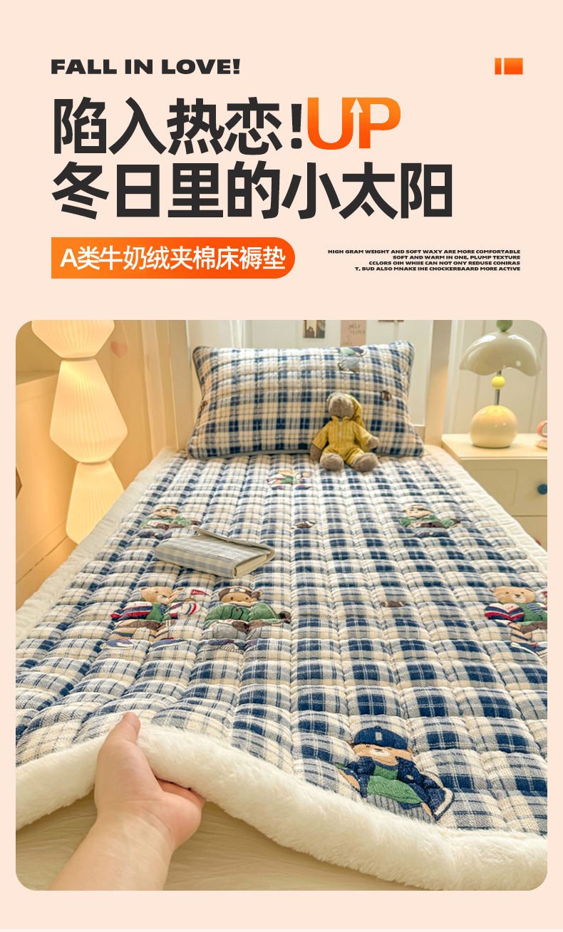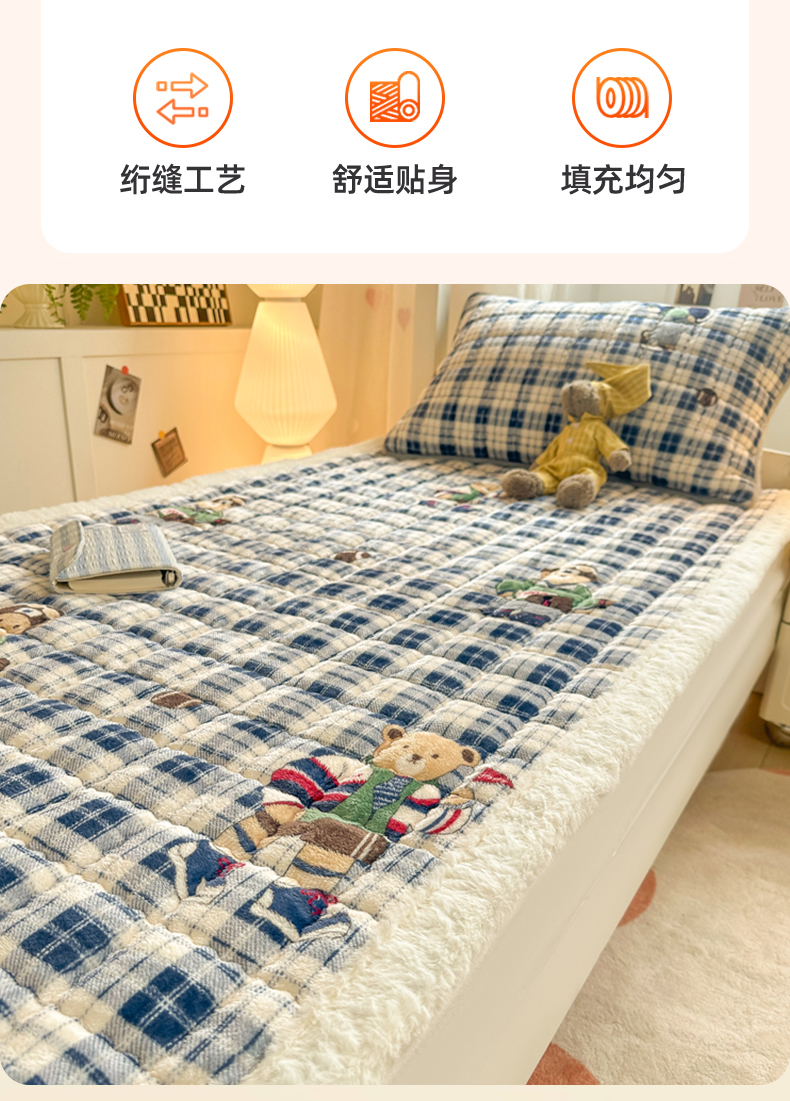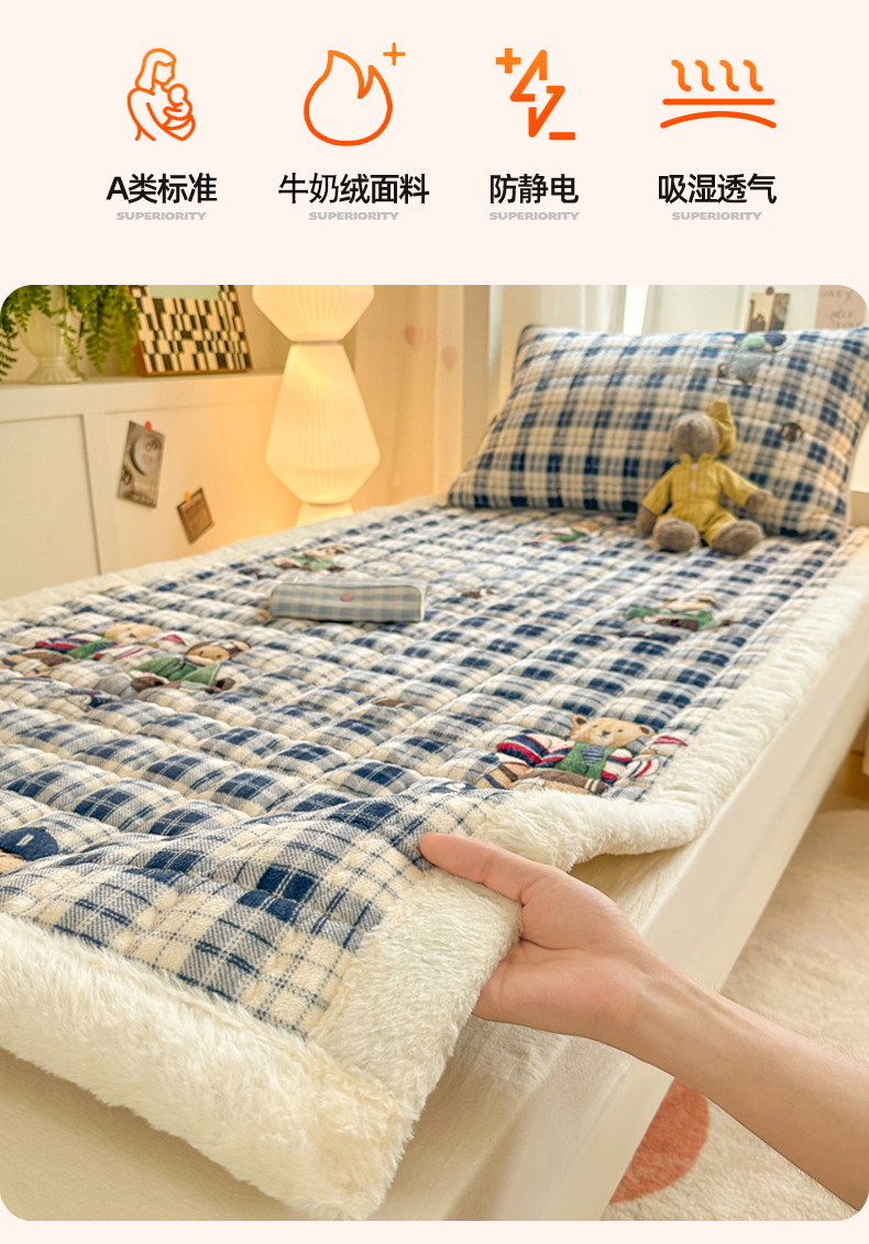 当前位置: 91家纺网 > 商品网购 > 床垫/床褥 > 普通床垫 > 韩巢家纺 2025款秋冬季上下铺牛奶绒床垫床护垫学生床褥子宿舍寝室床褥铺底 暖绒-蓝格英伦熊