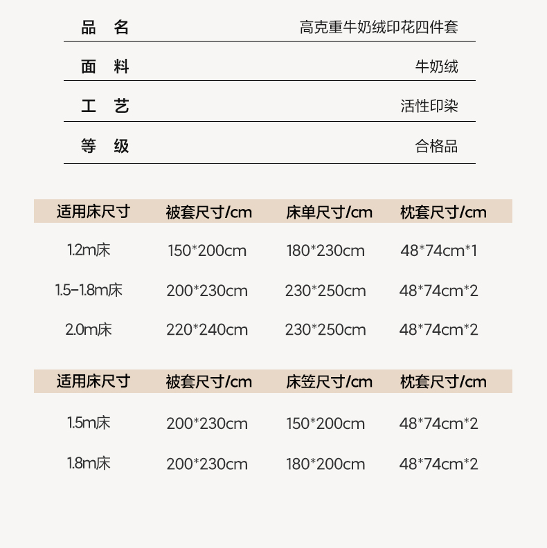 1.8m床笠款四件套 | ¥85.00 |