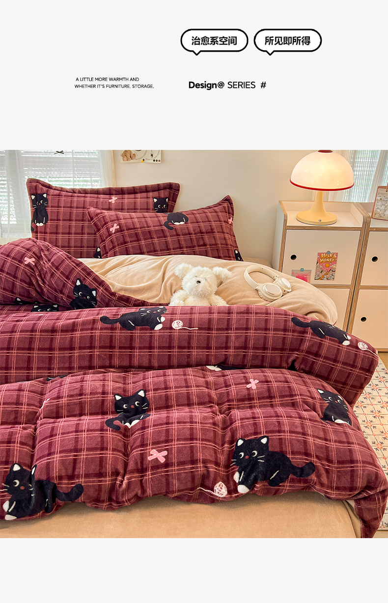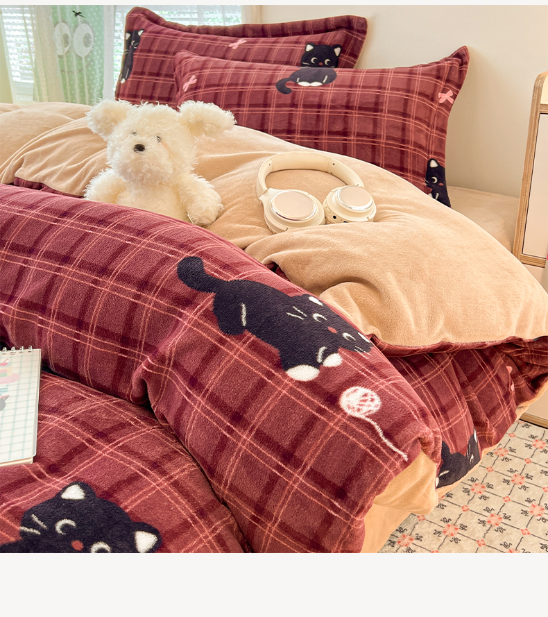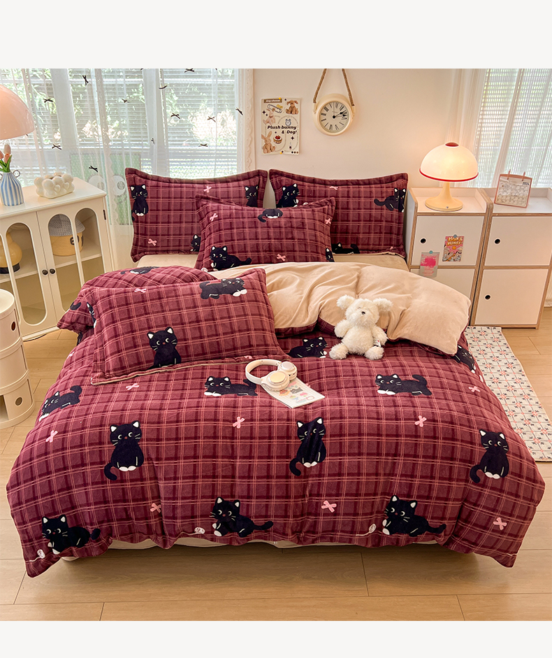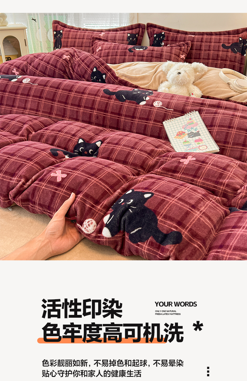 当前位置: 91家纺网 > 商品网购 > 床品套件 > 四件套 > 牛奶绒四件套 > 启发 2025新款高克重小清新牛奶绒印花四件套 线球猫咪
