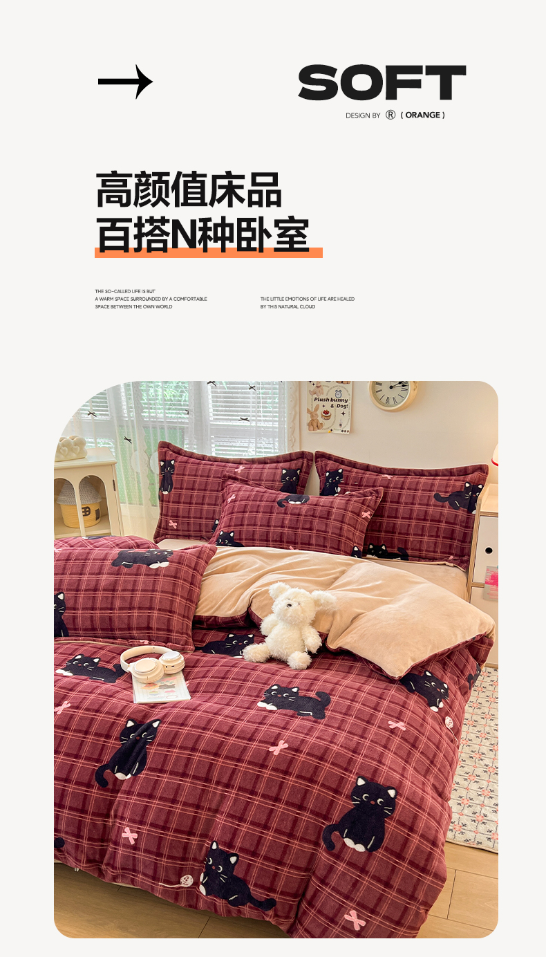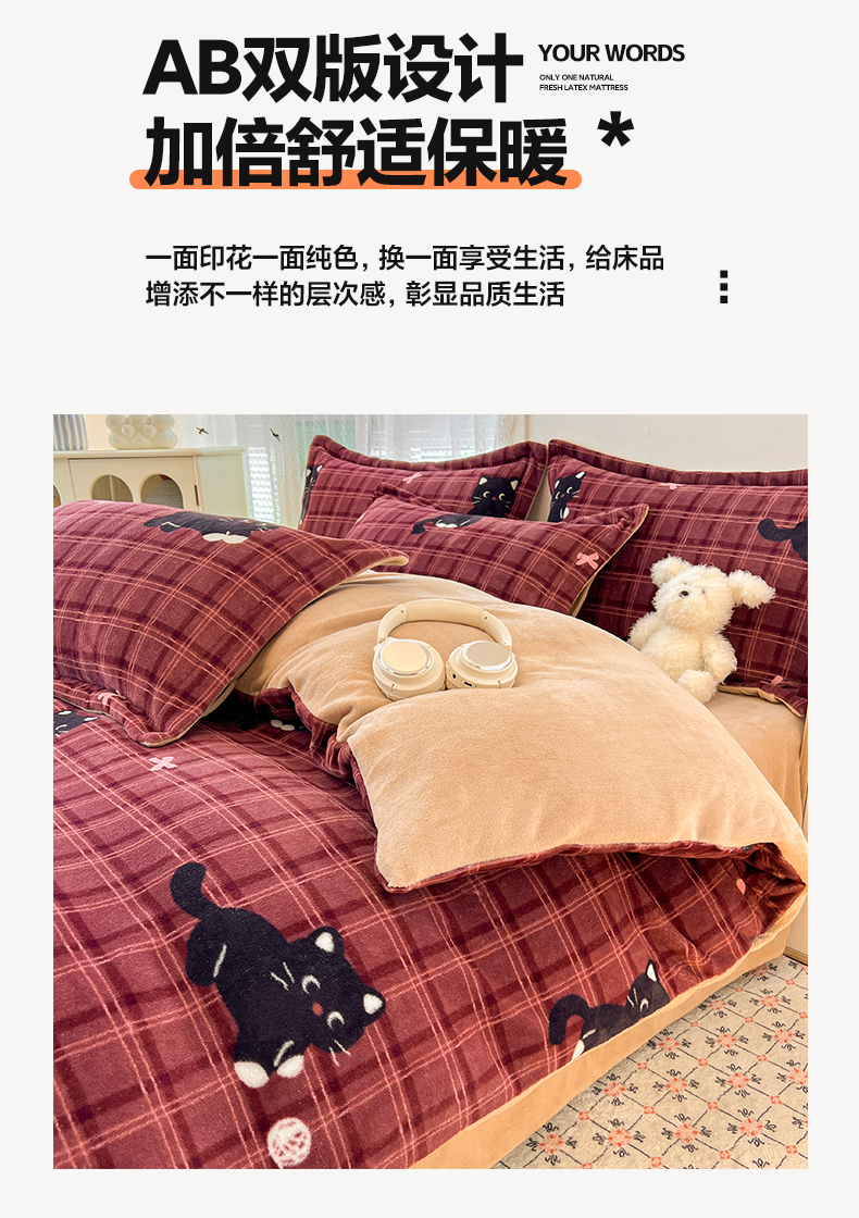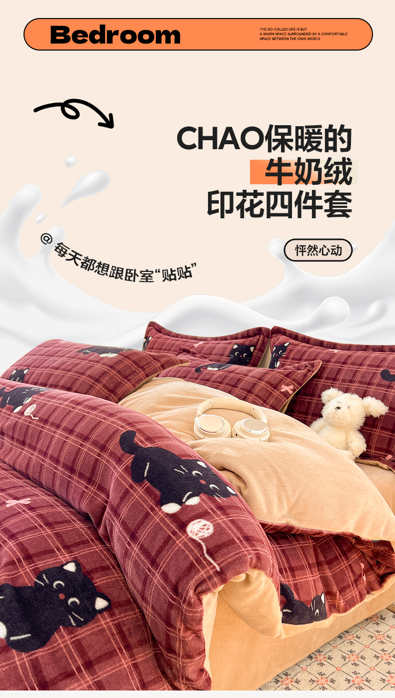 当前位置: 91家纺网 > 商品网购 > 床品套件 > 四件套 > 牛奶绒四件套 > 启发 2025新款高克重小清新牛奶绒印花四件套 线球猫咪
