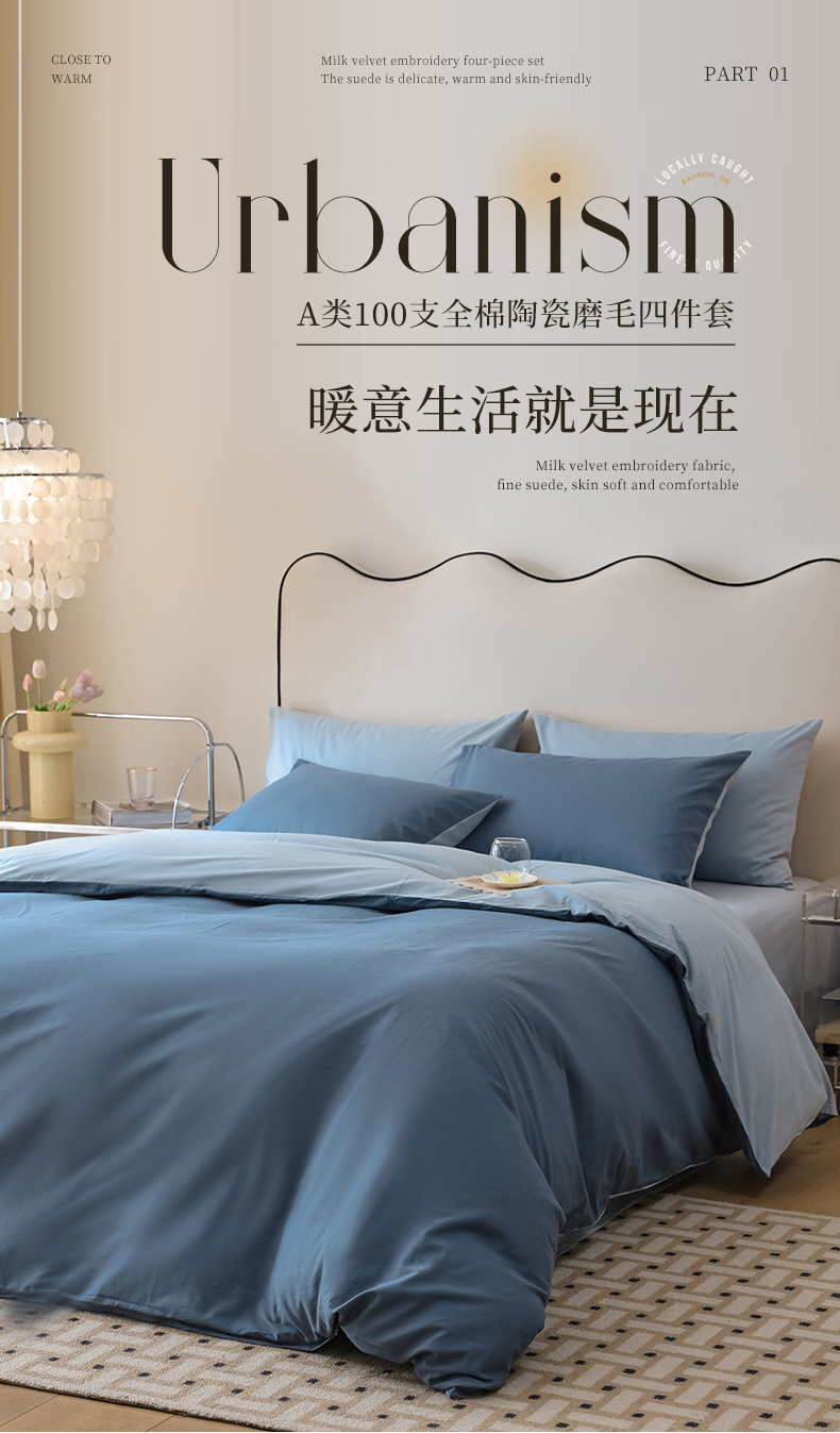 当前位置: 91家纺网 > 商品网购 > 床品套件 > 四件套 > 普通磨毛四件套 > ONE TWO ONE 121 2025新款A类高支高密全棉陶瓷磨毛(小cr )纯色四件套 蔚蓝浅蓝