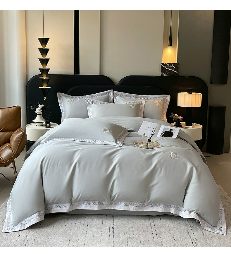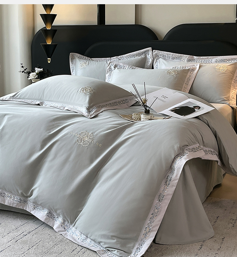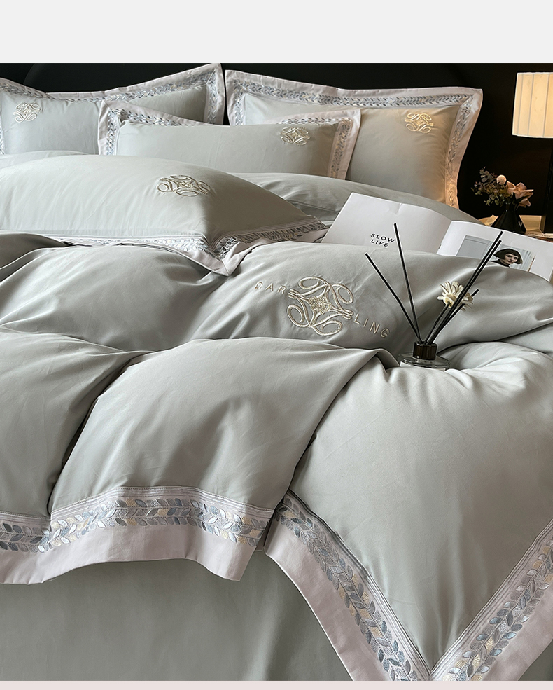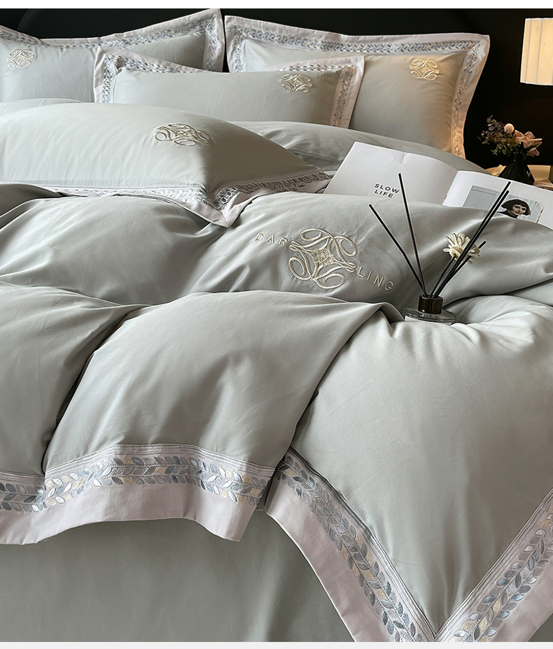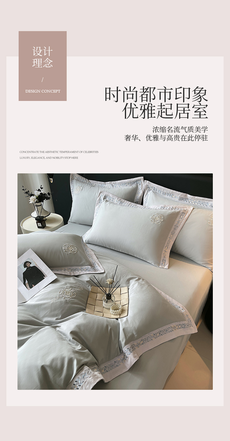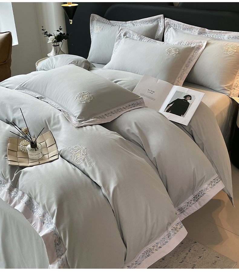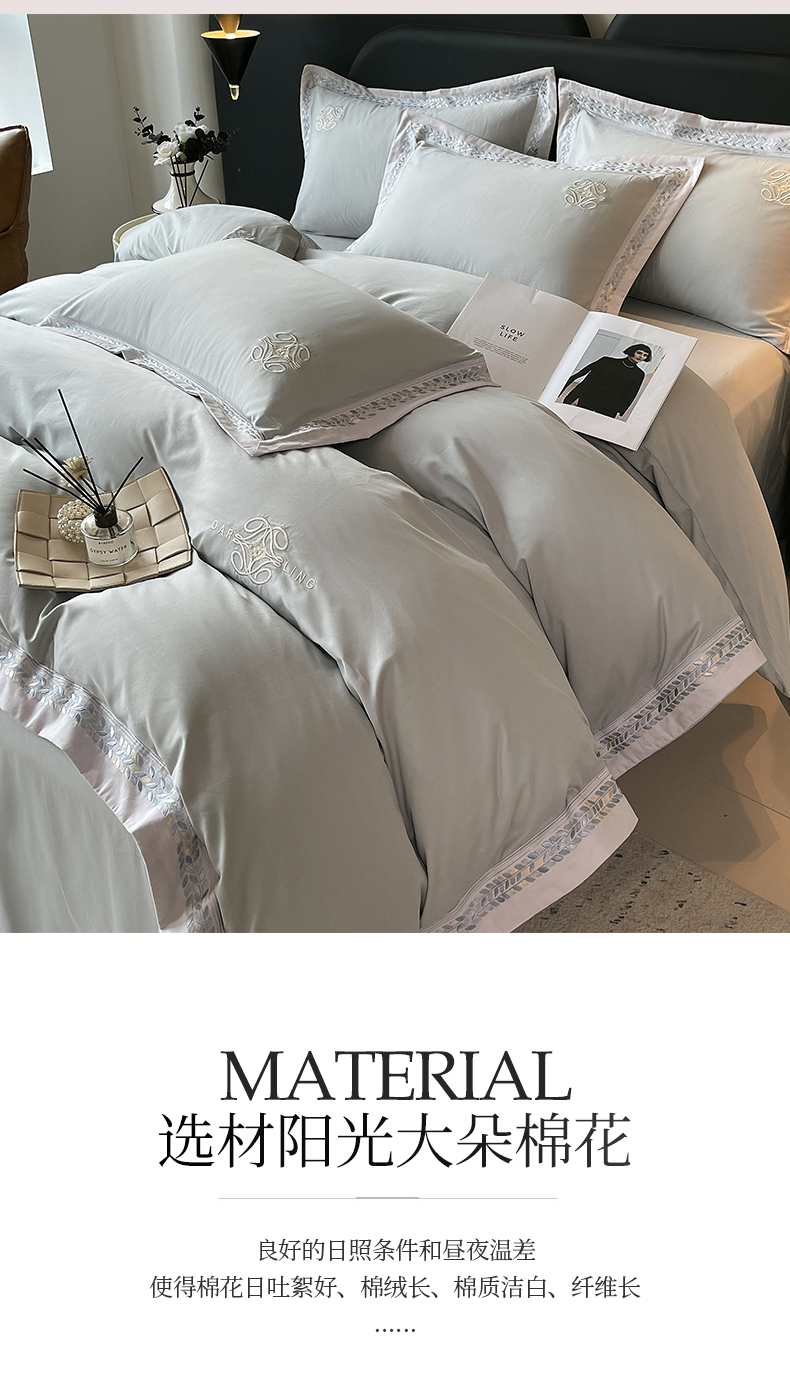 鼎飞家纺 2025新款全棉磨毛绣花四件套-米娅 米娅-卡灰