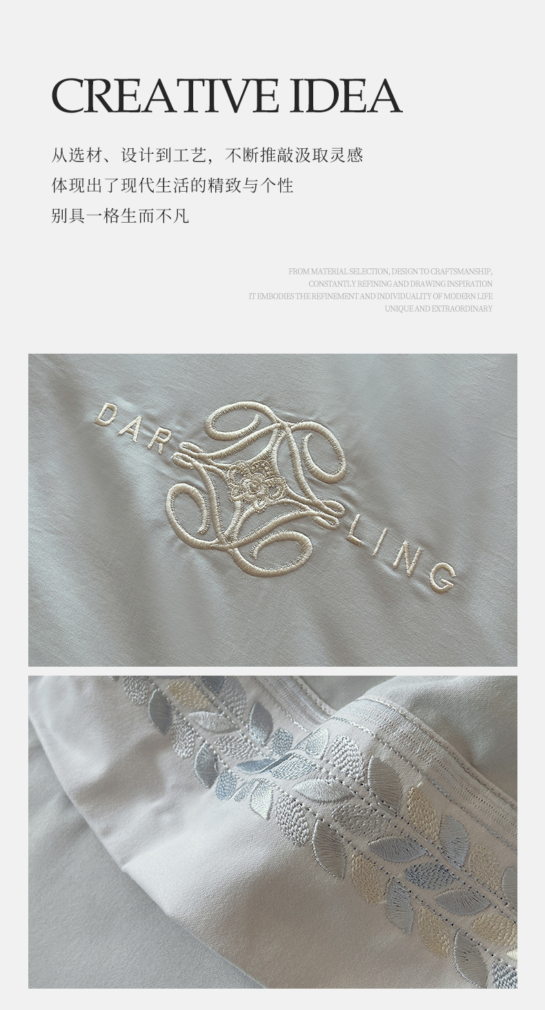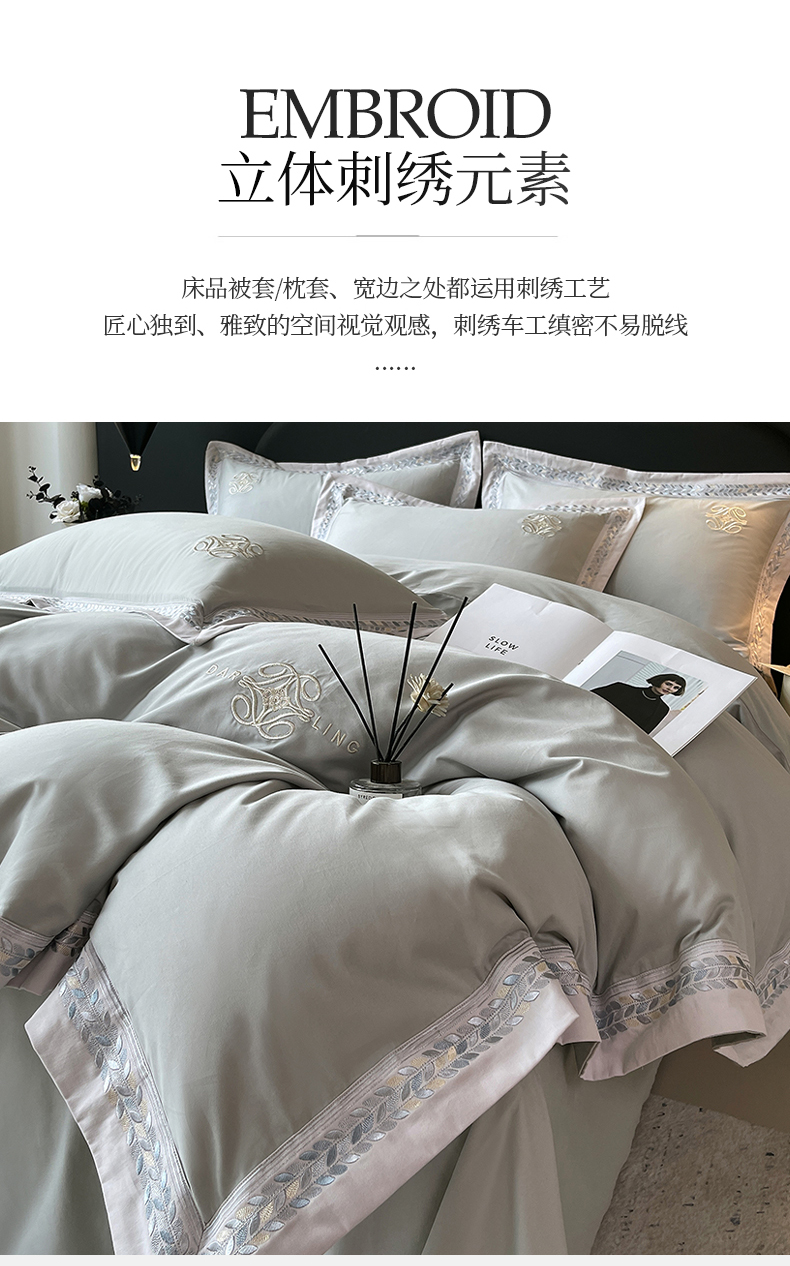 (总)鼎飞家纺 2025新款全棉磨毛刺绣四件套系列-梵,梵-卡布基诺,梵-雅灰,梵-奶油白,梵-蕊粉,梵-荞麦