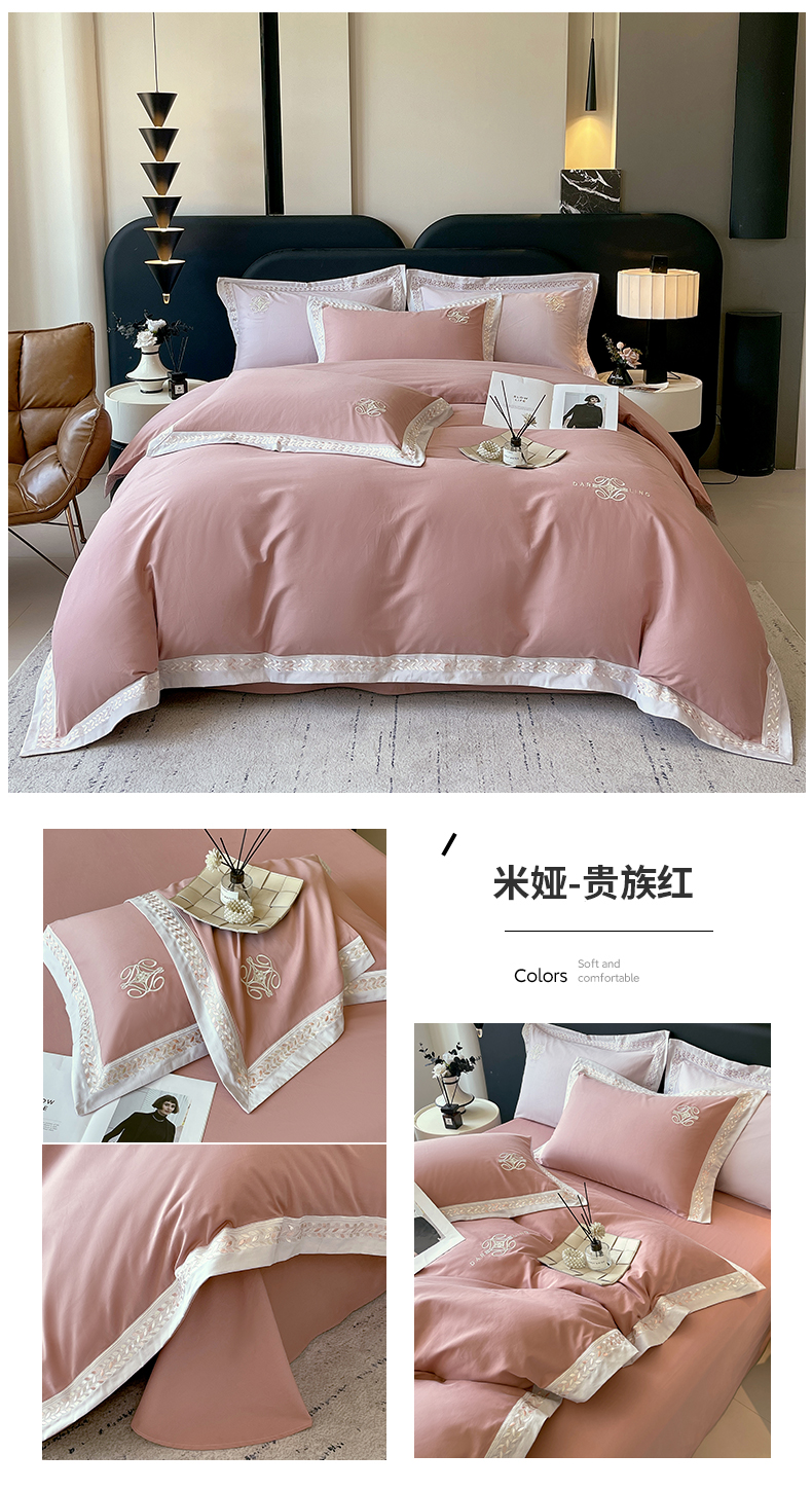 (总)鼎飞 2022新款长绒棉绣花四件套-戴妮,戴妮-黎光白,戴妮-维克蓝绿,戴妮-莺色粉
