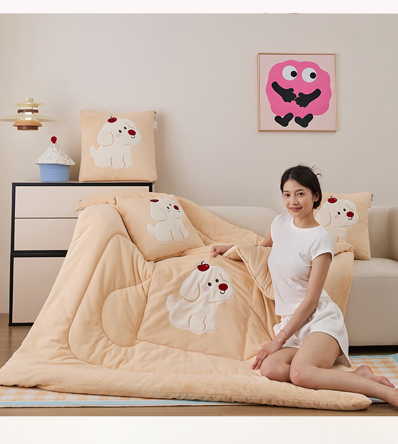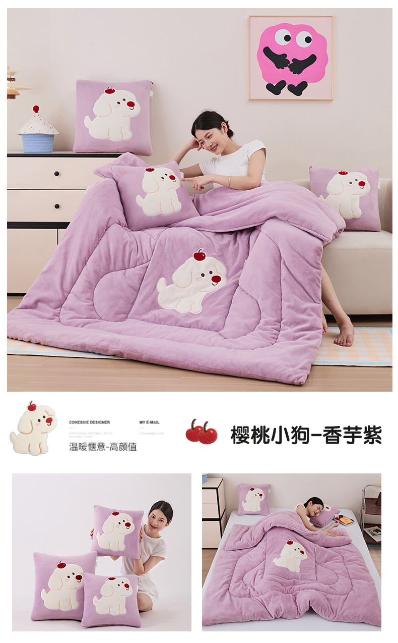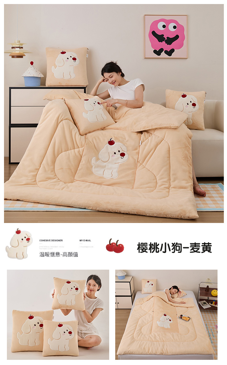 商品名称:(总)哩哩熊2025抱枕被子两用加厚牛奶绒二合一汽车载枕头办公室午睡毯子冬天靠枕-樱桃小狗