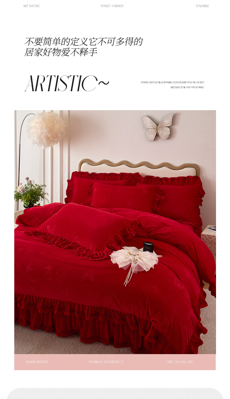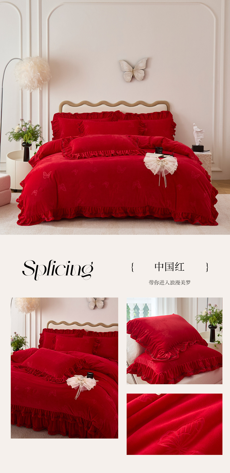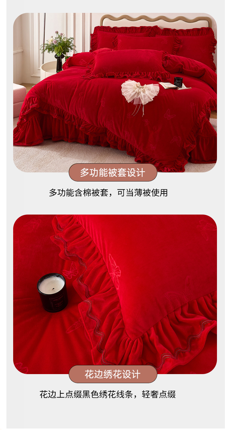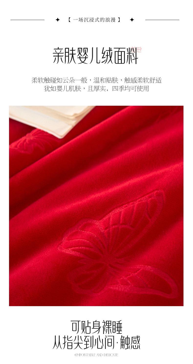 商品名称:金绣美居 2025新款婴儿绒多功能床盖款四件套-知音(控价不低于229/239) 知音-中国红
