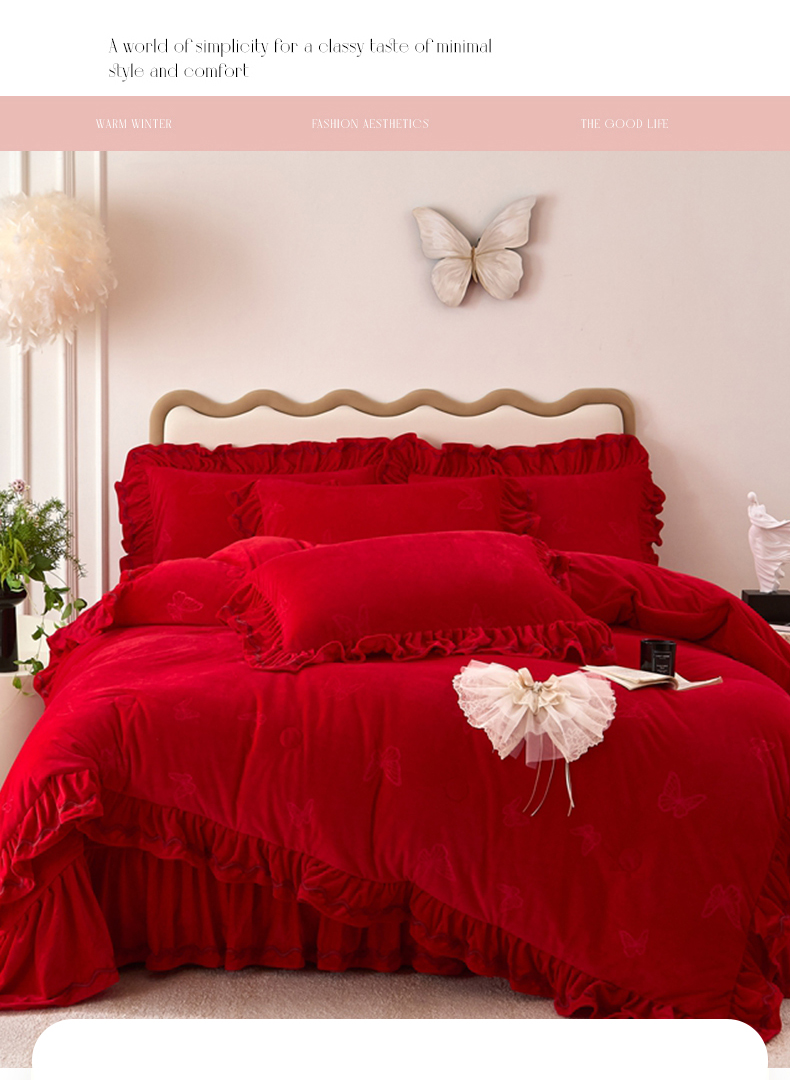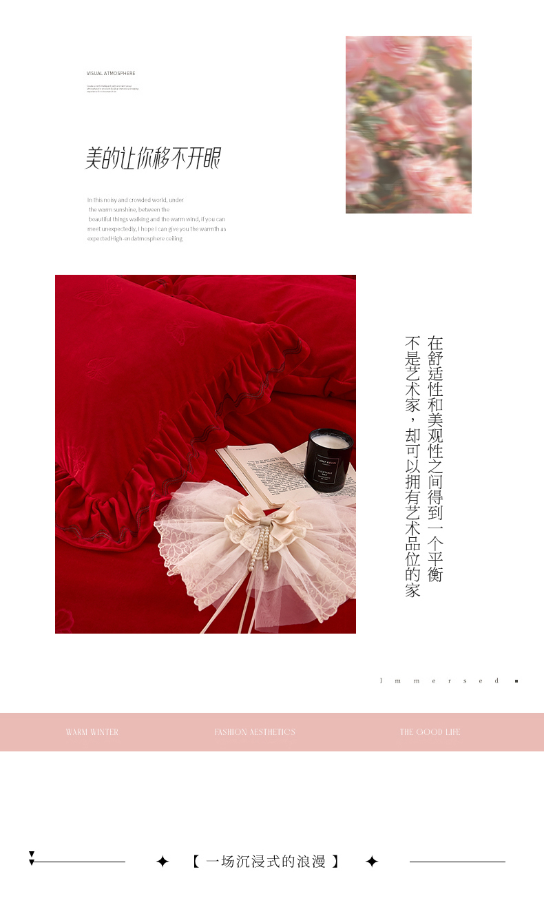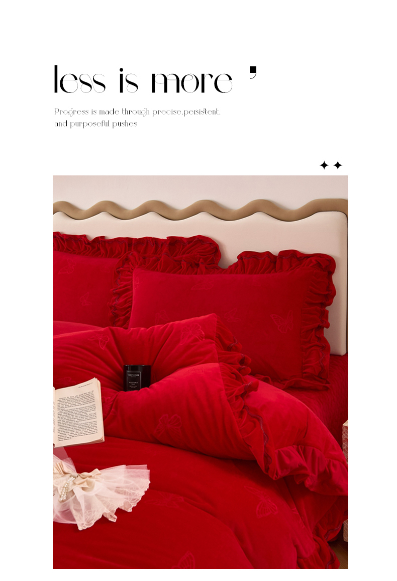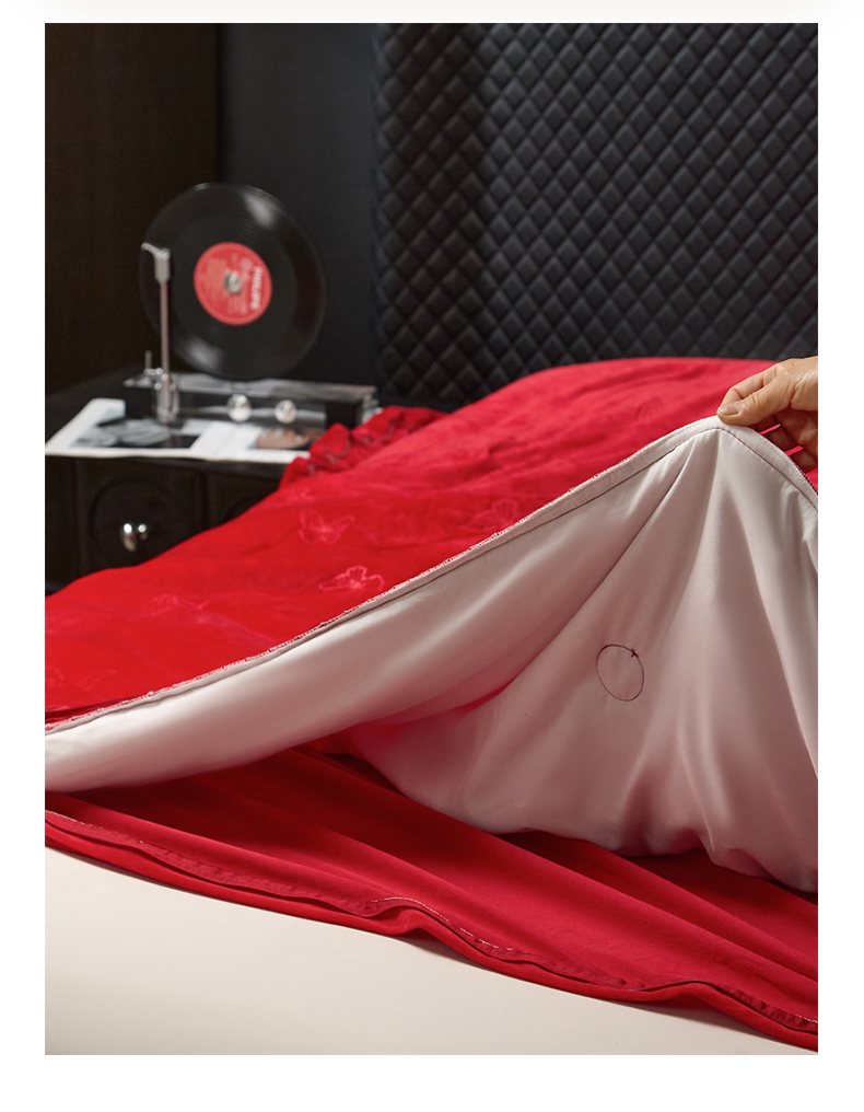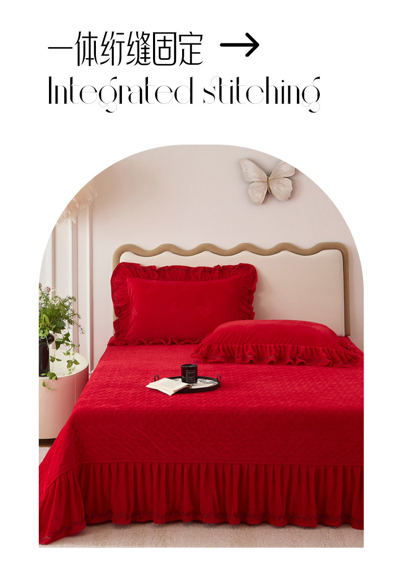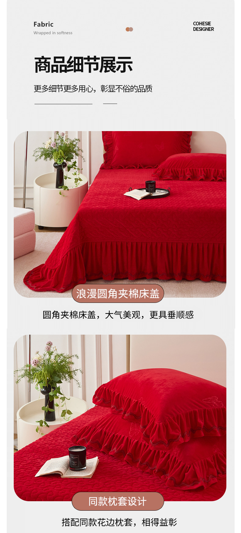 商品名称:金绣美居 2025新款婴儿绒多功能床盖款四件套-知音(控价不低于229/239) 知音-中国红