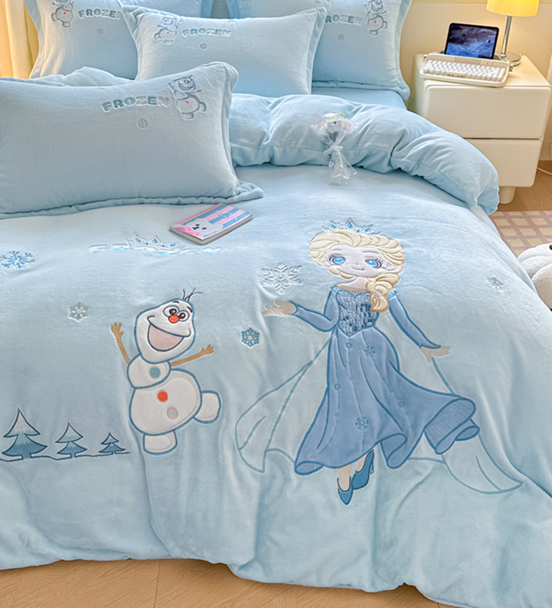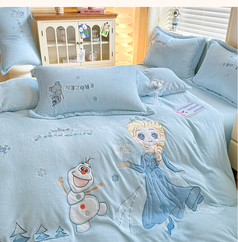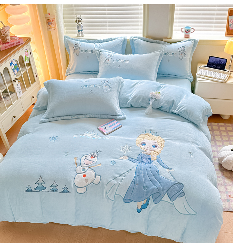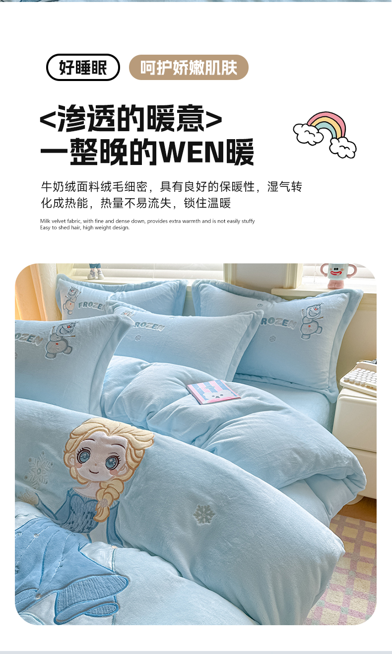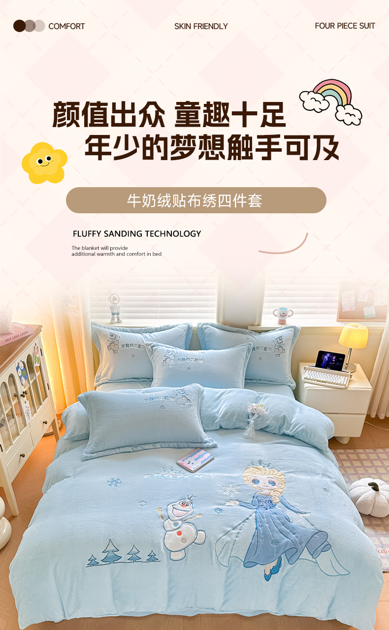金绣美居 2025新款卡通贴布绣款牛奶绒四件套-公主 公主蓝