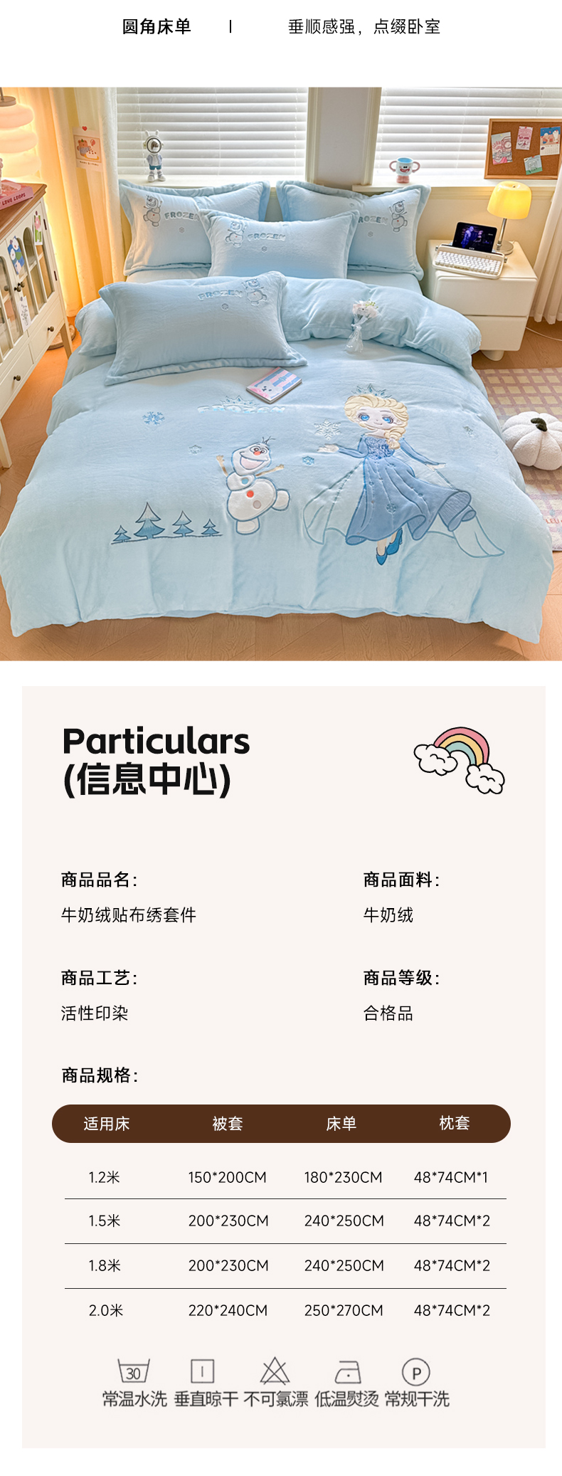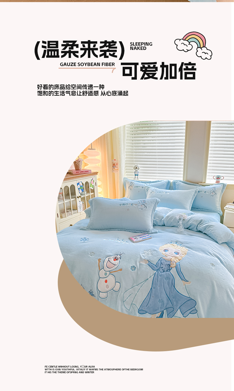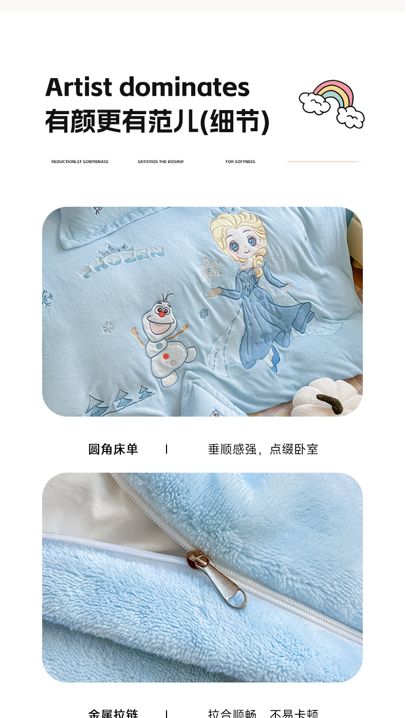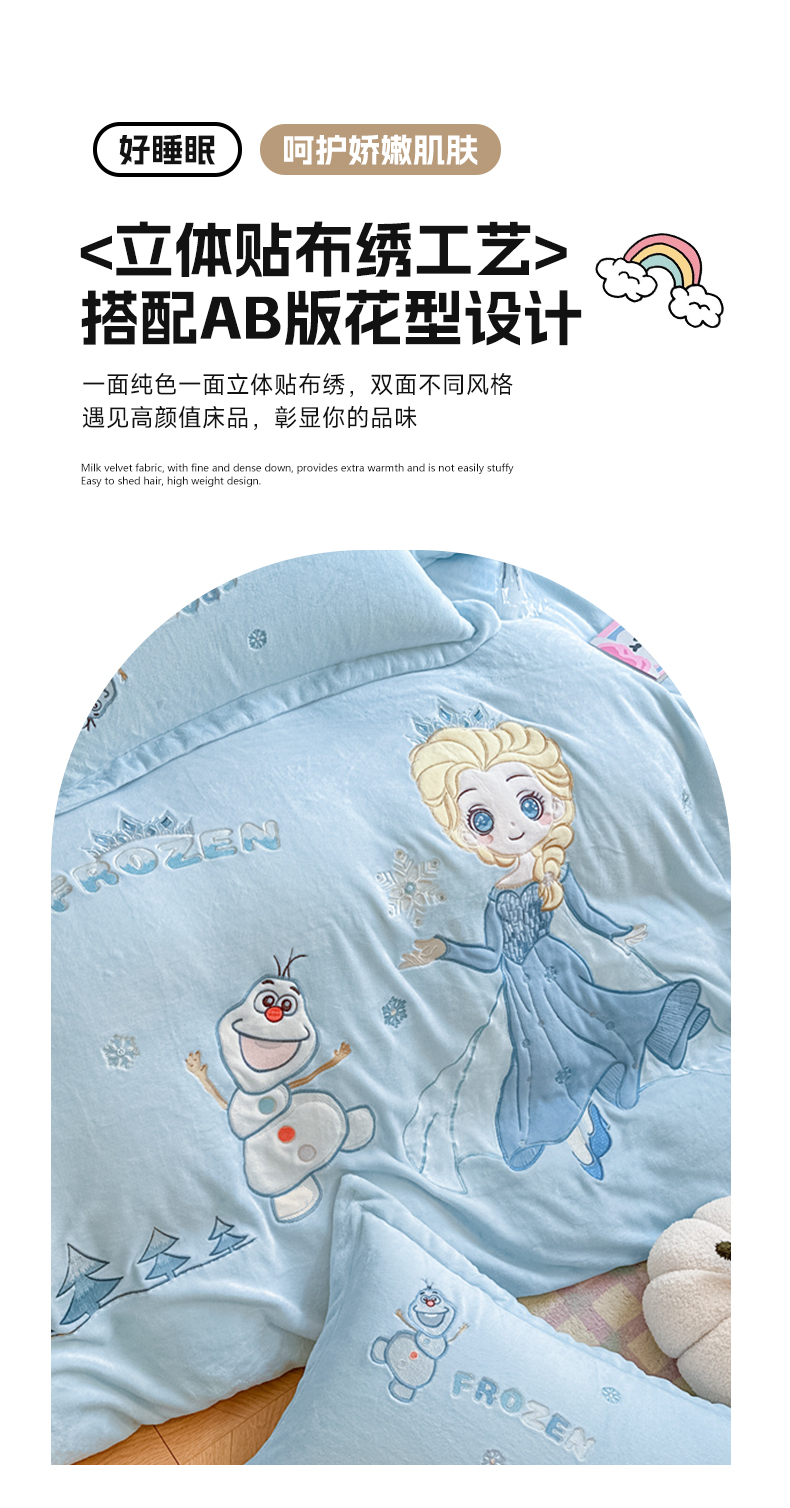 商品名称:金绣美居 2025新款卡通贴布绣款牛奶绒四件套-公主 公主蓝