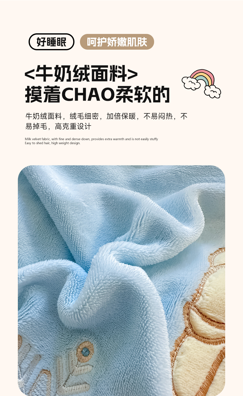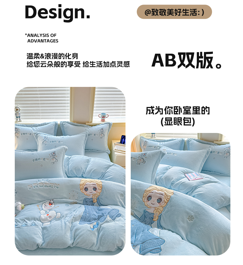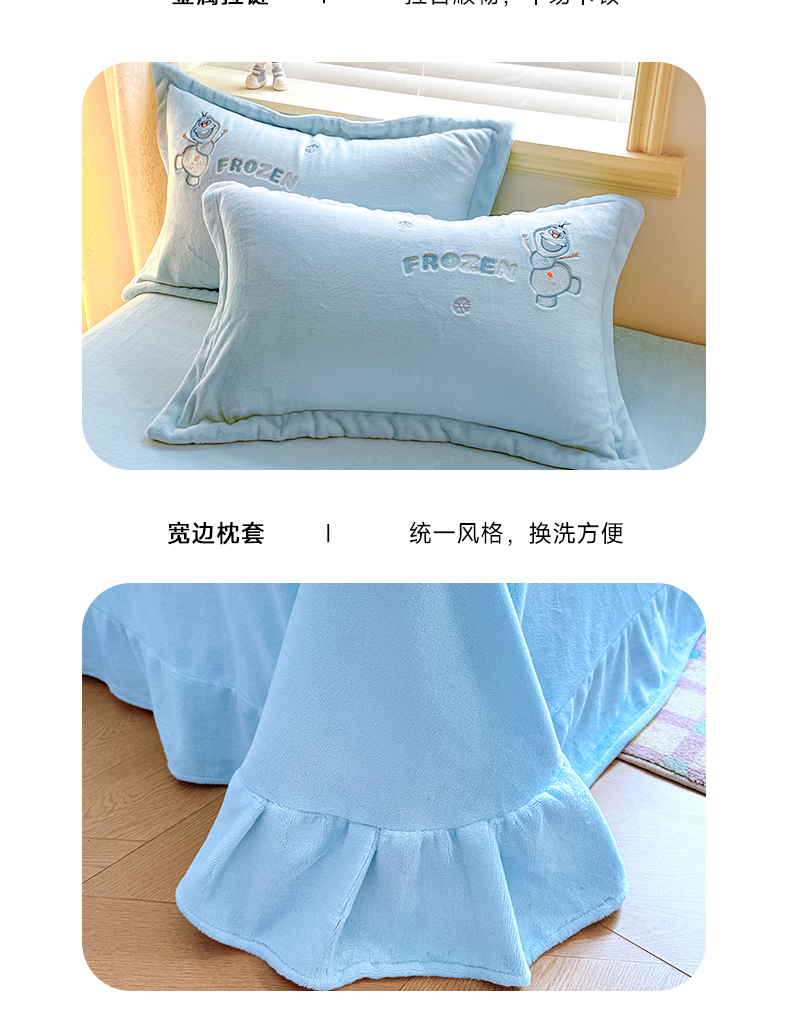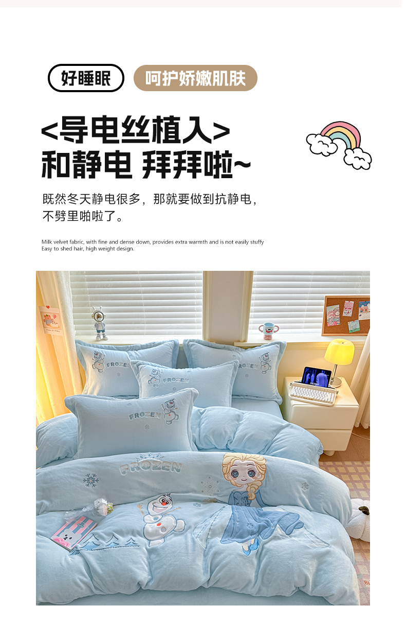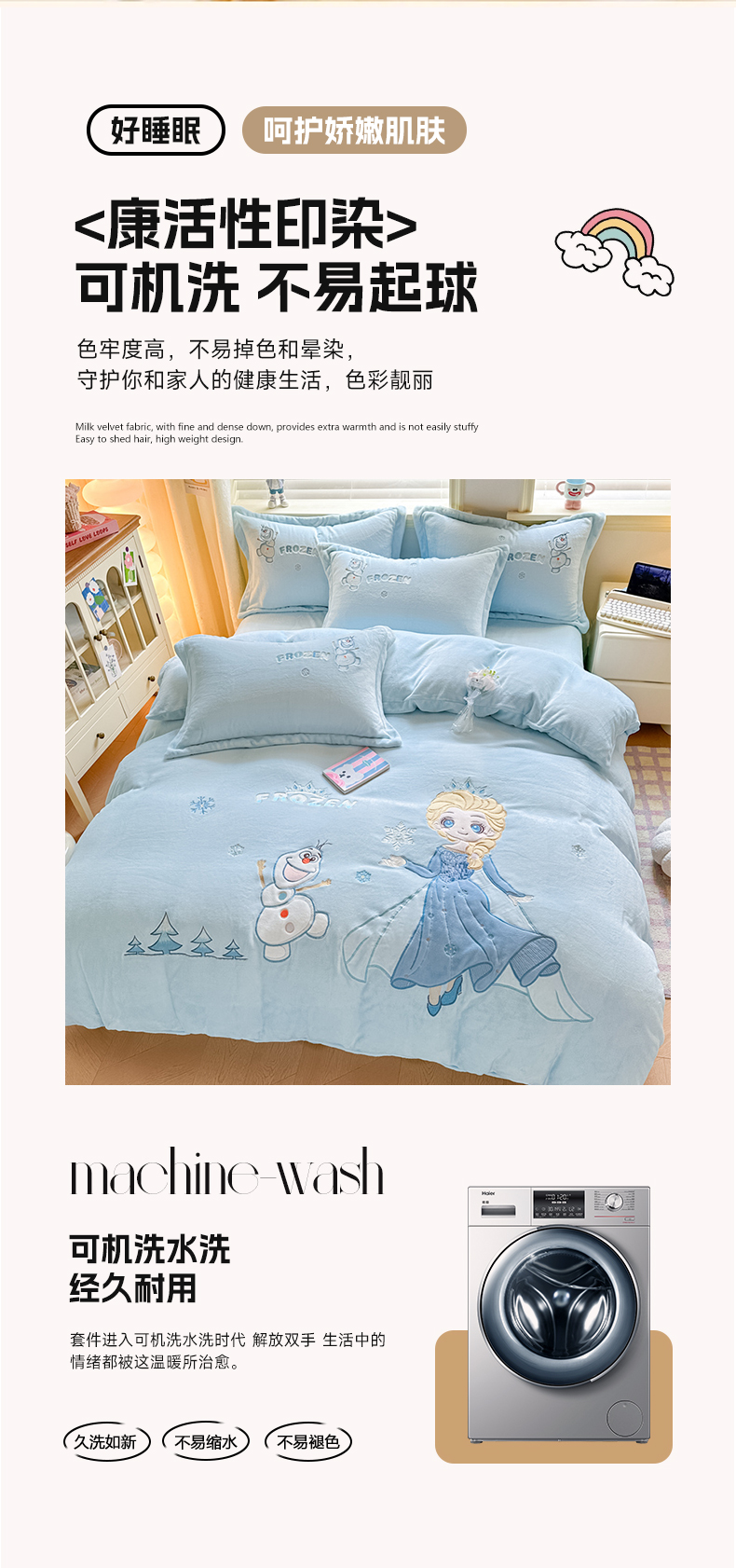 商品名称:金绣美居 2025新款卡通贴布绣款牛奶绒四件套-公主 公主蓝