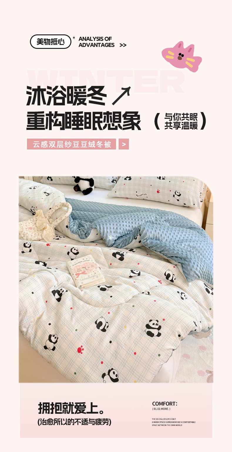 • 91家纺网 家纺一手货源 找家纺 VIP被业 2025新款云感棉双层纱豆豆绒冬被被子被芯 小熊心事