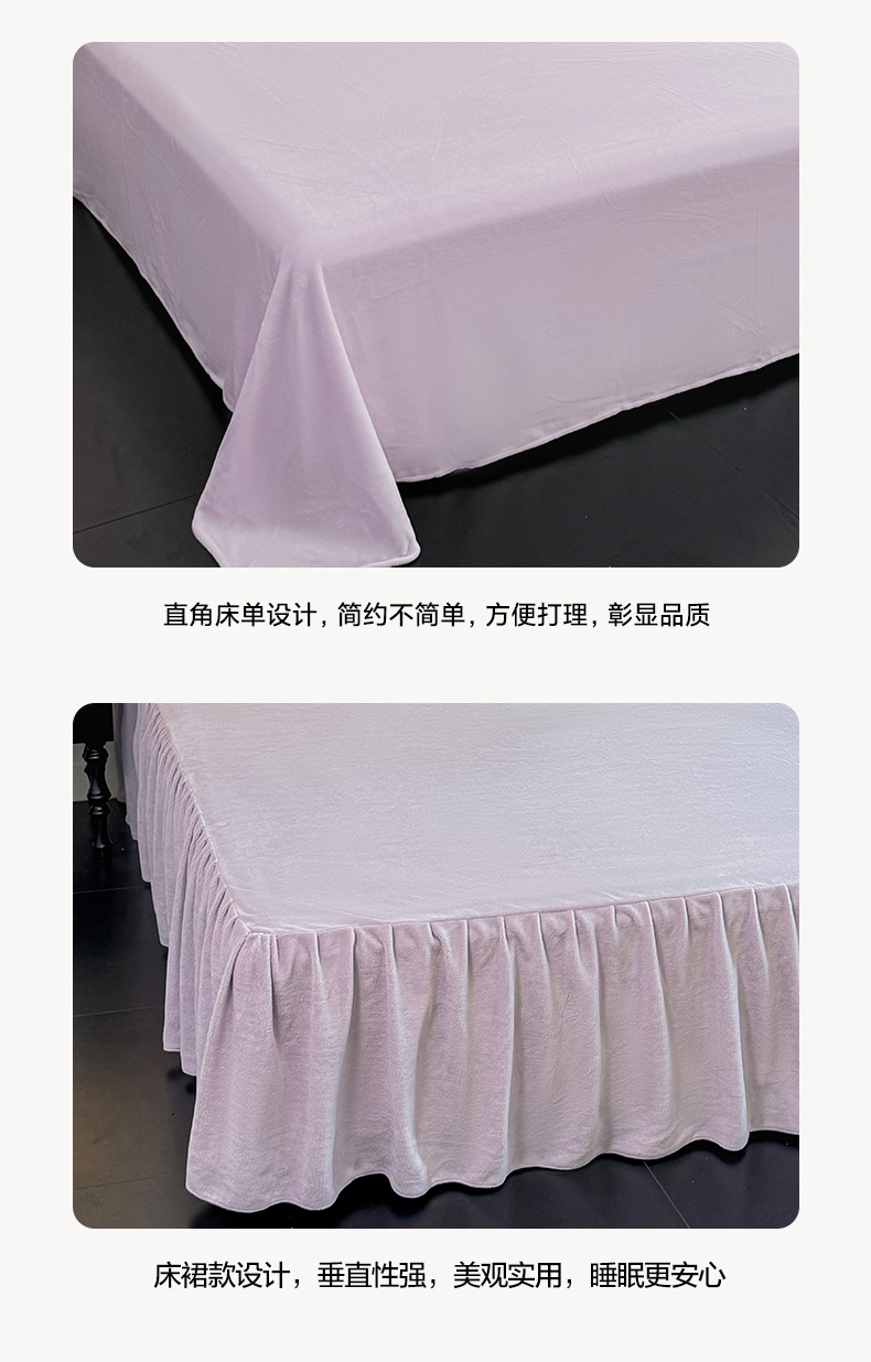 (总)KA家纺 2025新款冬双层蕾丝花边雕花牛奶绒床裙款四件套,郁郁葱葱,紫气东来,粉色回忆