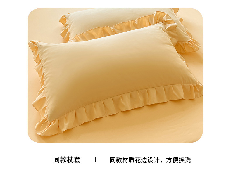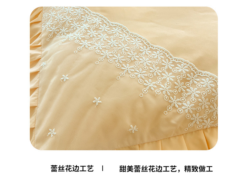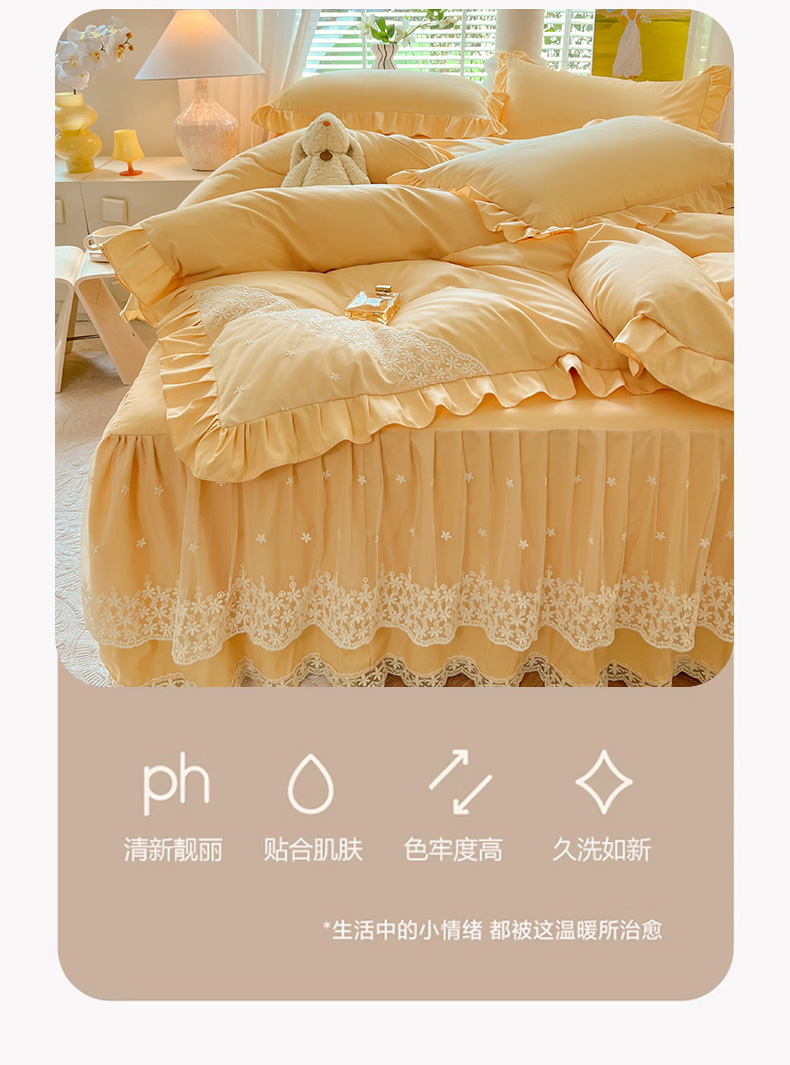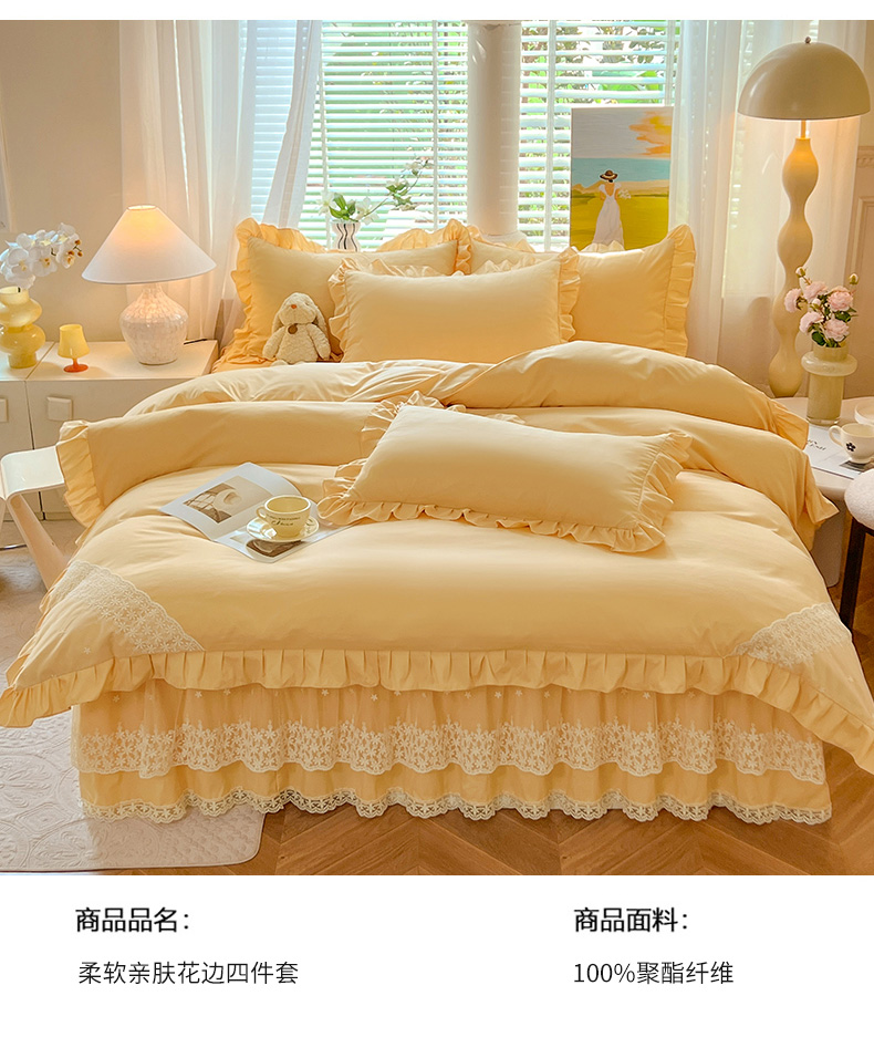 商品名称:后庭寝室 2025新款柔软亲肤花边蕾丝床裙四件套-花颜系列 花颜-嫩黄
