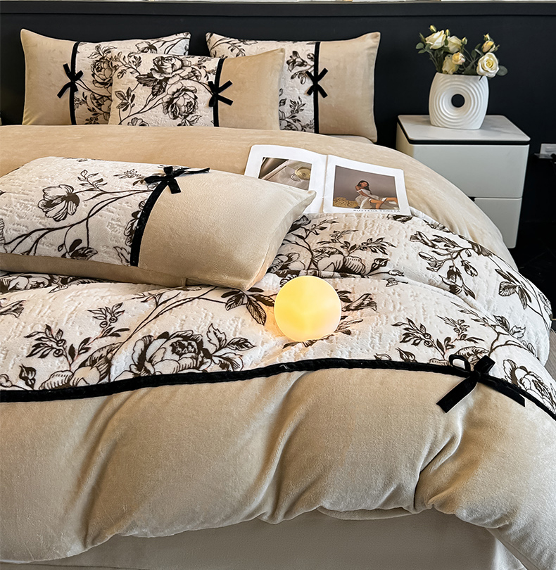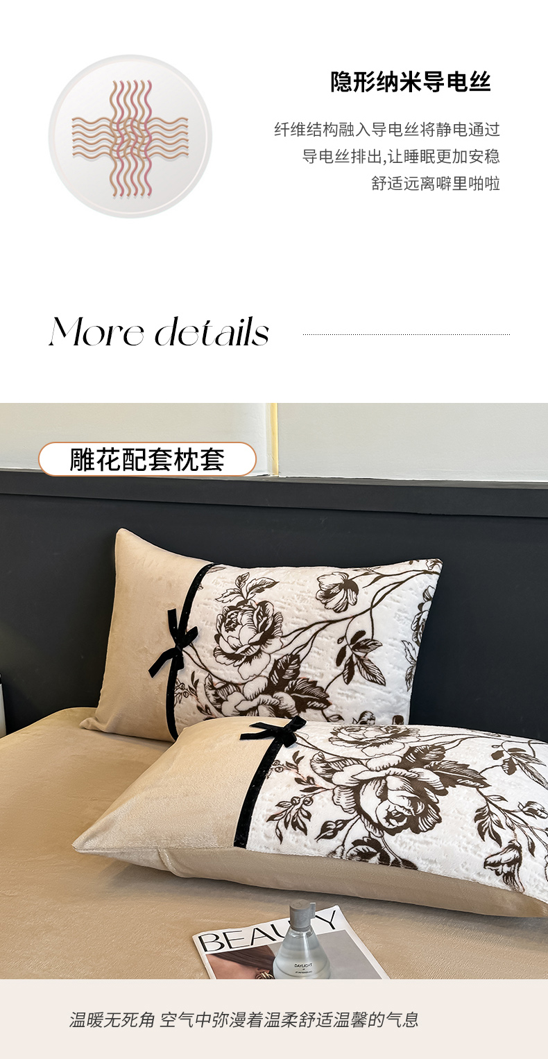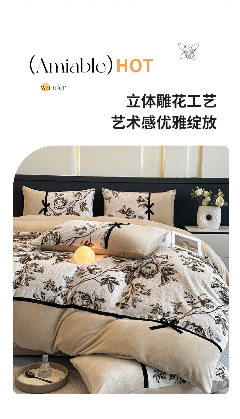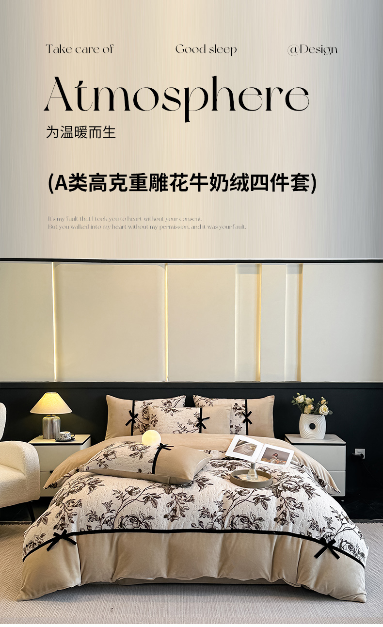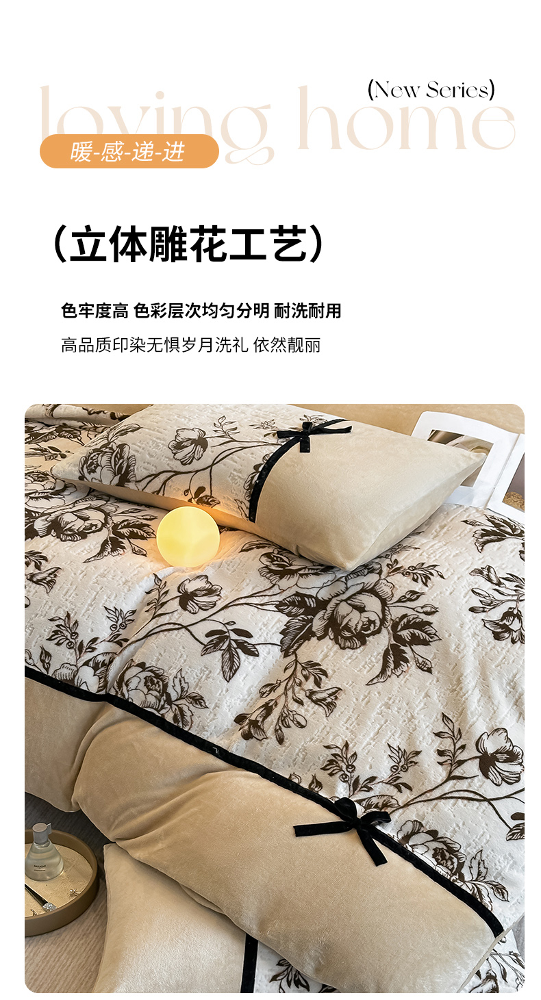 当前位置: 91家纺网 > 商品网购 > 床品套件 > 四件套 > 牛奶绒四件套 > 凯美家居 2025新款A类雕花牛奶绒四件套-美拉德系列 芷岸澜庭