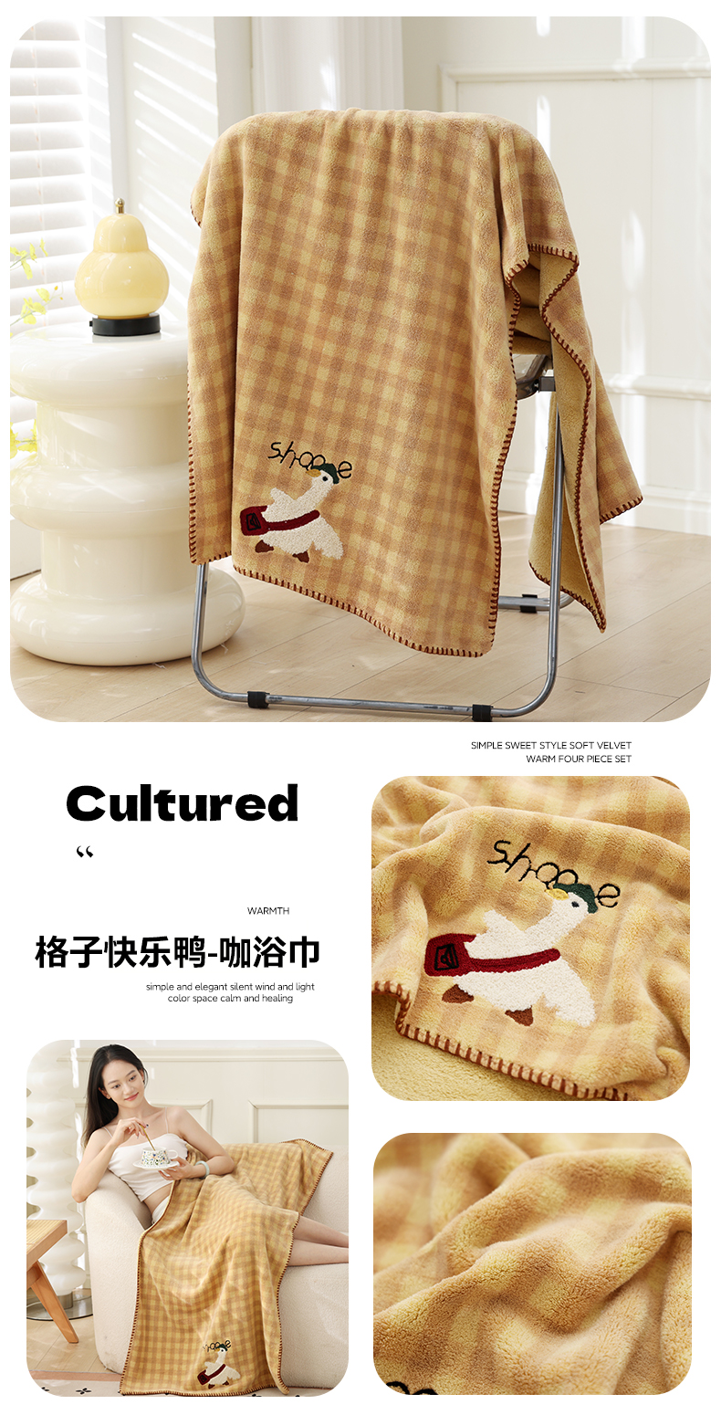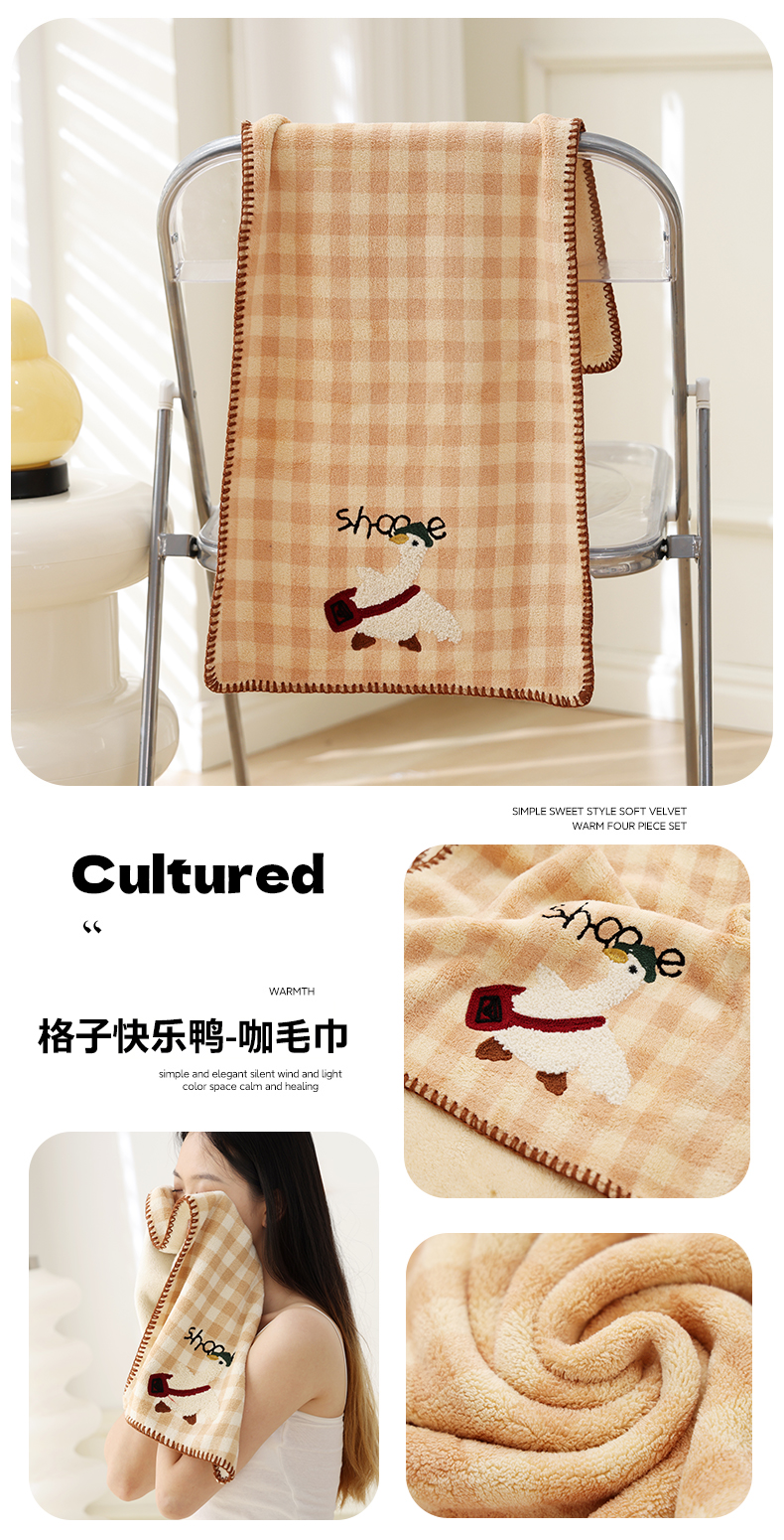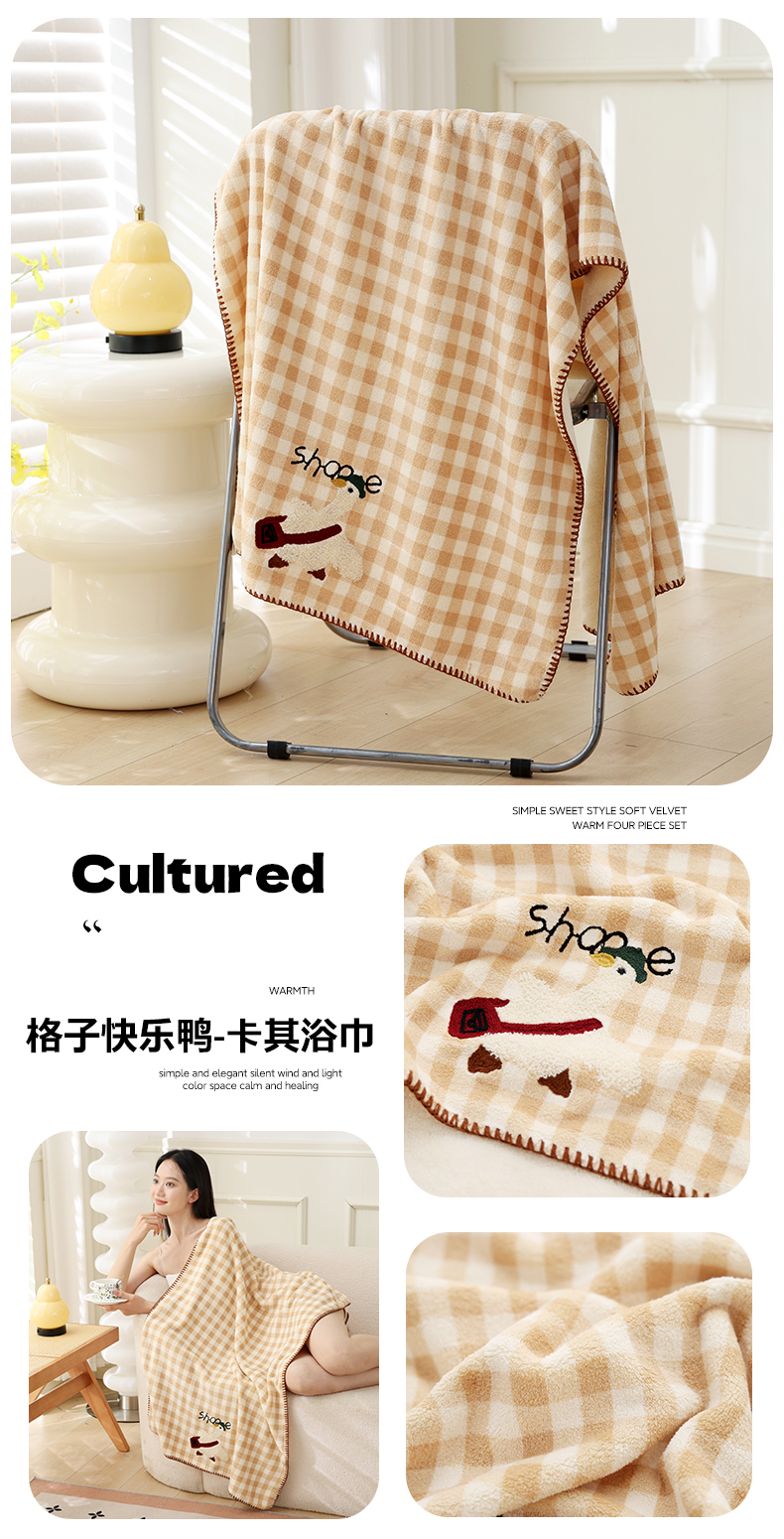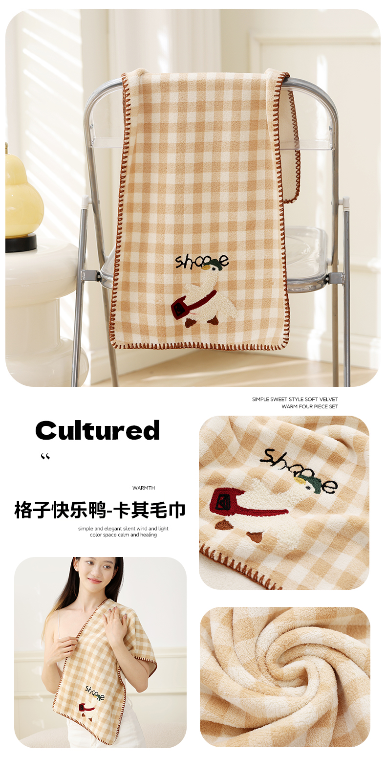 当前位置: 91家纺网 > 商品网购 > 居家日用 > 毛巾/浴巾/浴袍 > 毛巾 > 朴尔家纺-毛巾被 2025新款毛巾绣勾边小格快乐鸭AB版珊瑚绒速吸速干毛巾 格子快乐鸭-卡其毛巾 35x75cm毛巾
