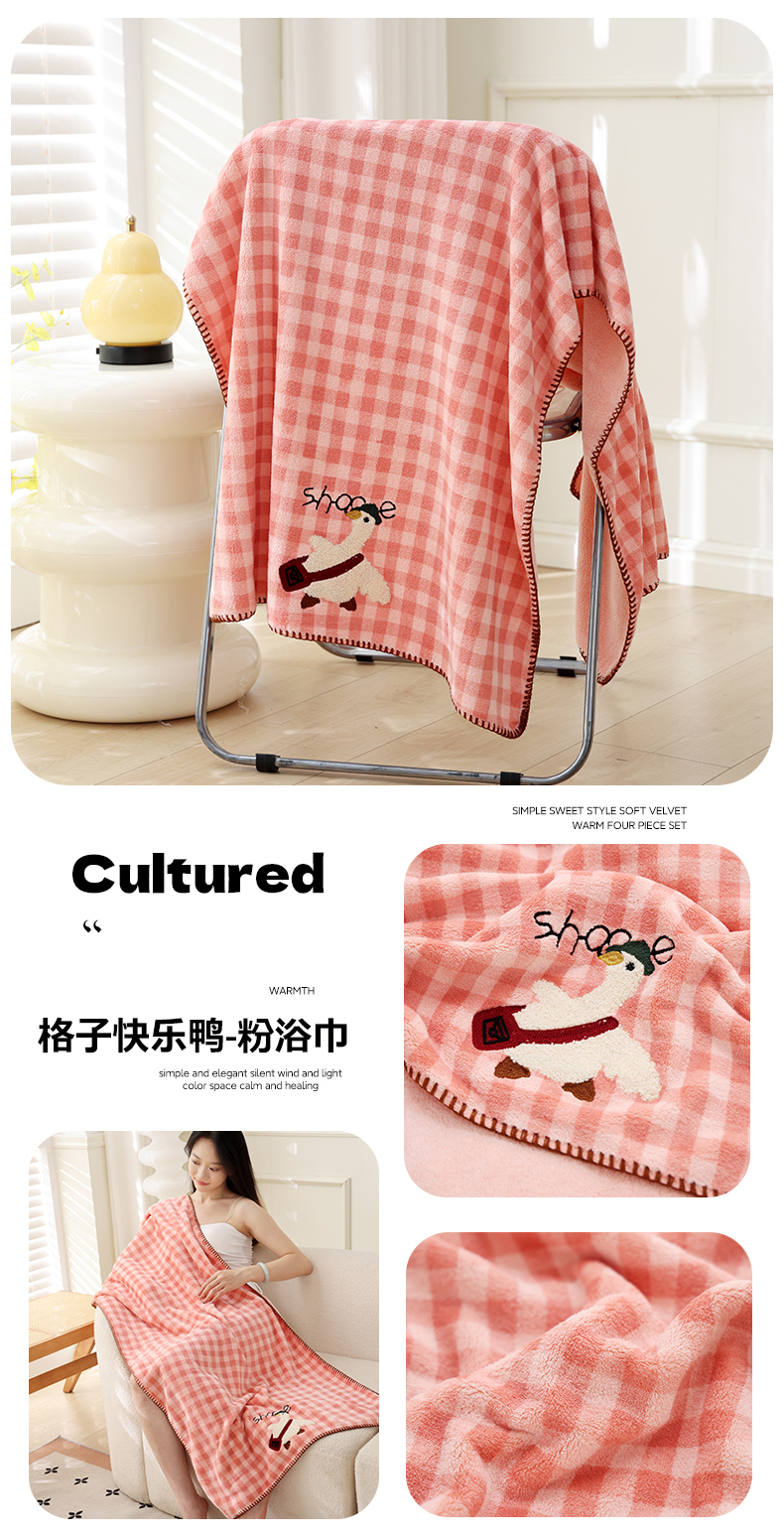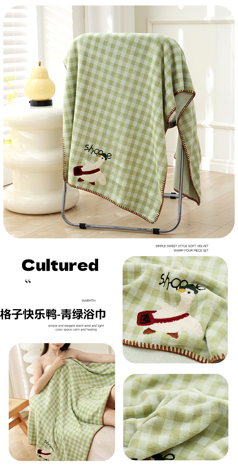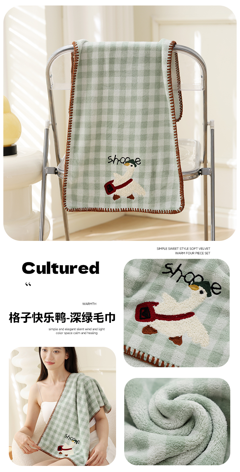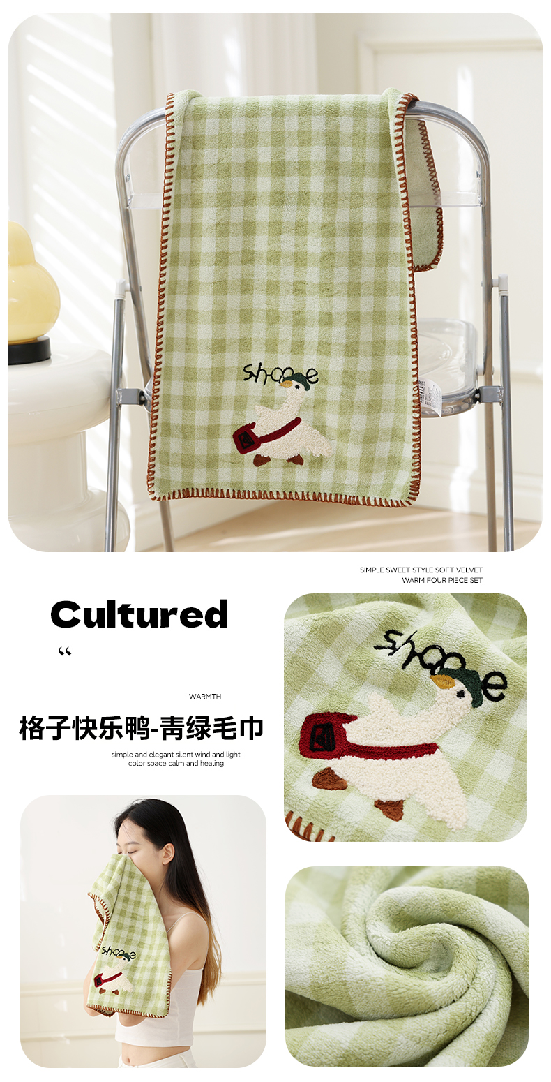 当前位置: 91家纺网 > 商品网购 > 居家日用 > 毛巾/浴巾/浴袍 > 毛巾 > 朴尔家纺-毛巾被 2025新款毛巾绣勾边小格快乐鸭AB版珊瑚绒速吸速干毛巾 格子快乐鸭-卡其毛巾 35x75cm毛巾