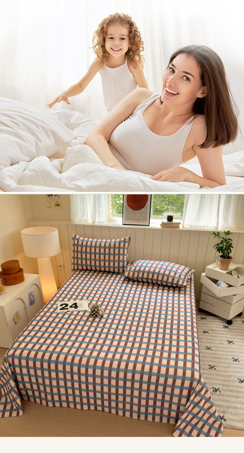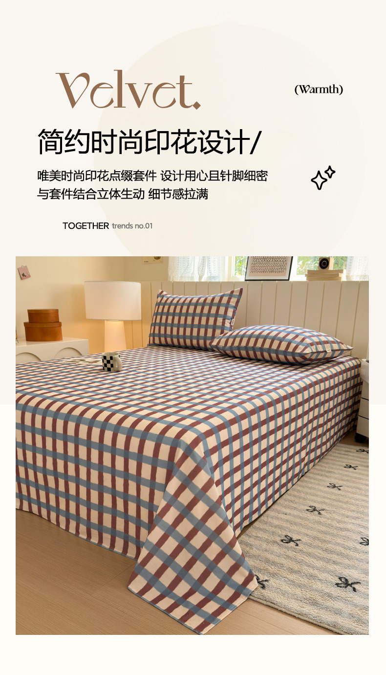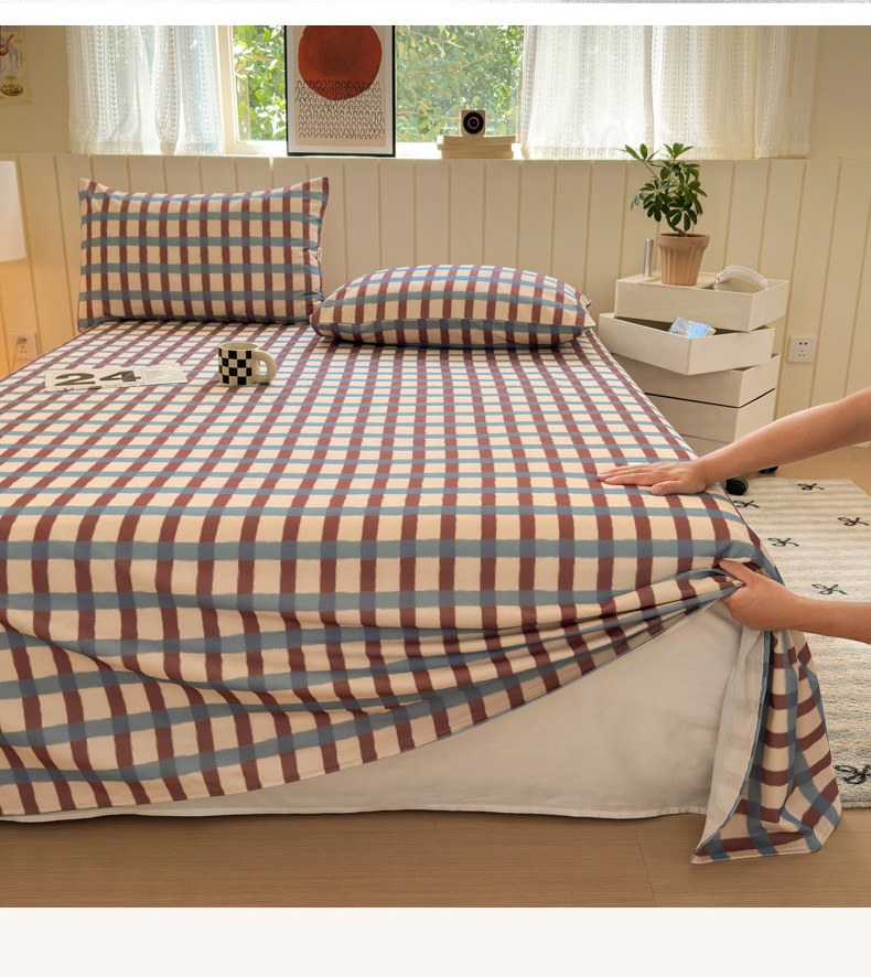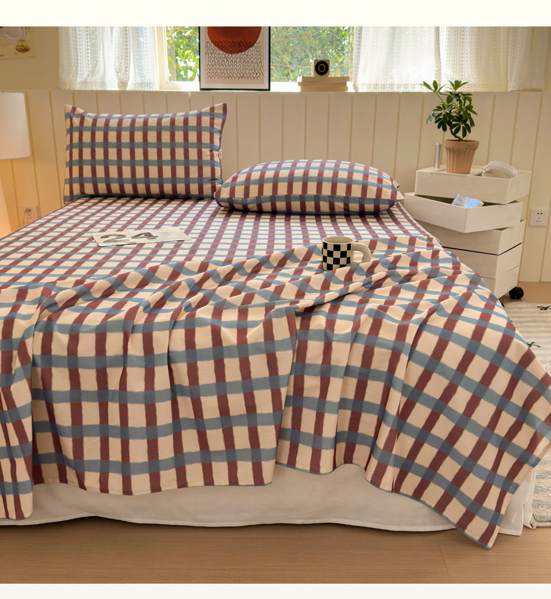 如意朵 2025新款时尚印花全棉加厚磨毛床单 艾格-蓝咖