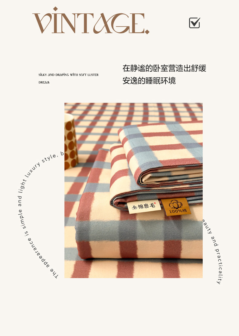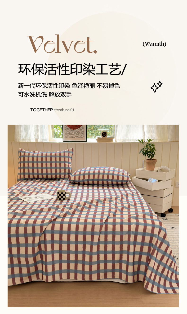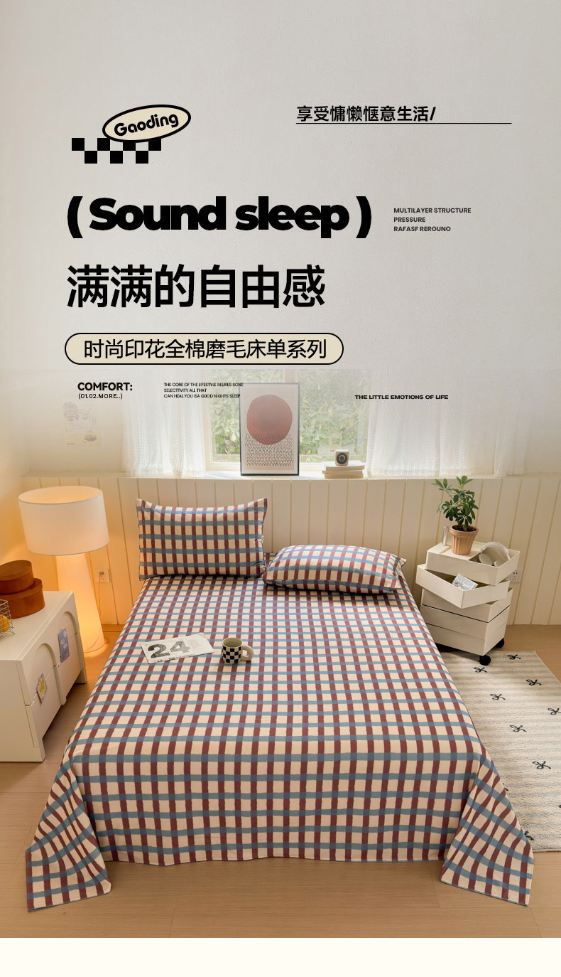如意朵 2025新款时尚印花全棉加厚磨毛床单 艾格-蓝咖