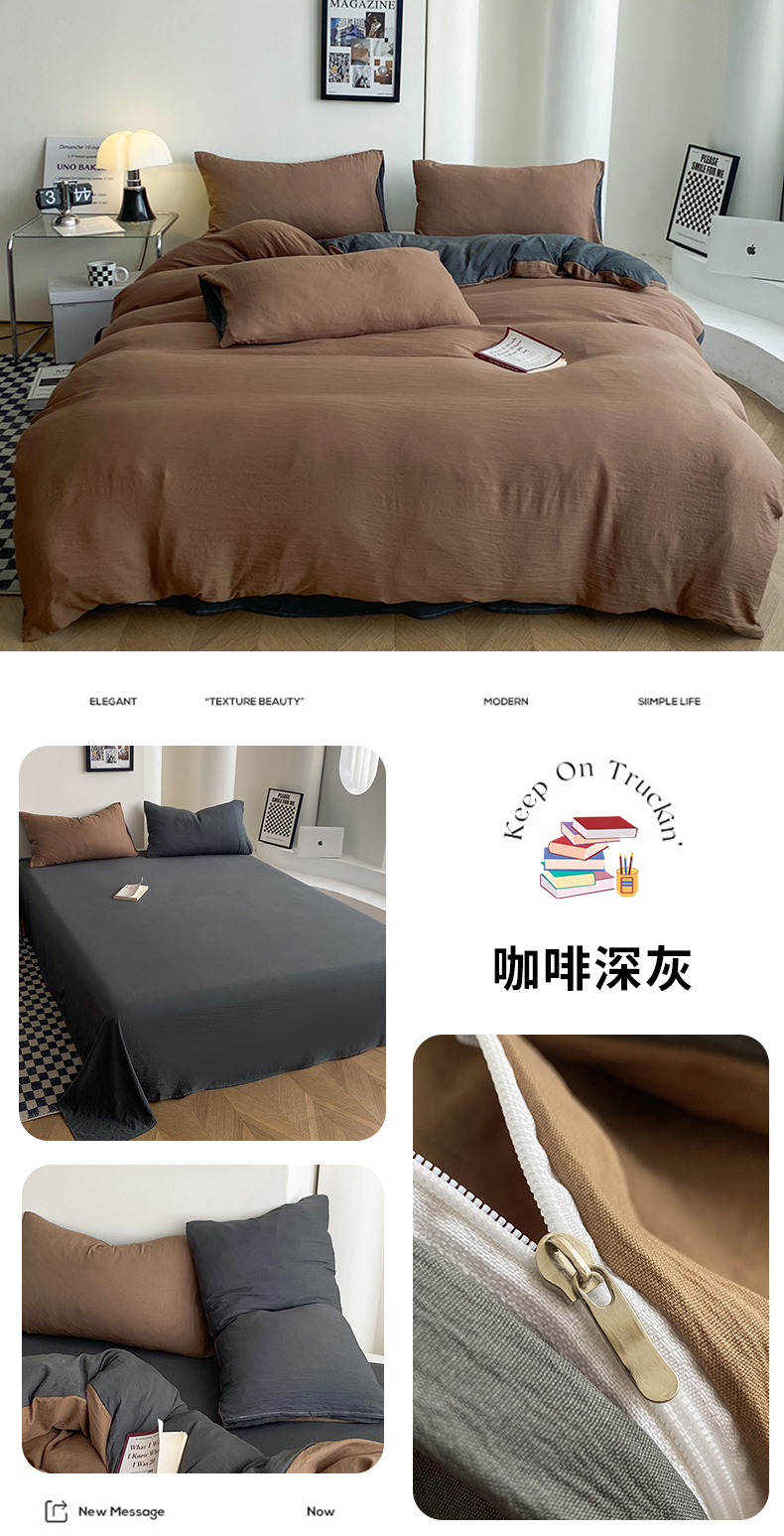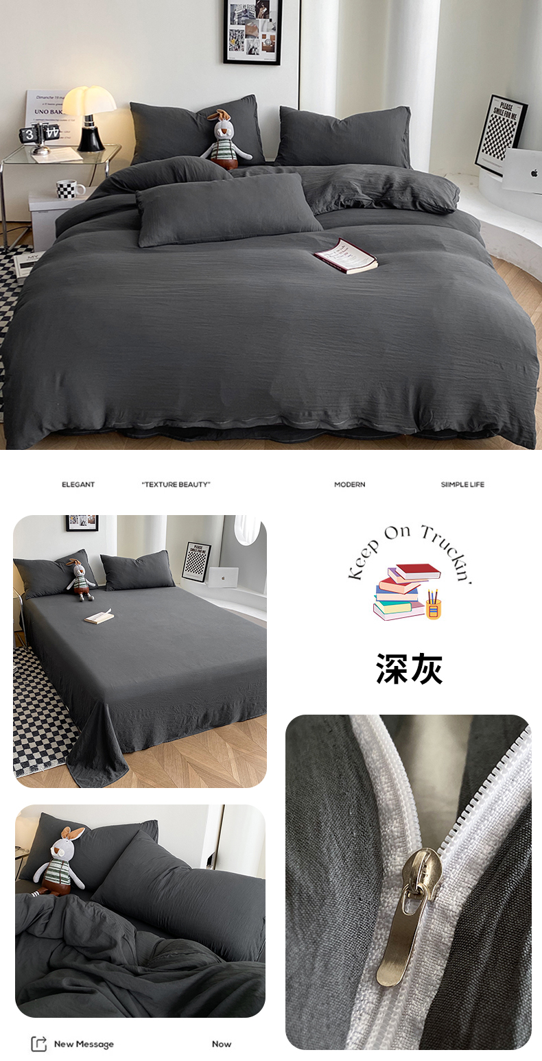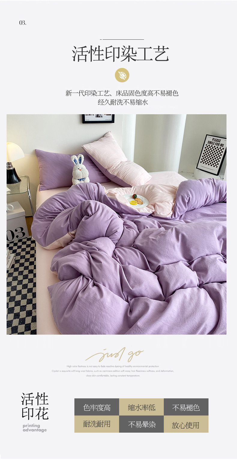 当前位置: 91家纺网 > 商品网购 > 床品套件 > 四件套 > 水洗棉四件套 > 南通菲度家纺 2025新款超柔皱皱水洗棉纯色四件套 香芋奶粉