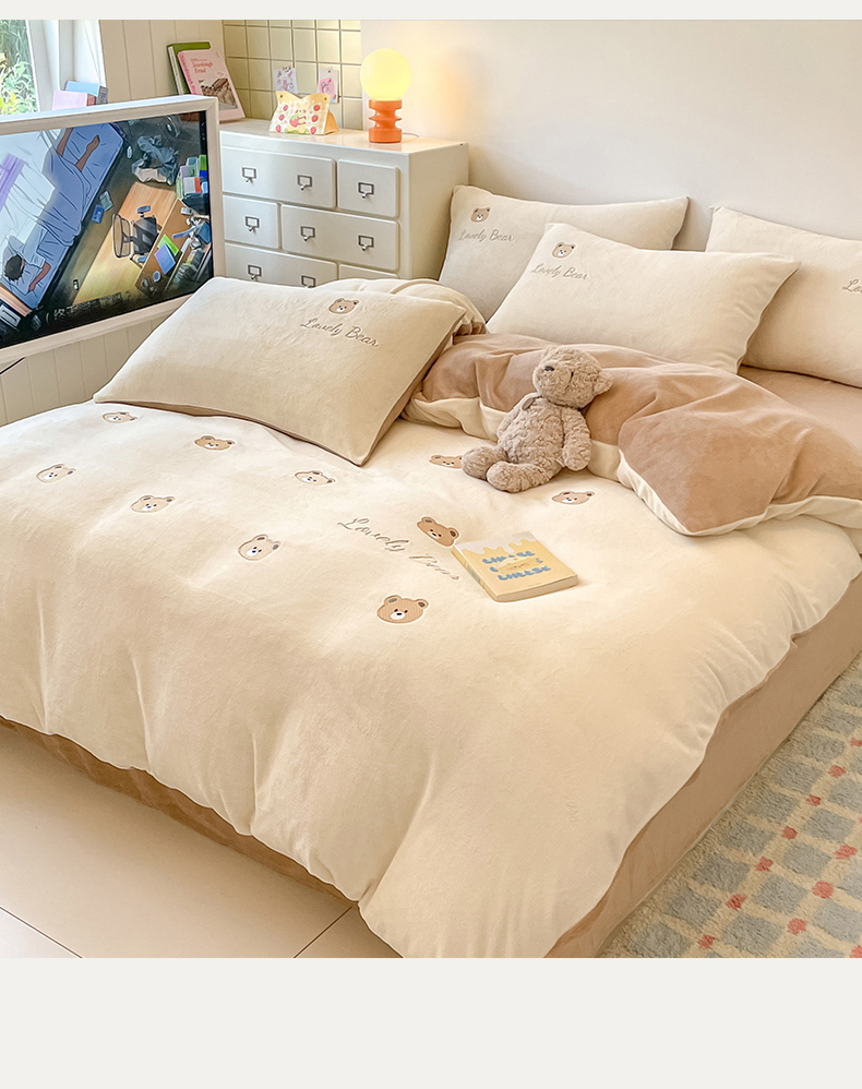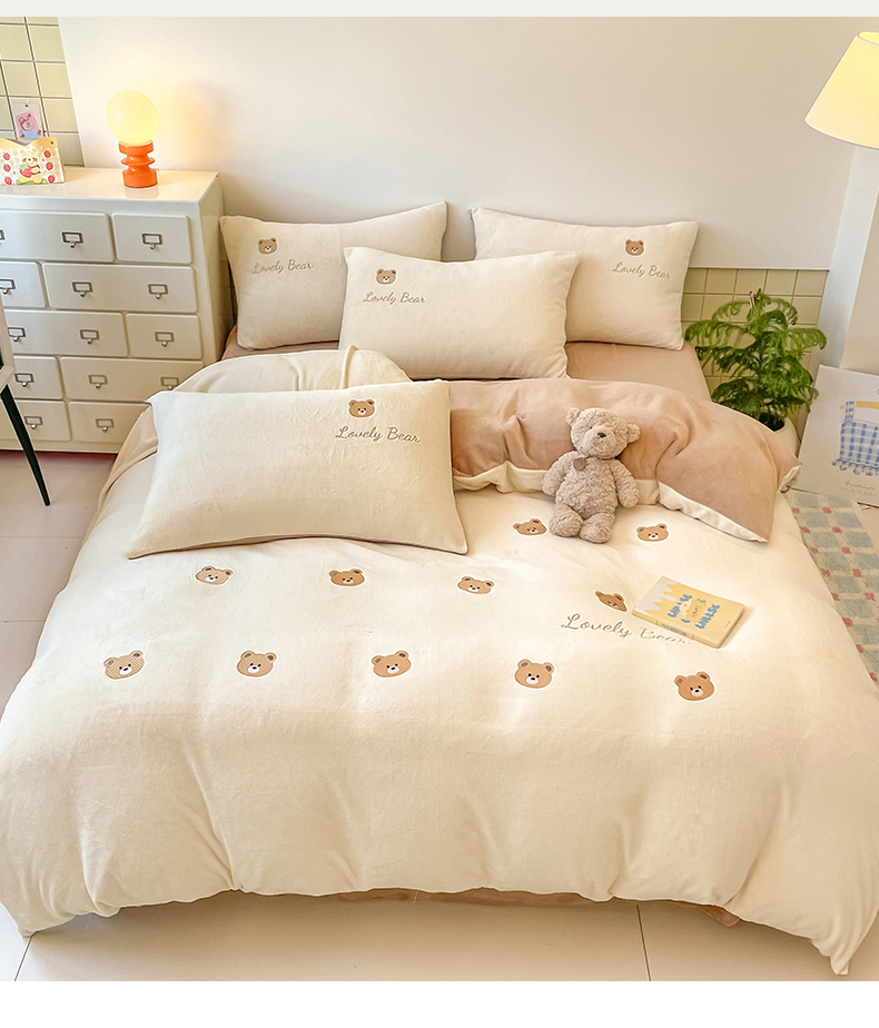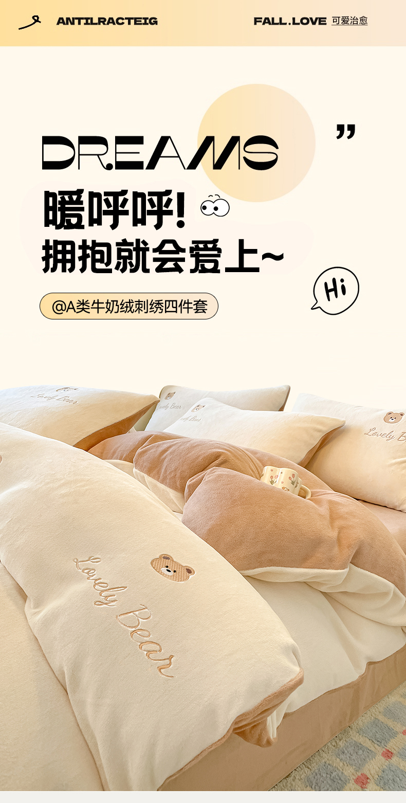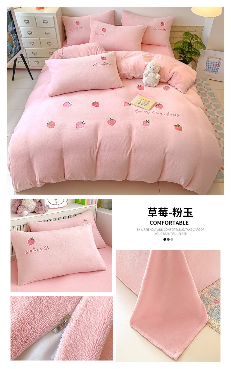 (总)美澳家纺 2025新款刺绣ins小清新高克重牛奶绒四件套床笠款四件套,草莓-奶白,草莓-粉玉,小熊-蓝,小熊-奶白,郁金香-奶白,郁金香-紫