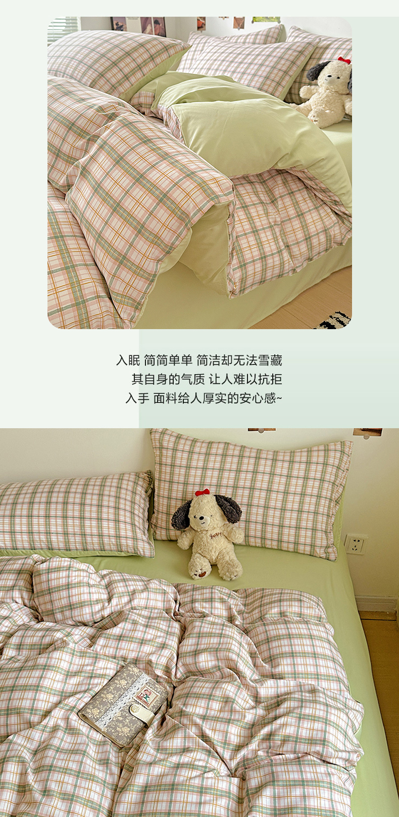 商品名称:南通菲度家纺 2025新款ins博主风软糯糯亲肤印花热款纯色格子无印风水洗棉时尚四件套 比利时