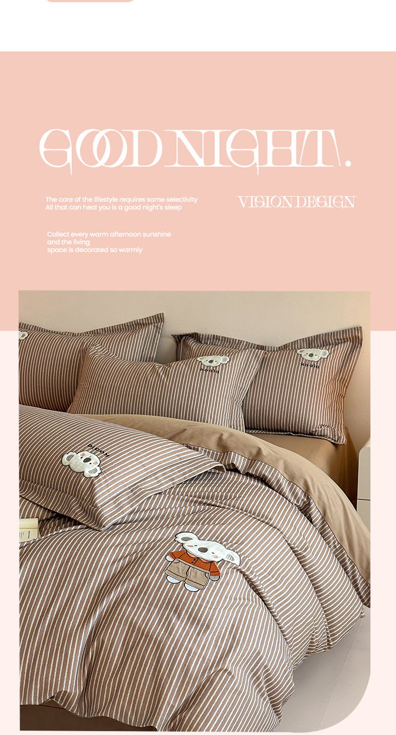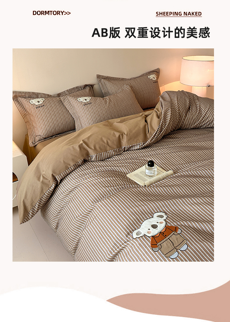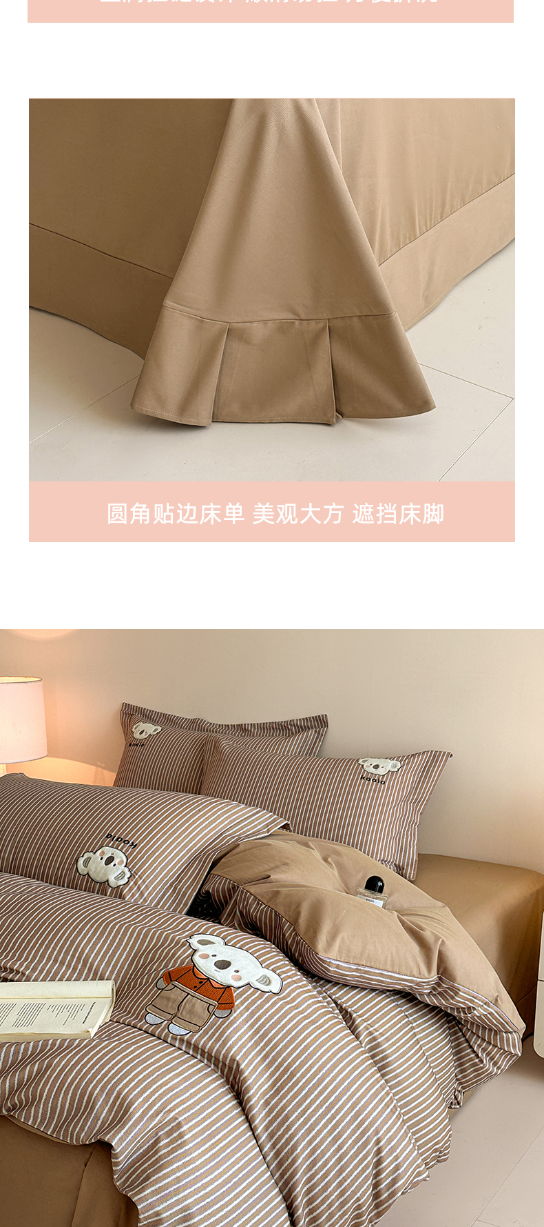 当前位置: 91家纺网 > 商品网购 > 床品套件 > 四件套 > 普通磨毛四件套 > 禾时 2025新款全棉磨毛卡通刺绣四件套 米乐(咖)