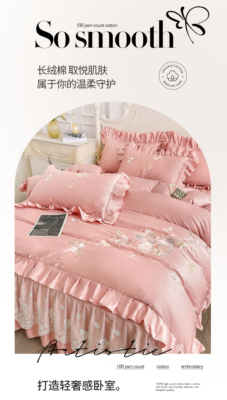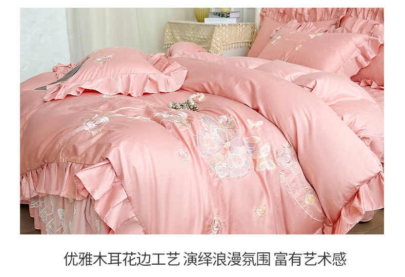 (总)宜凡家纺 2025新款长绒棉绣花床裙床裙四件套--蝶恋笙花系列
