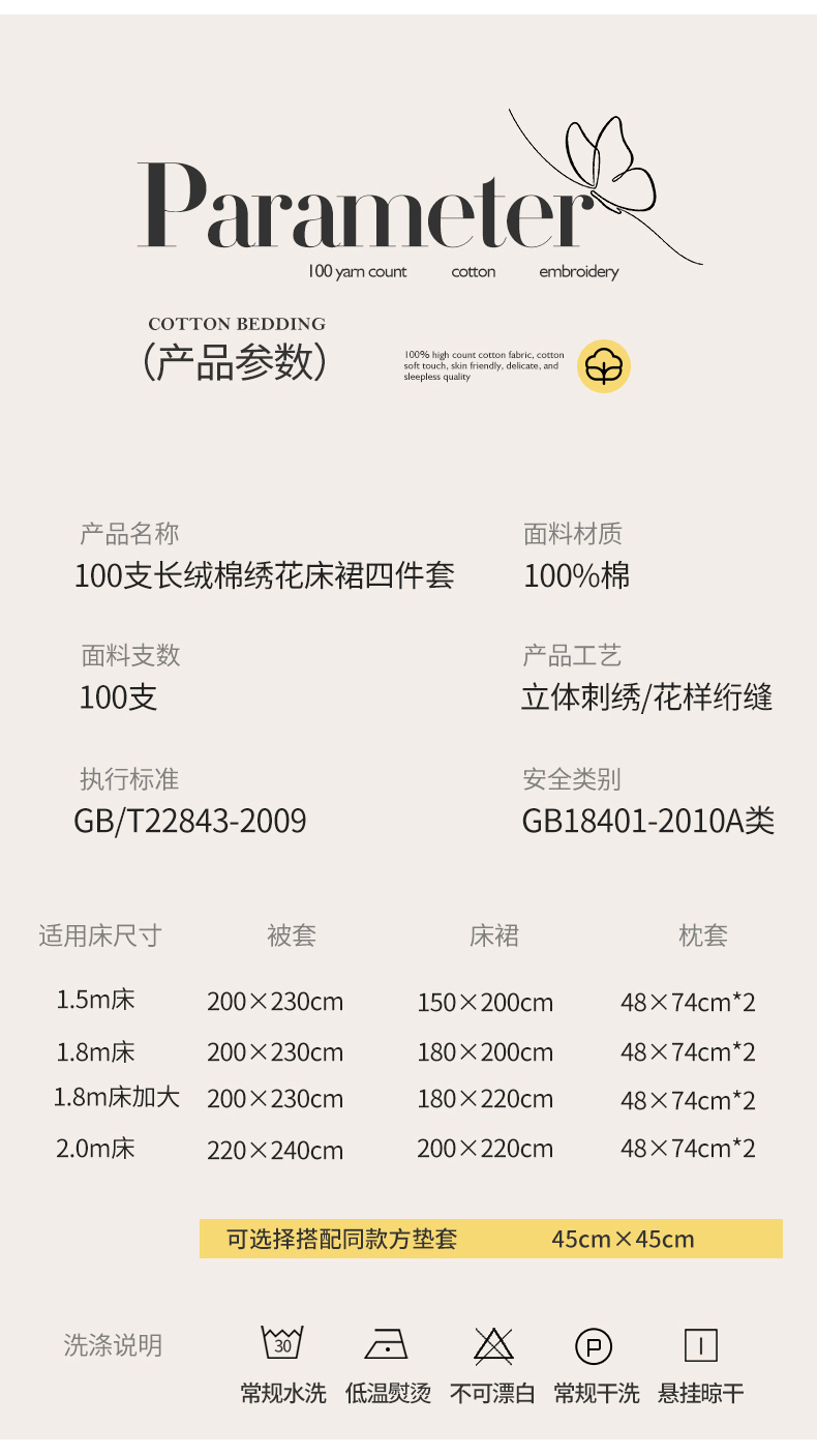 商品名称:(总)宜凡家纺 2025新款长绒棉绣花床裙床裙四件套--蝶恋笙花系列