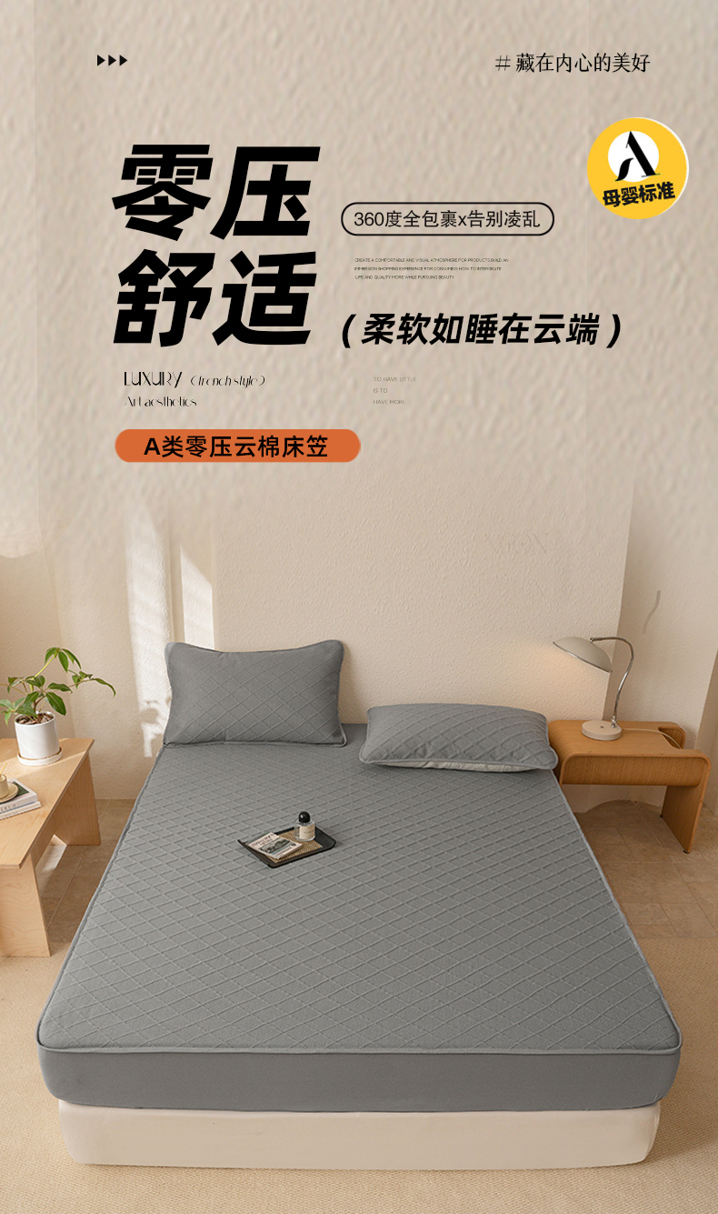 大元 2025新款A类零压云棉空气层夹棉床笠单品床笠床笠单件 蓝