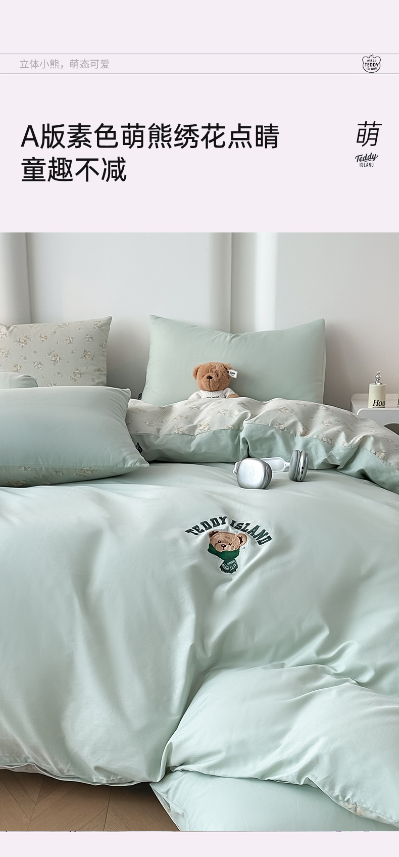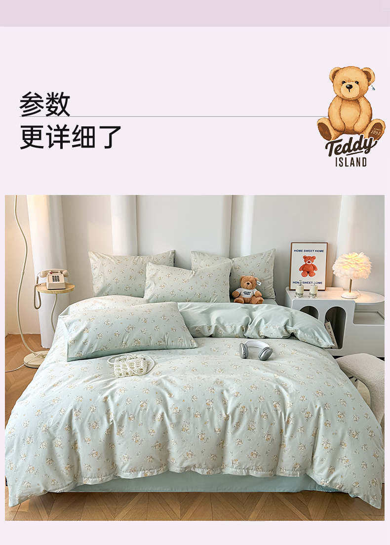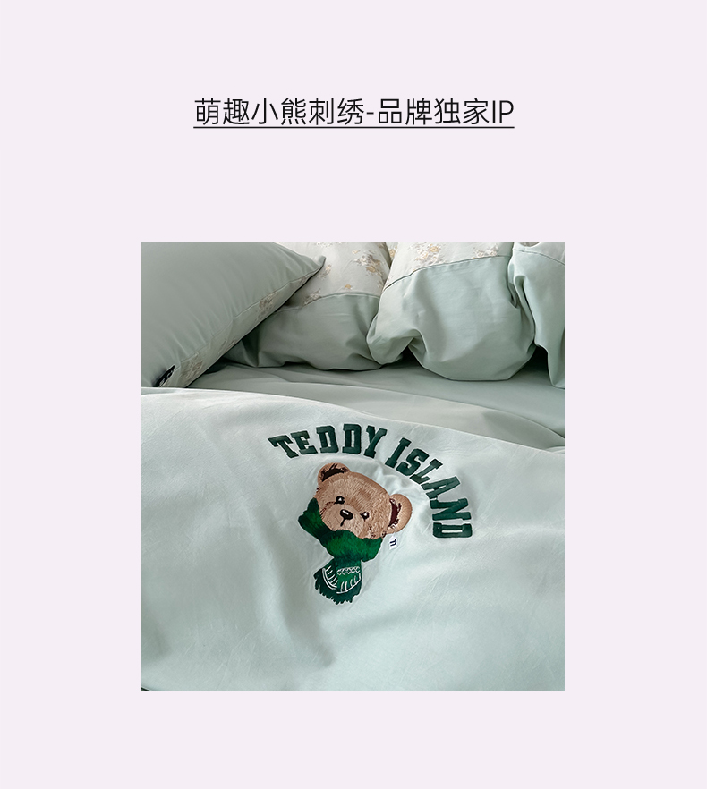 (总)泰迪爱兰Teddy ISLAND 2025新款40支全棉印花刺绣四件套,烟雨花间,印记时光,童年诗篇,挽夏-绿,迪莉娅,守护甜心,素然-米