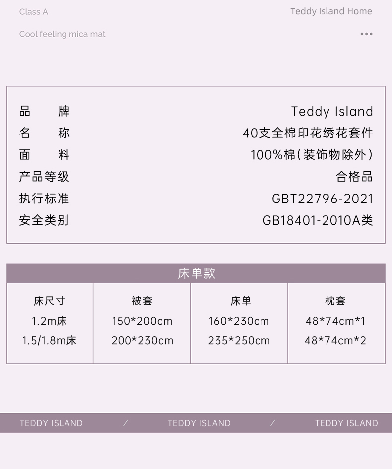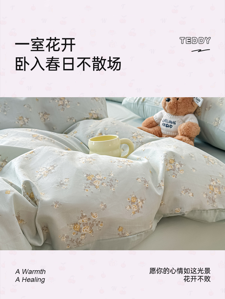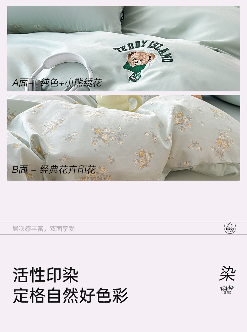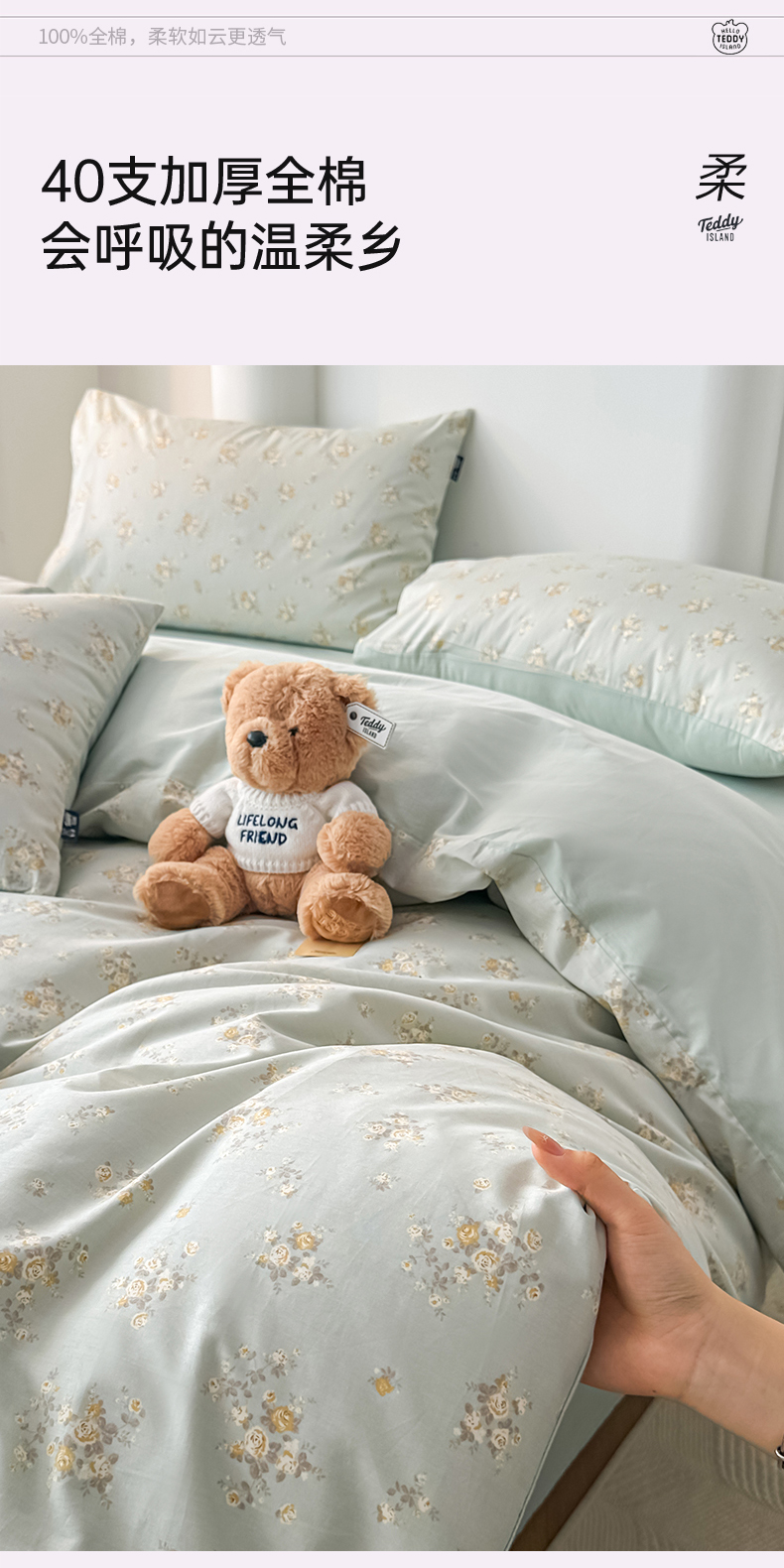 (总)泰迪爱兰Teddy ISLAND 2025新款40支全棉印花刺绣四件套,烟雨花间,印记时光,童年诗篇,挽夏-绿,迪莉娅,守护甜心,素然-米