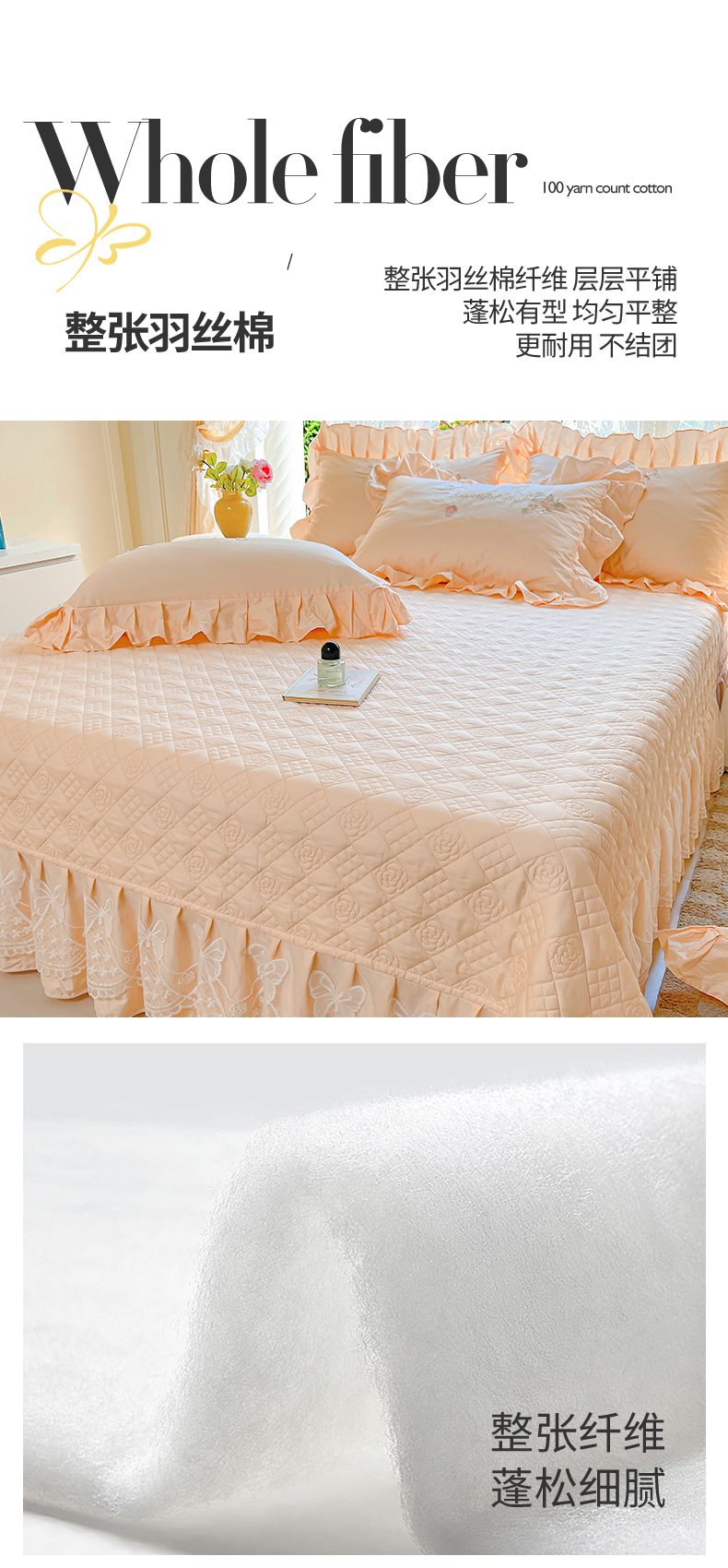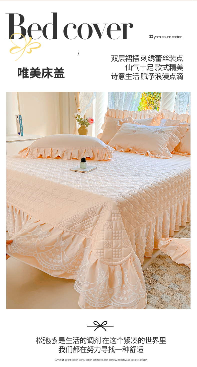 商品名称:宜凡家纺 2025新款长绒棉绣花夹棉床盖四件套--蝶恋笙花系列 蝶恋笙花 香妃粉